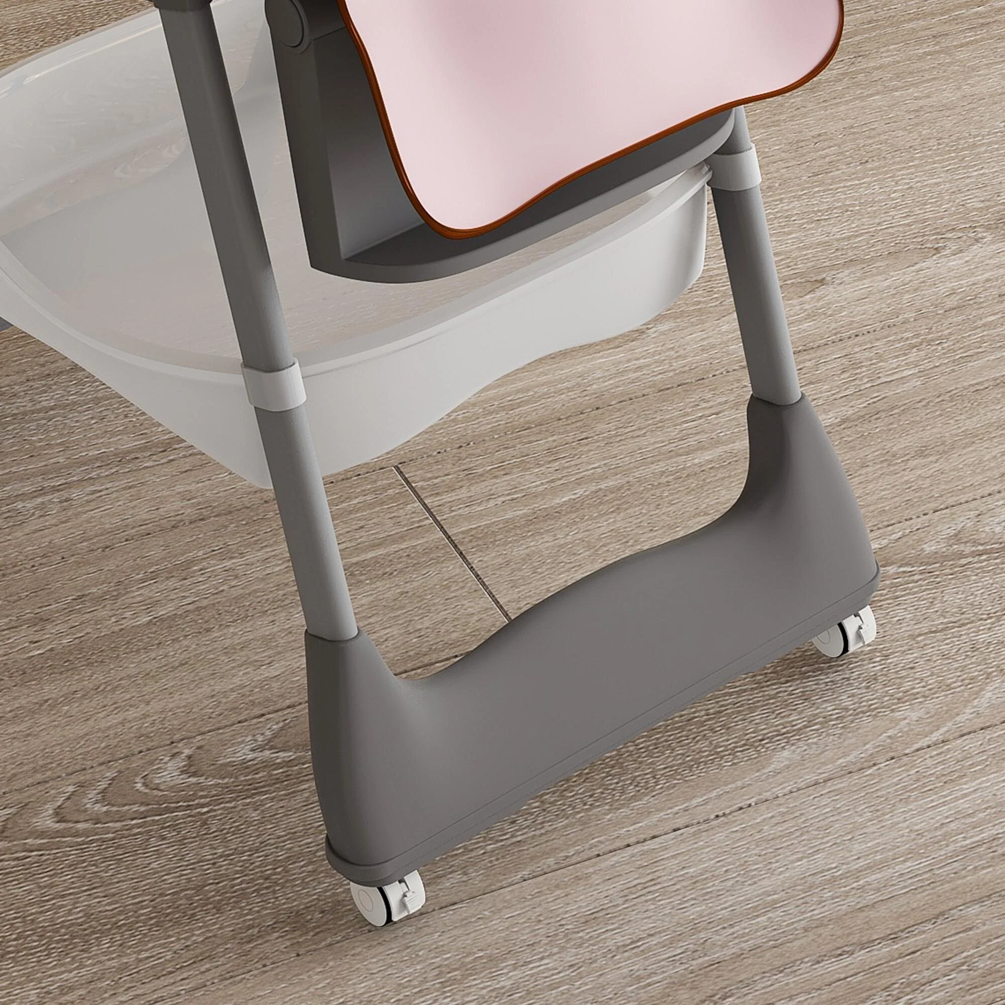 【Premium Safety & Comfort Design】Reinforced steel frame with anti-tip base, adjustable five-point safety belt, silent lockable wheels, and waterproof PU cushion with removable/washable seat pad for easy cleaning.