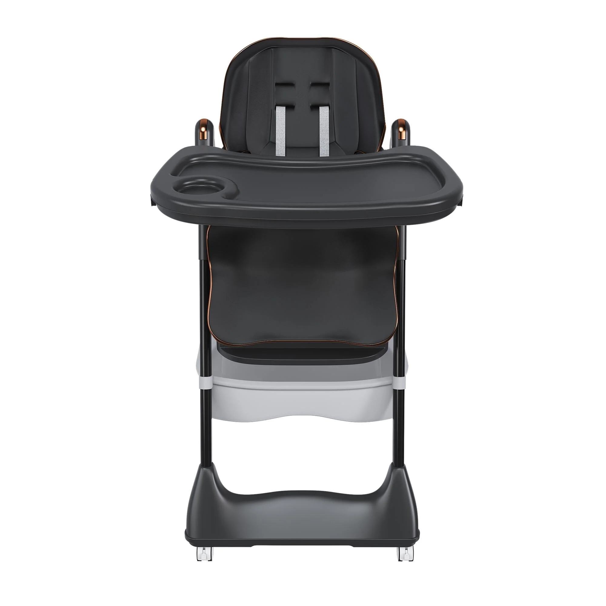 【5-Level Adjustable Feeding System】- 4-position tray adjustment, 5-height settings, and 3-position reclining backrest adapt to growing children. The inner diameter of the seat is widened to 12.8 inches, giving your baby more room to move around