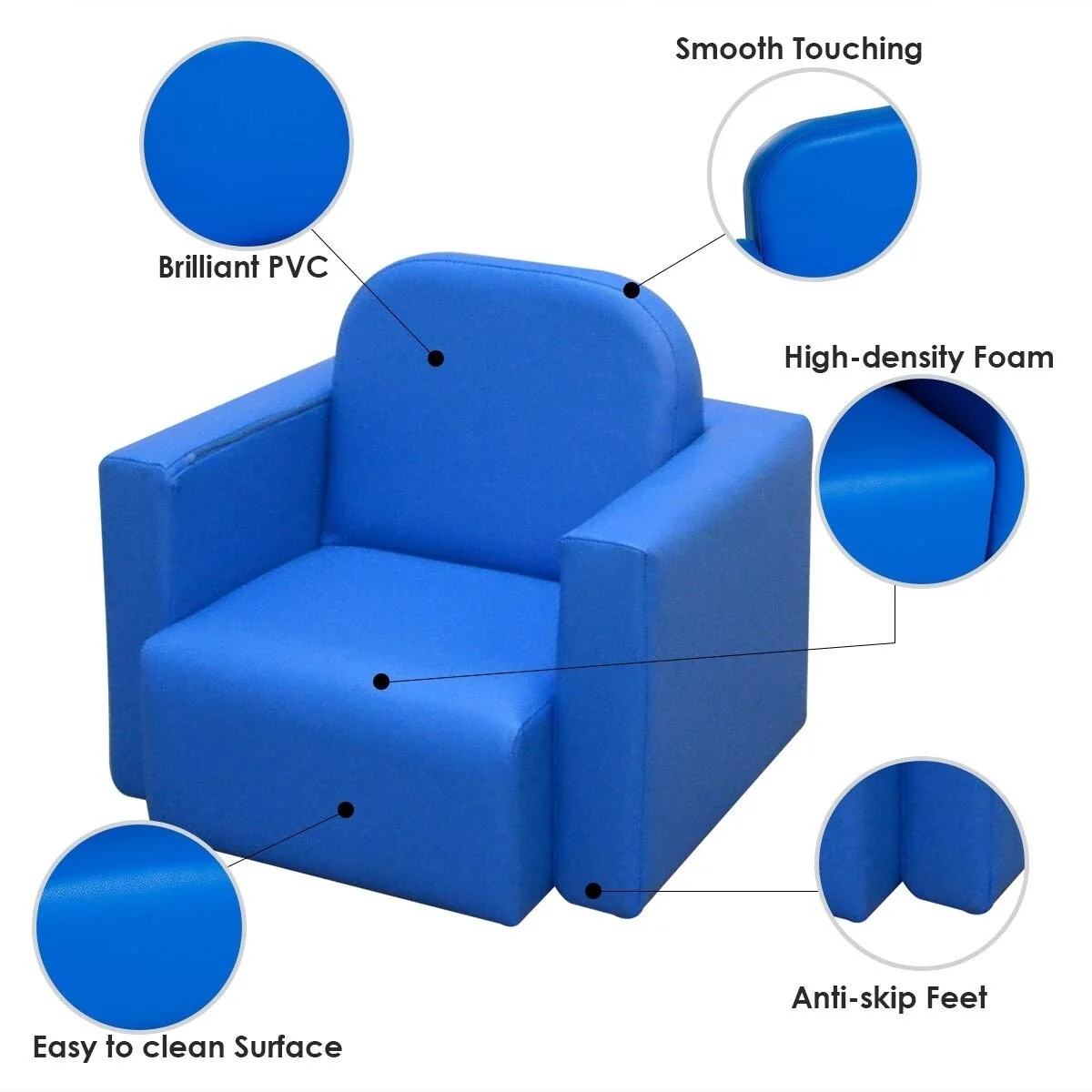 Let your little ones have their own relaxing spot with Qaba's 2-in-1 Multifunctional Convertible Kids Table and Chair Set. Featuring a bright blue color that kids will love, this set can be easily folded as an armchair or separated as a chair and table to provide endless hours of fun and comfort. The solid wood frame with extra padding can support up to 100 pounds, making it safe and durable for children aged 3-9. With its lightweight design and easy-to-clean materials, it's the perfect addition to any playroom or bedroom.