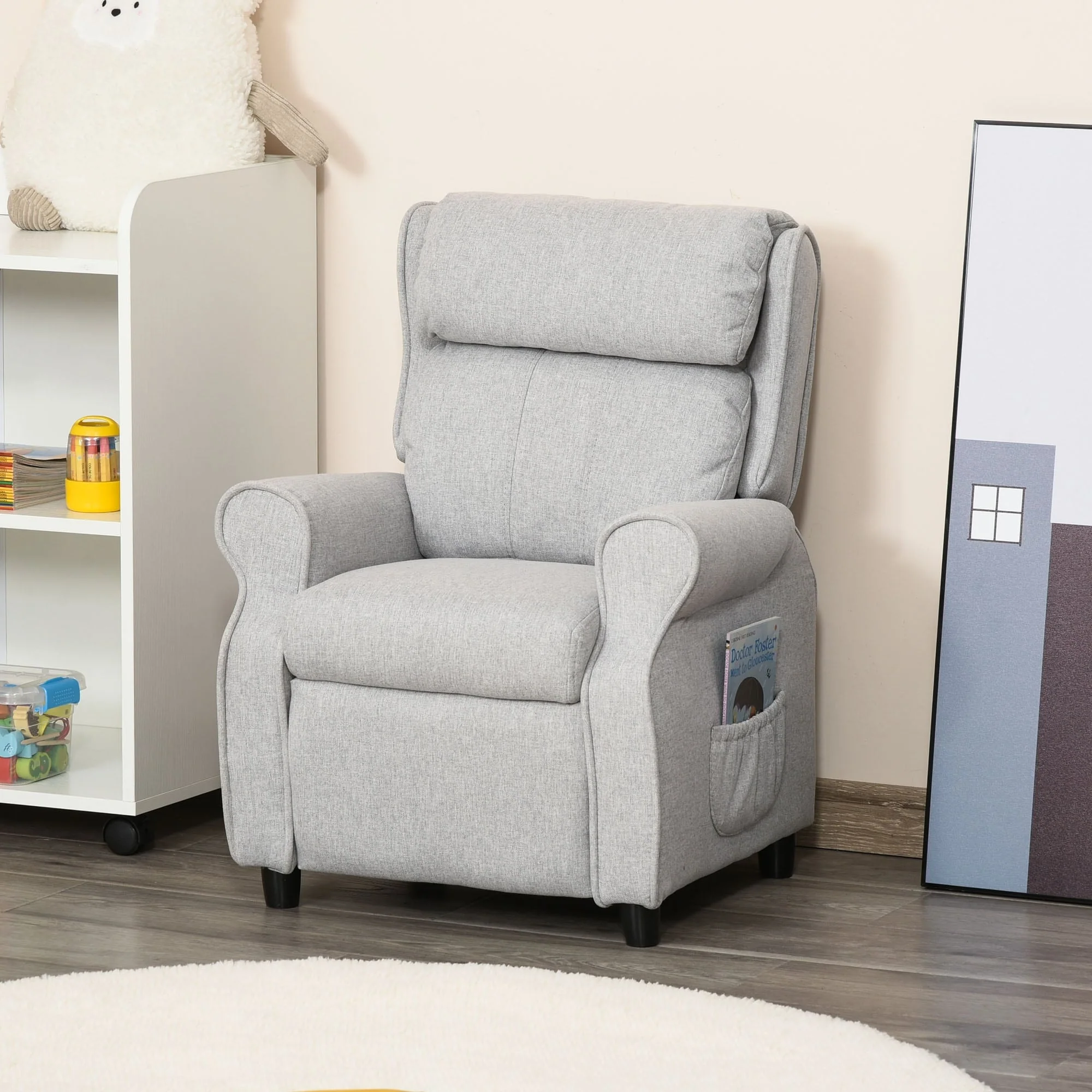 The relaxing thick foam on this kids lounger offers soft cushioning underneath, featuring comfortable support and a padded backrest that feels good throughout growth spurts. As your child’s height increases, this seat will stay comfortable. The side pockets offer a convenient size for anything from books, to journals, to pencils, to pens, to coloring utensils, to erasers, to small toys, allowing a wide range of items that need quick and easy-access stowage right where your child is sitting, preventing things from fall in the cracks by offering a place to put them. From homework to play time, your child won’t want to leave this thickly padded sweet spot.