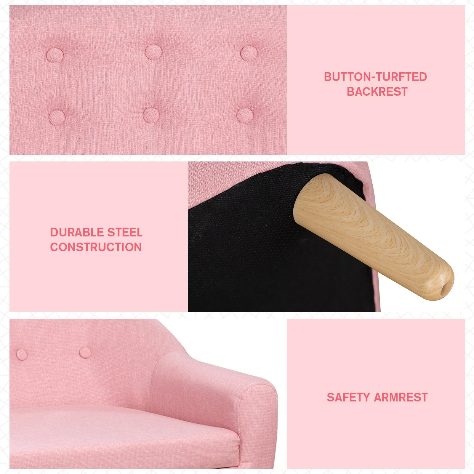 Introducing the Qaba Kids Sofa - a cozy and comfortable spot for your little ones to relax and play. Made with sturdy wood and breathable linen, it provides a perfect place for your kids to have a rest, read or engage in other activities. The lightweight design allows for easy movement from one room to another and the bright color and cute design will catch the attention of all kids. Padded with thick sponge, the seat and backrest provide extra comfort and security. Assembly is required, but it's worth it for the adorable result.