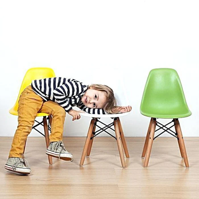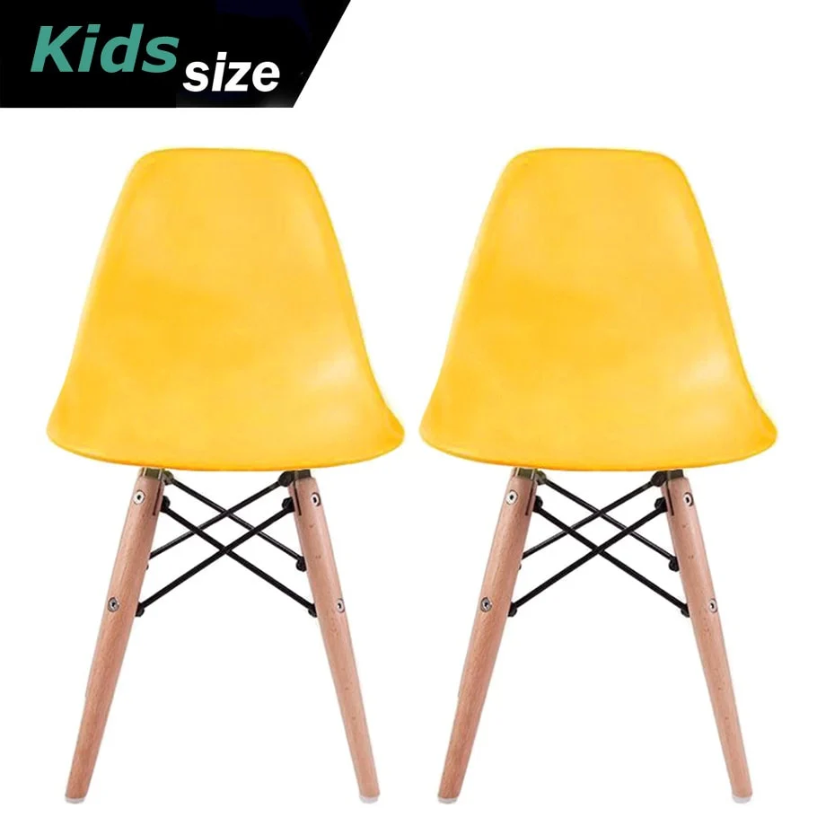 Make your kids feel like grownups with this set of two Kids Toddler Armless Chairs, perfect for playrooms, bedrooms, preschools, and even kitchen desks. With straight wooden dowel legs and a heavy-duty molded plastic seat in a contemporary matte finish, these chairs are ergonomically shaped and comfortable for your child to sit on. Unlike other similar chairs sold by other sellers, our top seats are completely smooth, not indented where the base attaches at the bottom. Available in multiple colors, these chairs require some assembly.