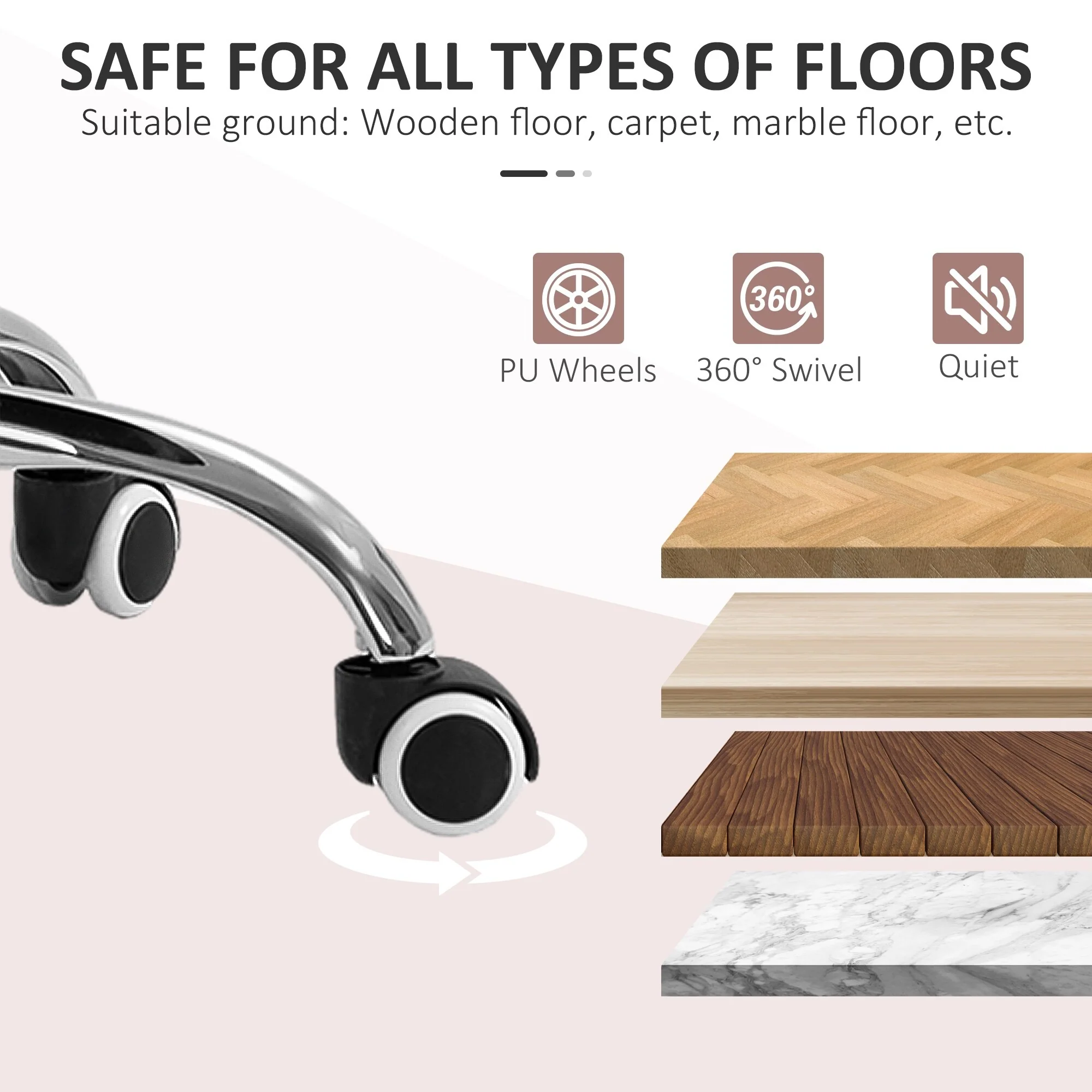 Stay comfortable throughout long workdays with this stylish swivel chair. Designed with thick foam padding, it helps relieve muscle pain caused by extended sitting. The mid-back design supports your lower and mid-back, promoting proper posture and comfort.Adjustable in height, this chair allows you to customize your seating position to match your desk. The armless design ensures it can slide under the desk seamlessly, and the swivel PU wheels are compatible with all floor types, making it a versatileaddition to your home office.