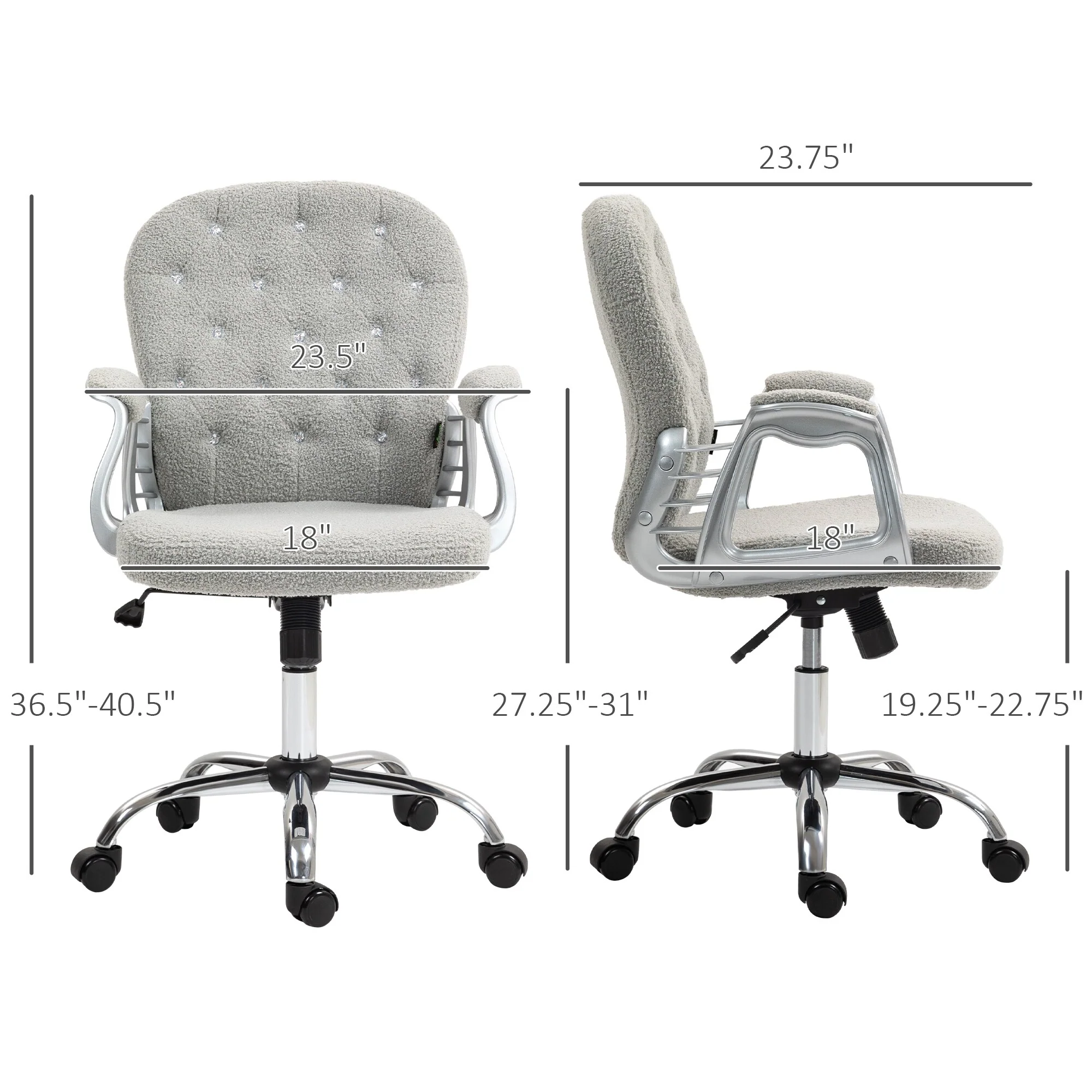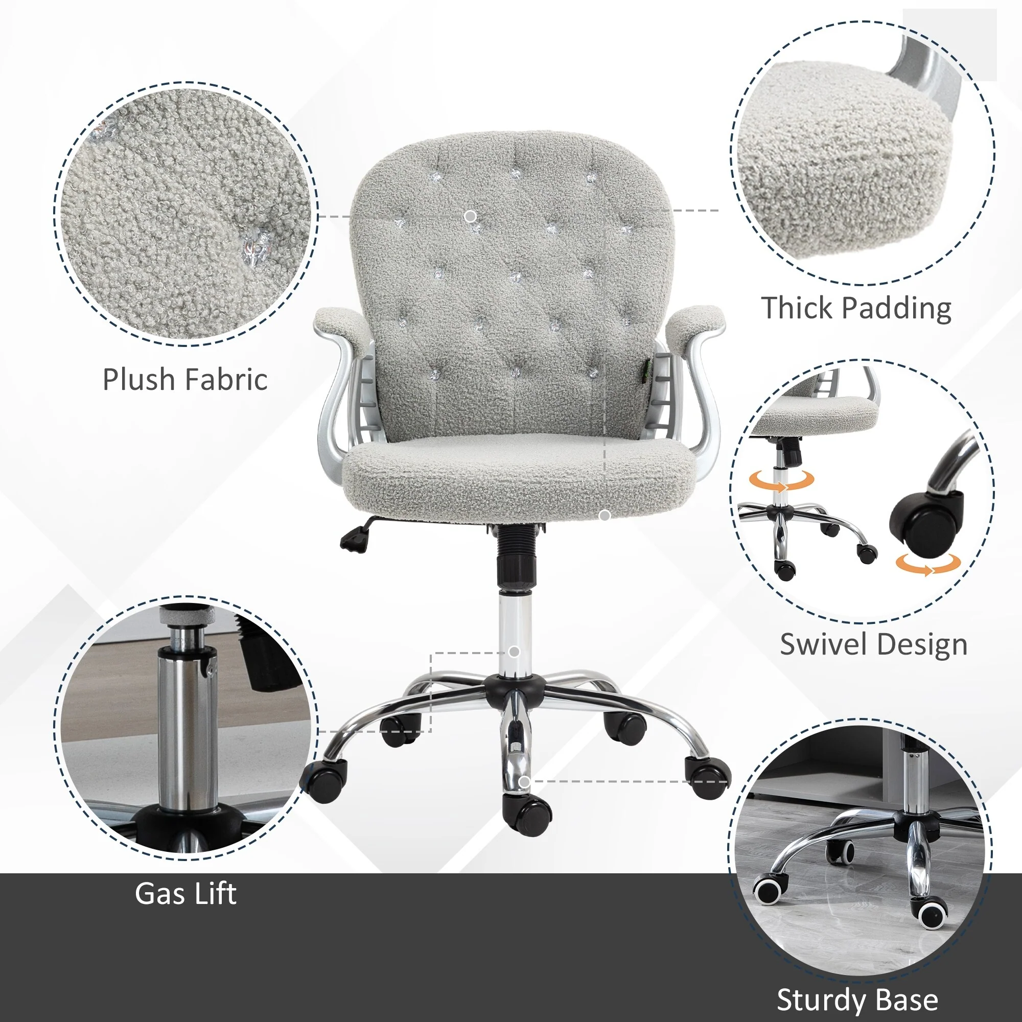 Designed for maximum comfort and support, this office chair features a curved backrest covered in soft teddy fleece fabric and thick foam padding for a breathable sitting experience. With adjustable height and a tilt function, you can easily customizeit to suit your desk and sitting preferences, ensuring comfort throughout the day.