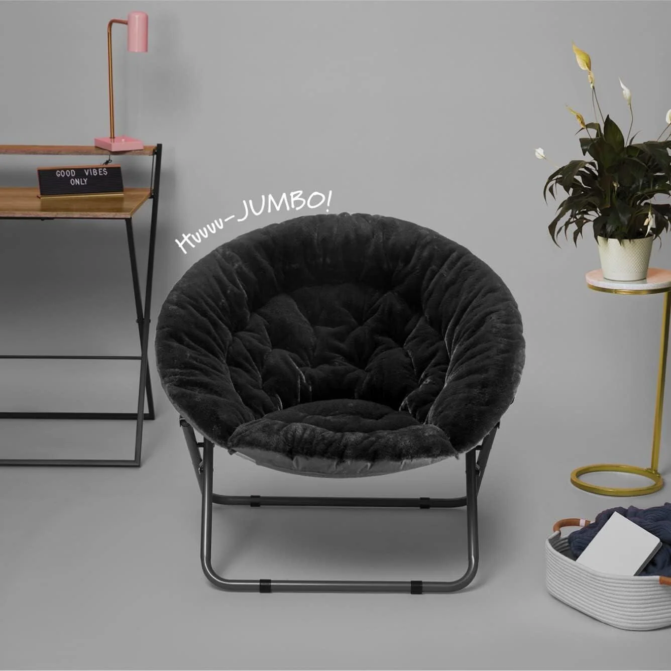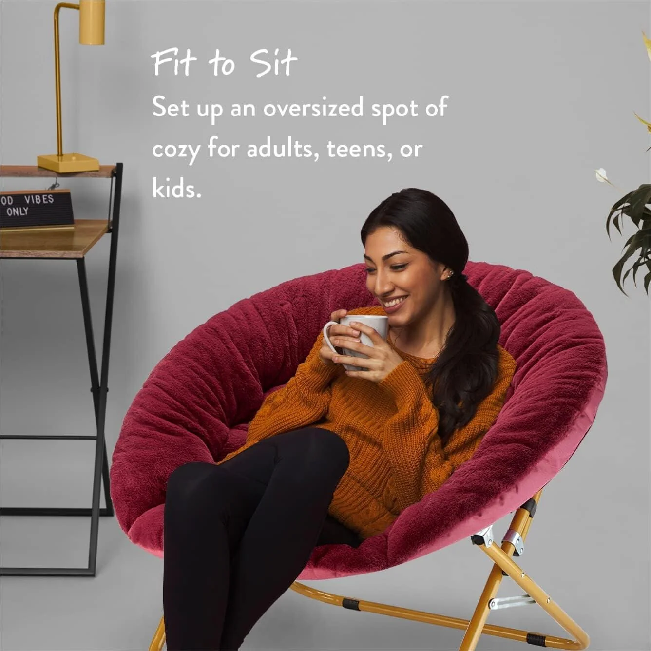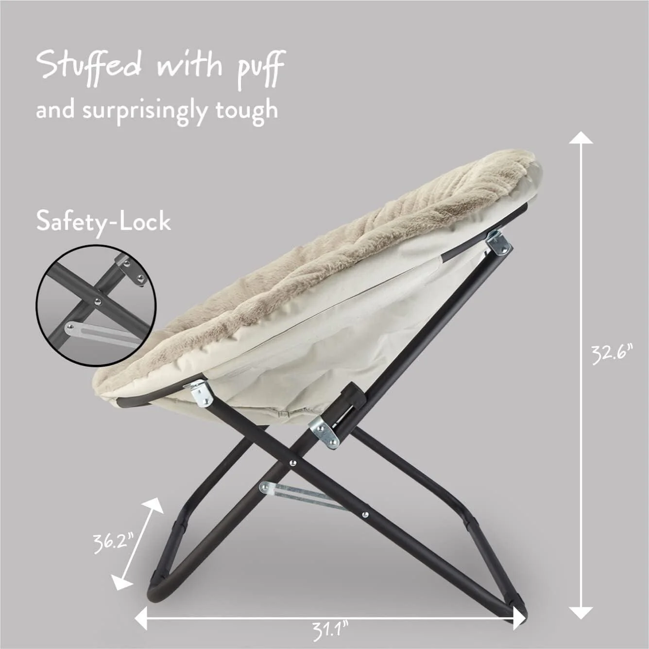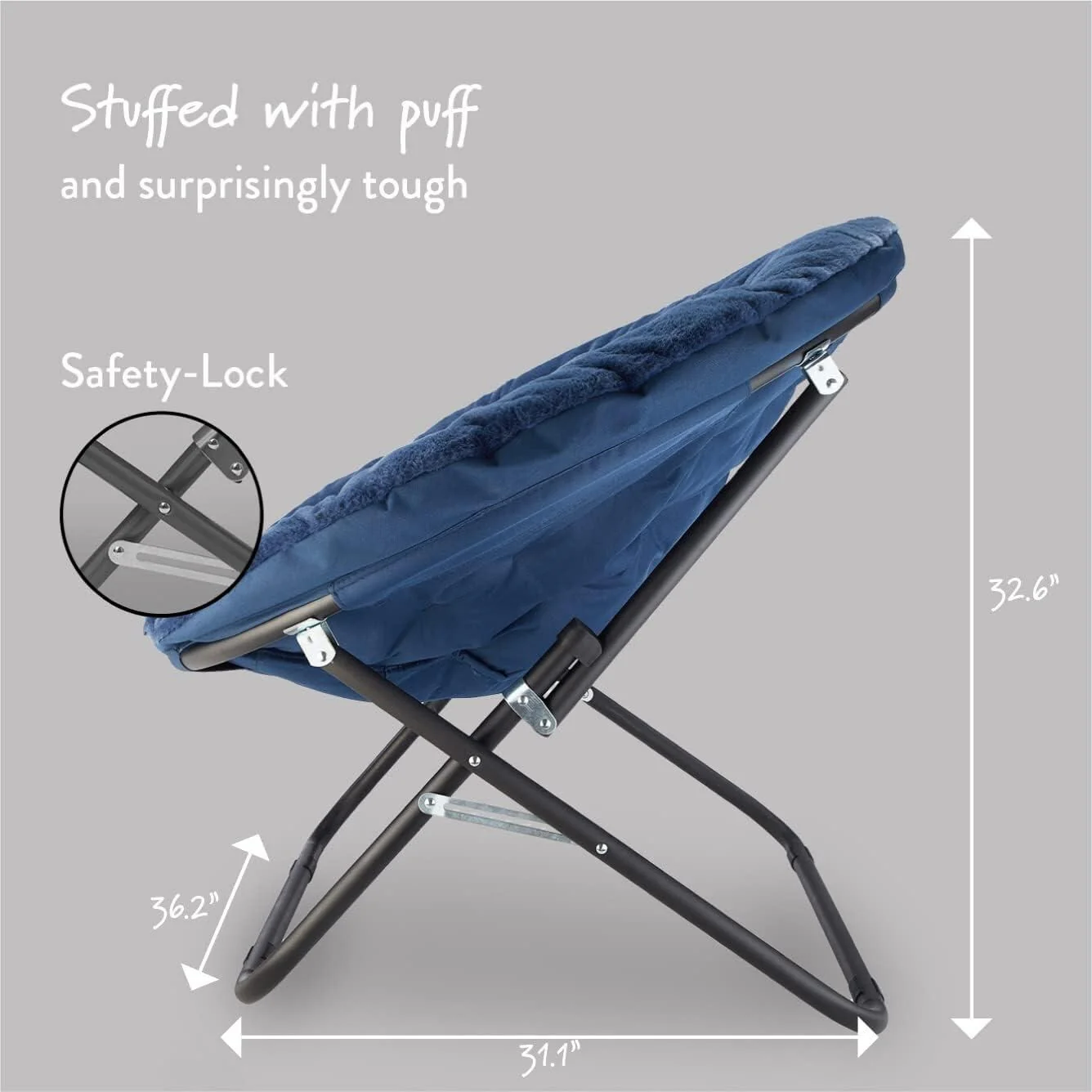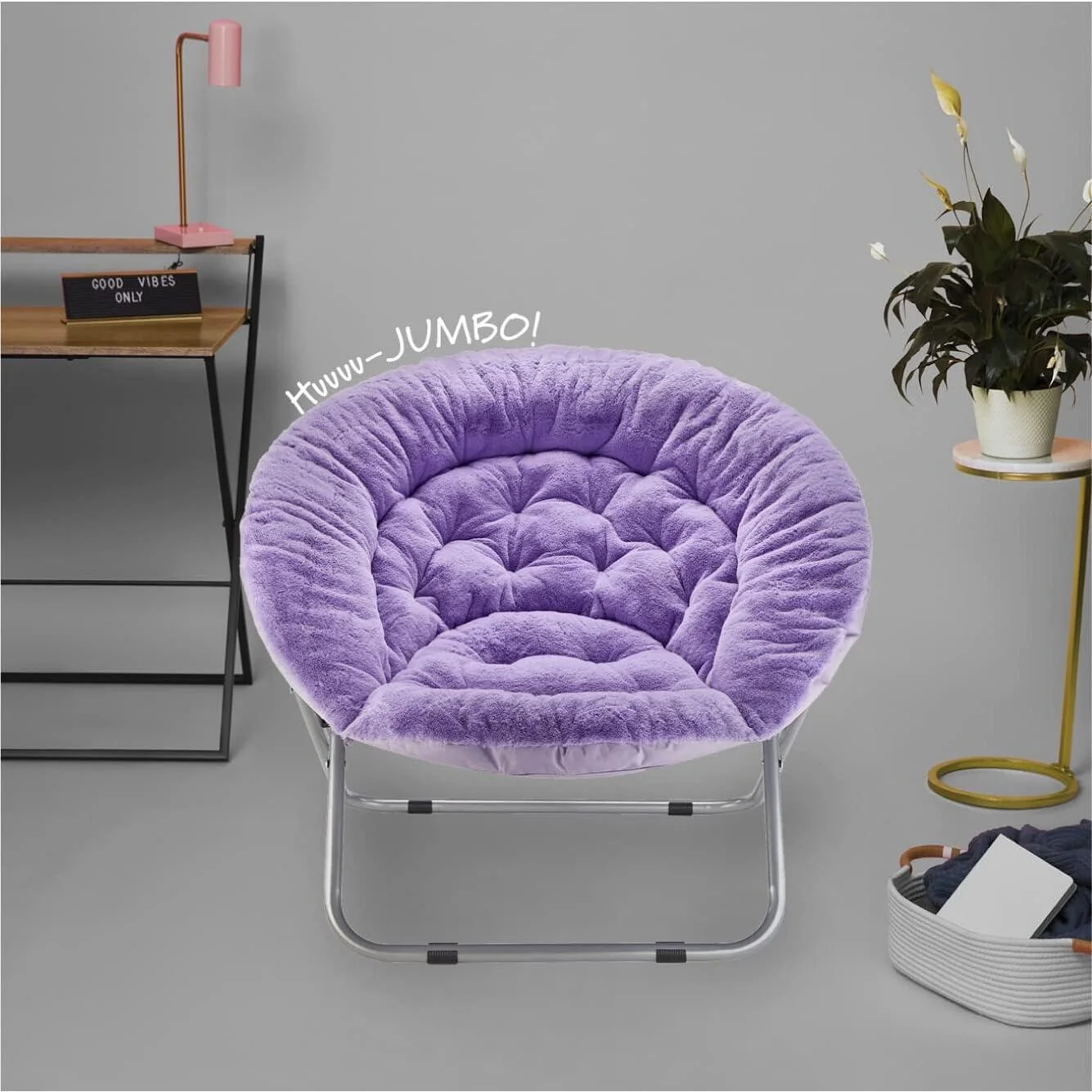 The Urban Lifestyle oversized saucer chair is perfect solution to additional seating for any room. It has a wide design and cozy polyester fabric for a comfortable place to study, relax or watch TV after a long day. The Urban Lifestyle oversized chair features a durable steel frame and is easy to transport or store. It's ideal for dorm rooms, apartments, bedrooms and more. It adds a pop of color to any room and is sure to become everyone's favorite spot to sit or lounge. Add contemporary style to your living room or den area, entertainment room or any space where you need comfy extra seating. This Urban Lifestyle oversized chair makes a wonderful addition to your home and is also ideal for gaming or to place in a playroom. Saucer chair measures: 36.2'L x 32.3'W x 31.9'H. Seat depth is 31' and distance from floor to seat is 15'H with a weight capacity of 225 lbs. The perfect size for most teens, teens and adults. No assembly required.