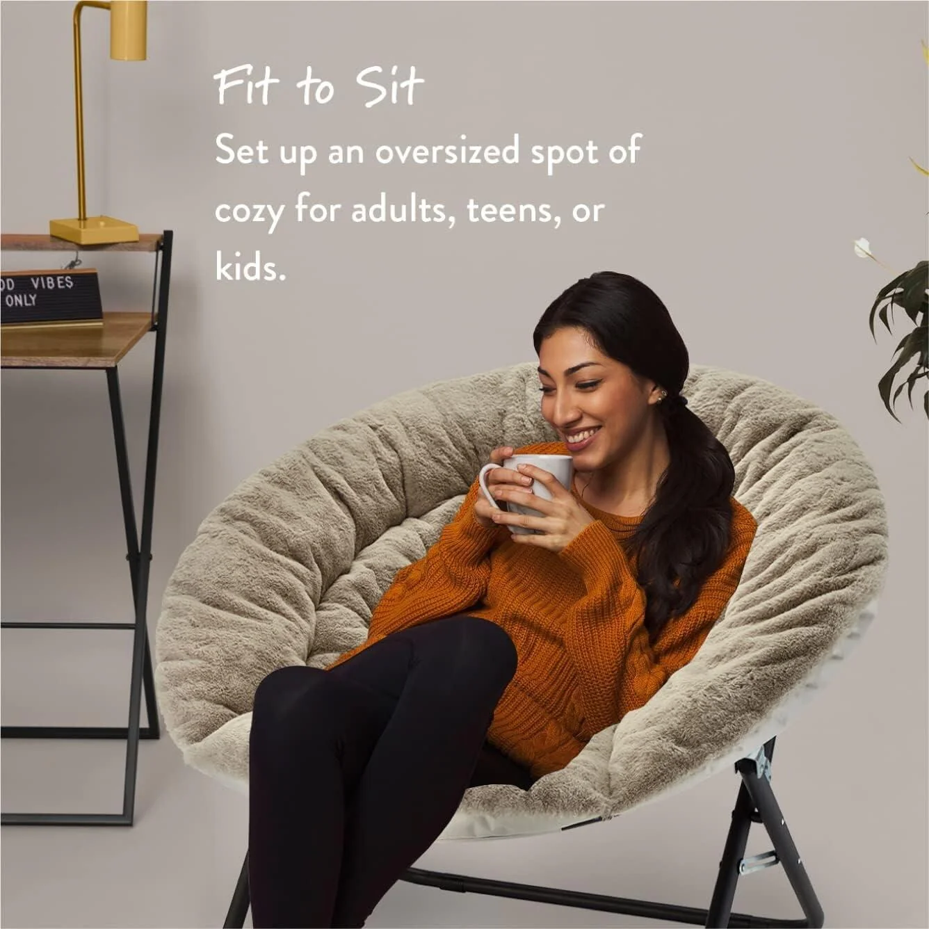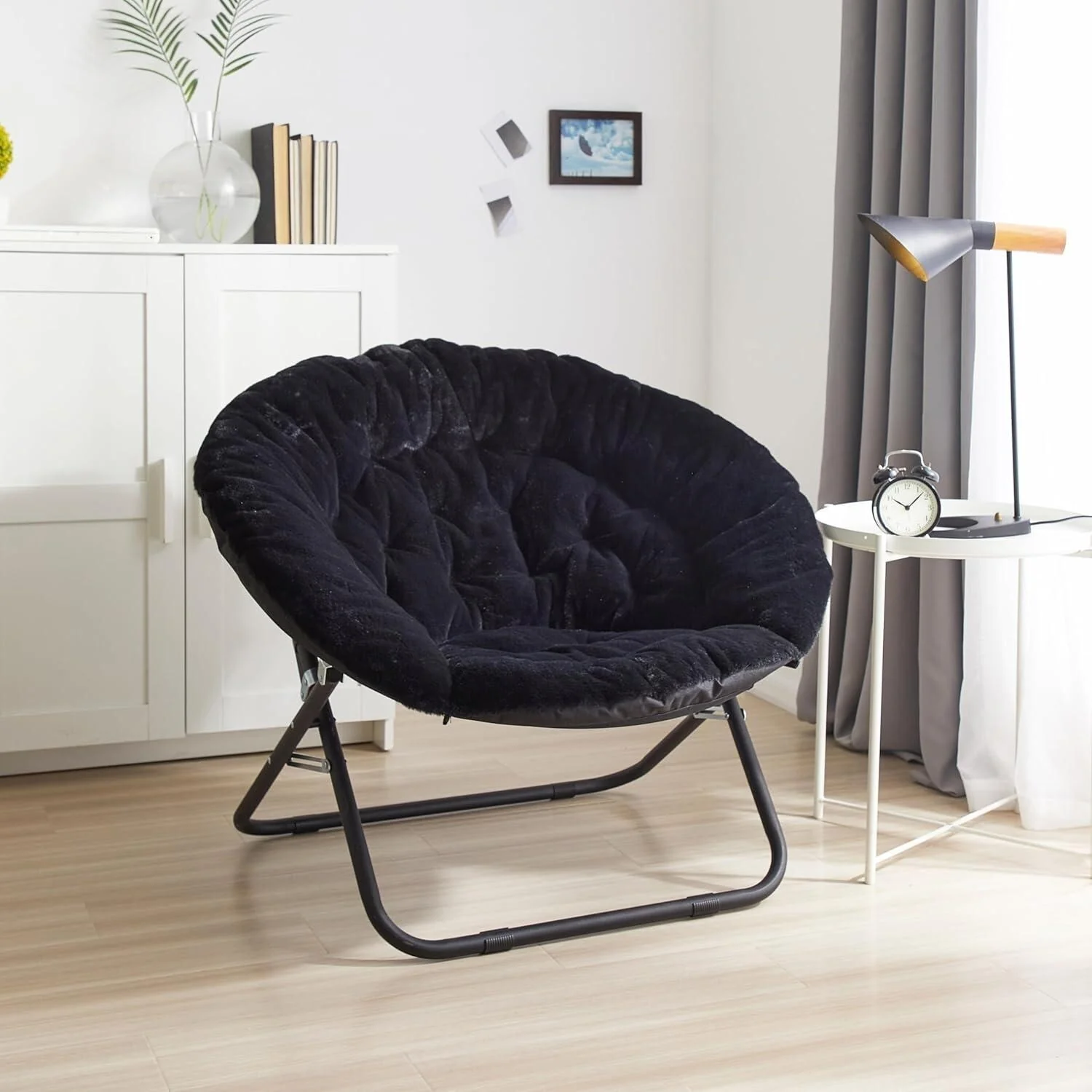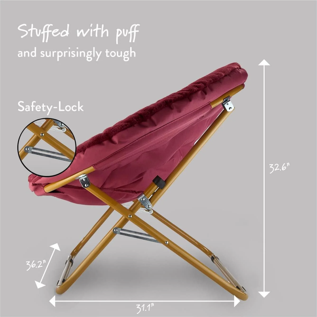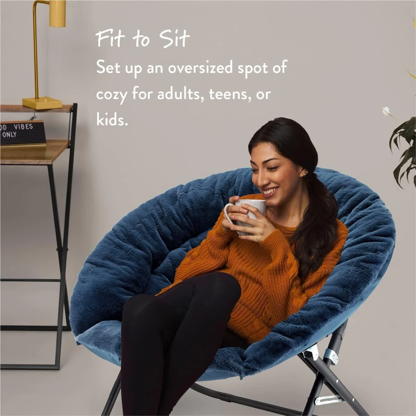 The Urban Lifestyle oversized saucer chair is perfect solution to additional seating for any room. It has a wide design and cozy polyester fabric for a comfortable place to study, relax or watch TV after a long day. The Urban Lifestyle oversized chair features a durable steel frame and is easy to transport or store. It's ideal for dorm rooms, apartments, bedrooms and more. It adds a pop of color to any room and is sure to become everyone's favorite spot to sit or lounge. Add contemporary style to your living room or den area, entertainment room or any space where you need comfy extra seating. This Urban Lifestyle oversized chair makes a wonderful addition to your home and is also ideal for gaming or to place in a playroom. Saucer chair measures: 36.2'L x 32.3'W x 31.9'H. Seat depth is 31' and distance from floor to seat is 15'H with a weight capacity of 225 lbs. The perfect size for most teens, teens and adults. No assembly required.