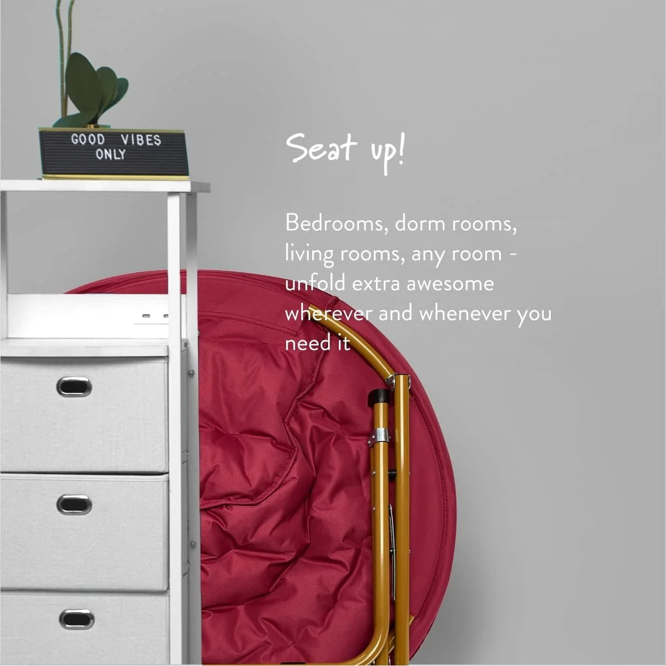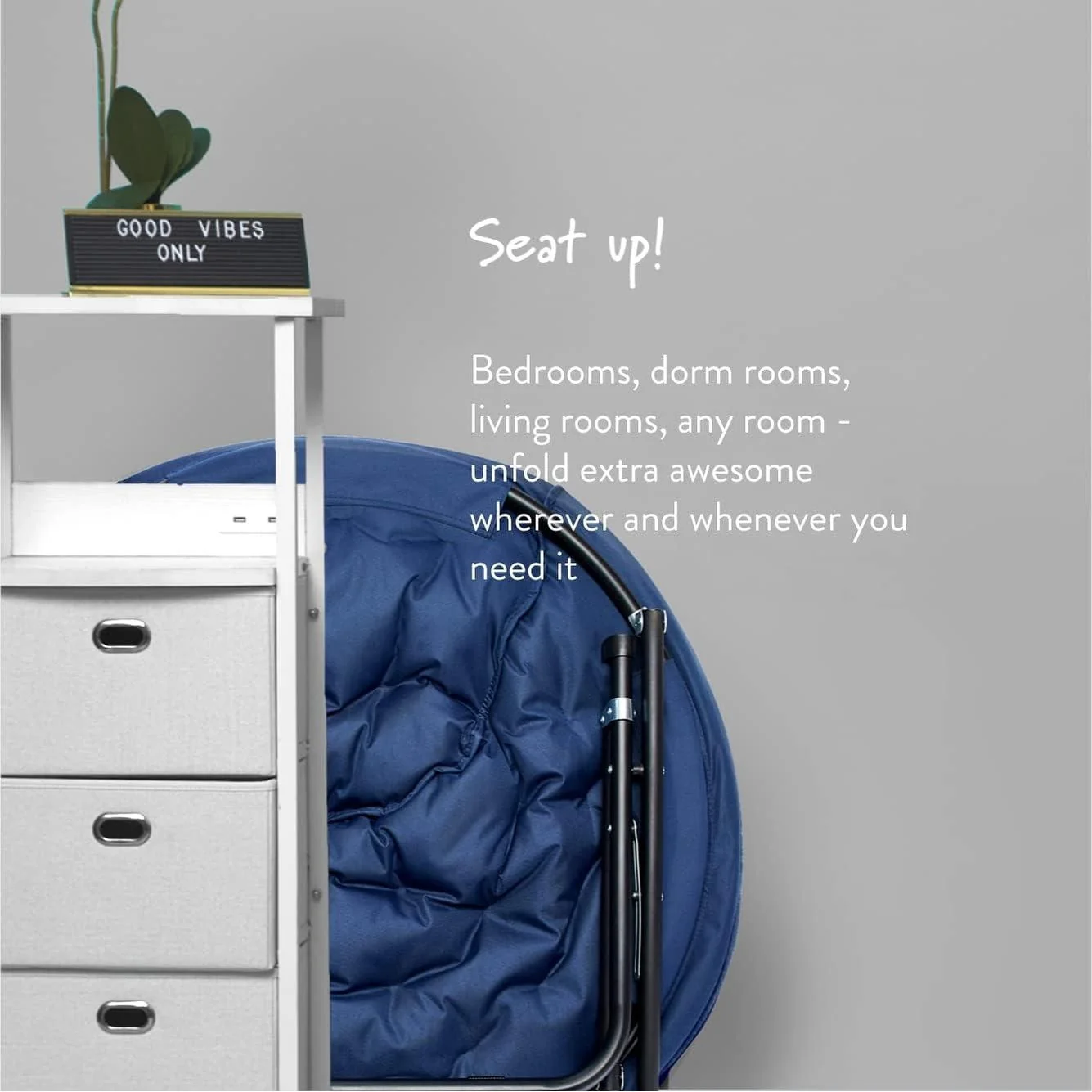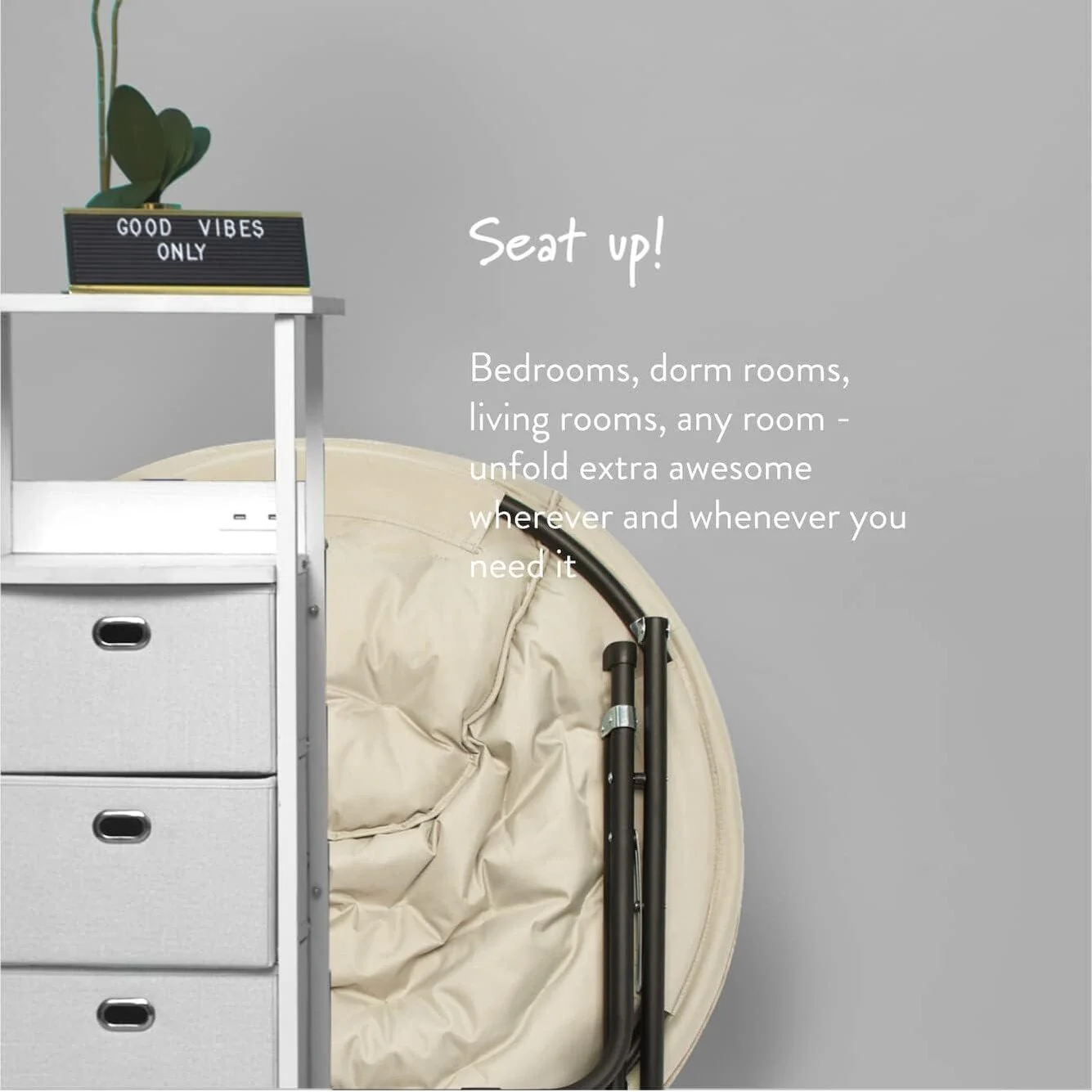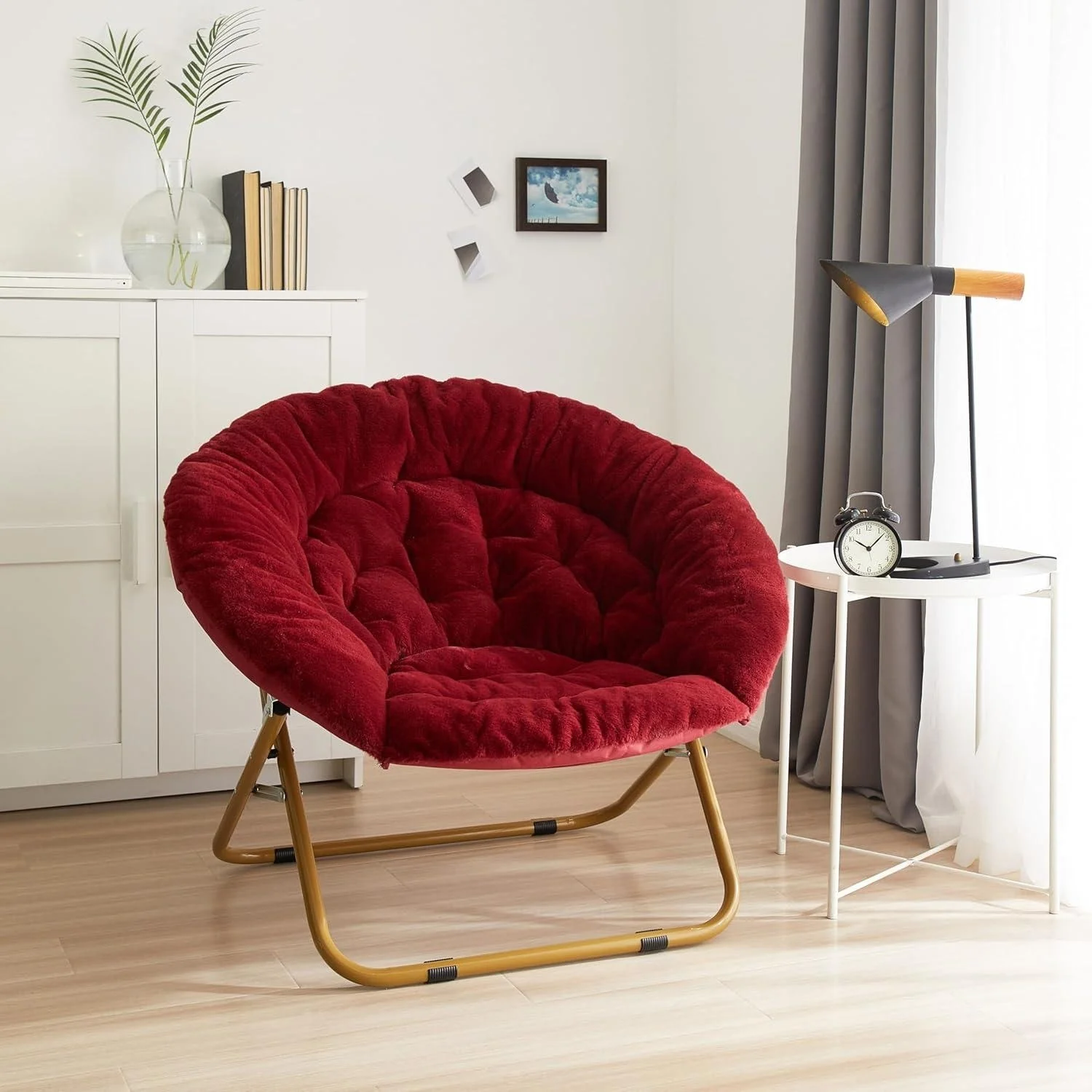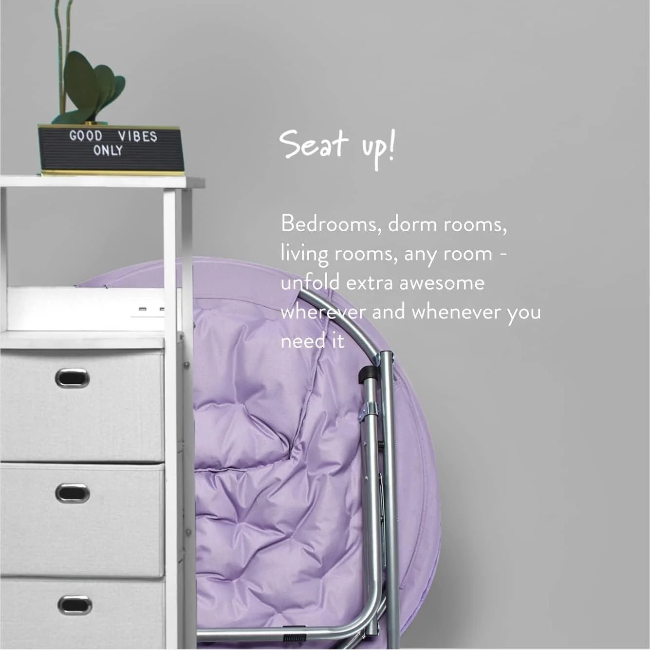The Urban Lifestyle oversized saucer chair is perfect solution to additional seating for any room. It has a wide design and cozy polyester fabric for a comfortable place to study, relax or watch TV after a long day. The Urban Lifestyle oversized chair features a durable steel frame and is easy to transport or store. It's ideal for dorm rooms, apartments, bedrooms and more. It adds a pop of color to any room and is sure to become everyone's favorite spot to sit or lounge. Add contemporary style to your living room or den area, entertainment room or any space where you need comfy extra seating. This Urban Lifestyle oversized chair makes a wonderful addition to your home and is also ideal for gaming or to place in a playroom. Saucer chair measures: 36.2'L x 32.3'W x 31.9'H. Seat depth is 31' and distance from floor to seat is 15'H with a weight capacity of 225 lbs. The perfect size for most teens, teens and adults. No assembly required.