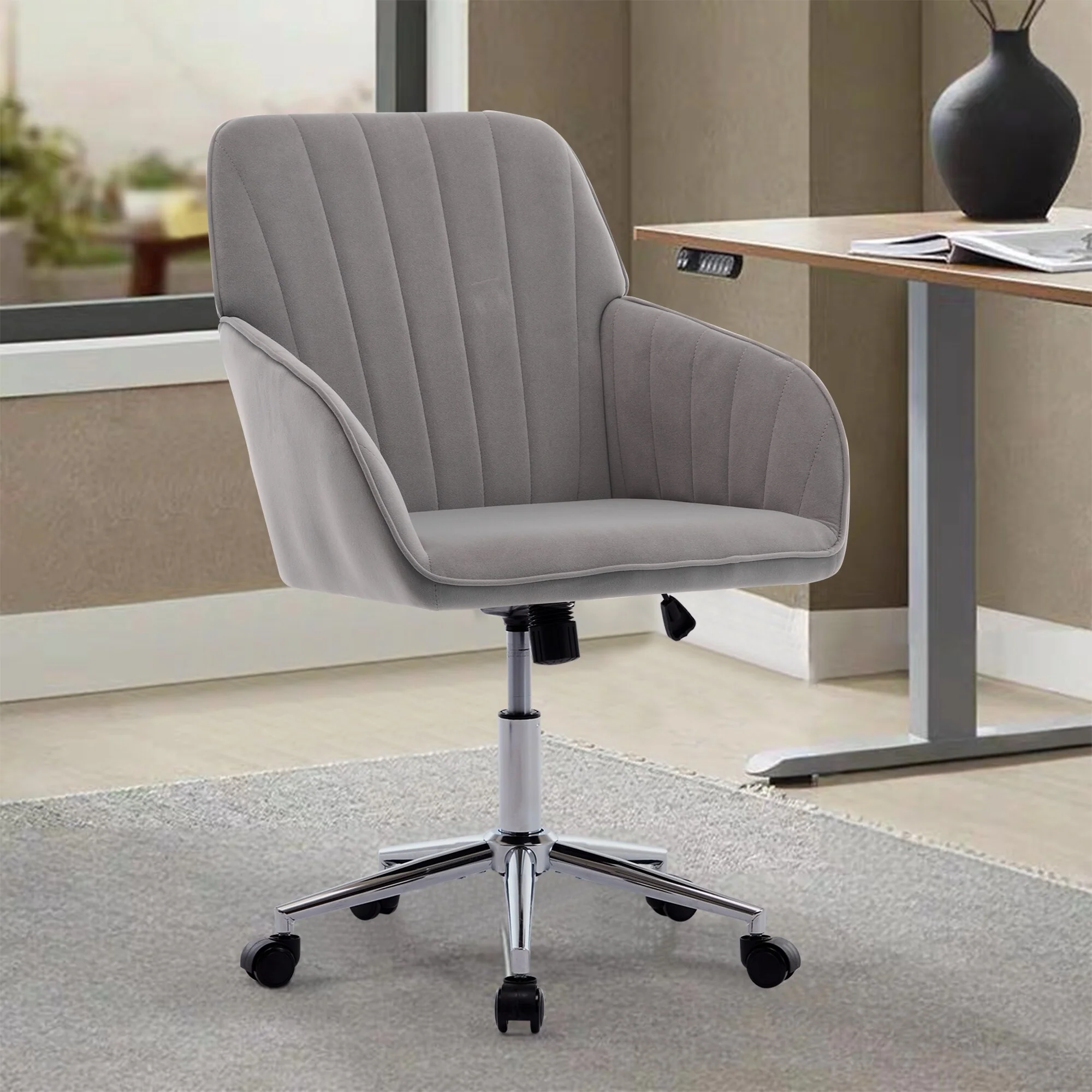 Designed for comfort and durability, this office chair features a sturdy silver metal alloy base with a sleek electroplated finish. The high-grade memory foam cushion conforms to your body, offering continuous support and pressure relief during long hoursof sitting.