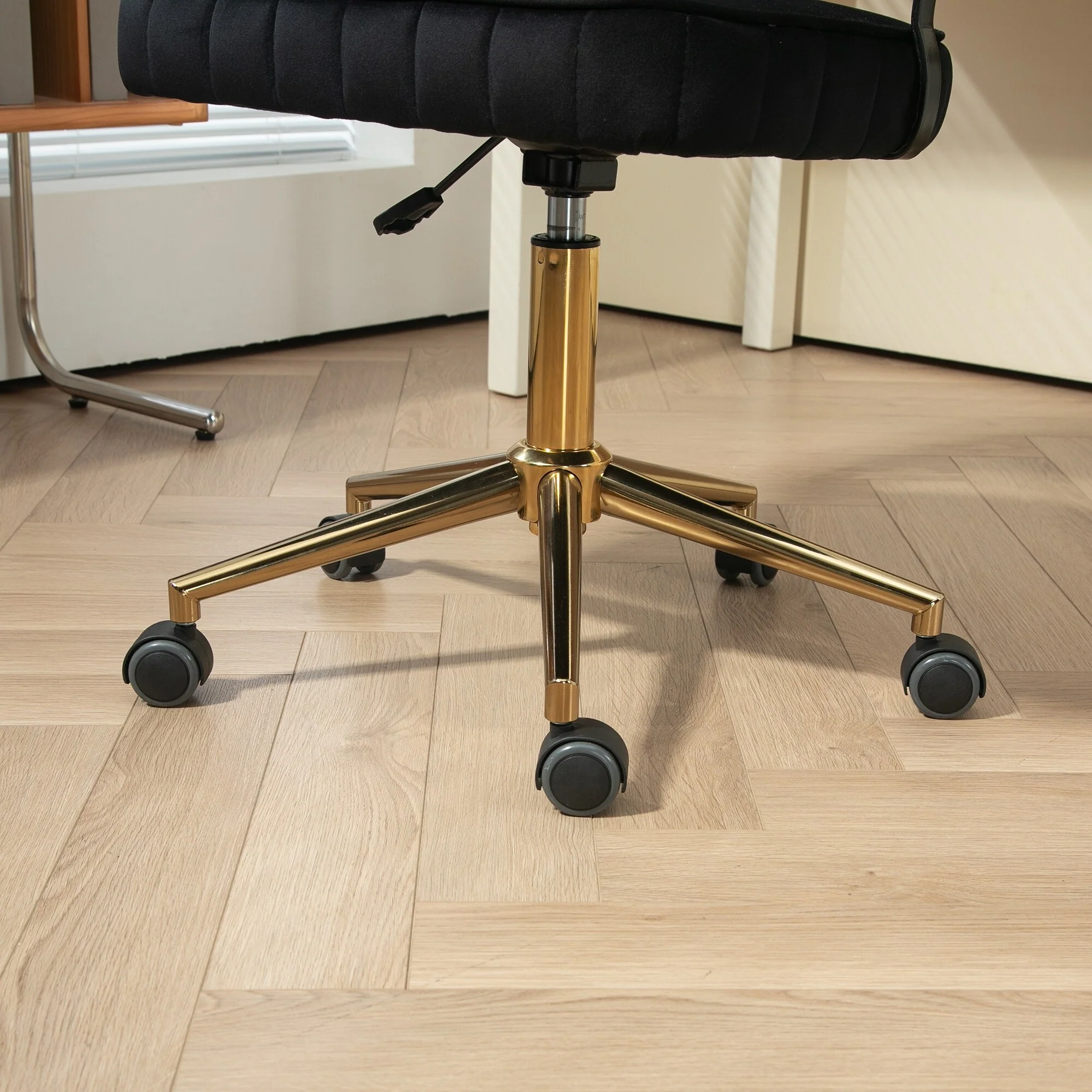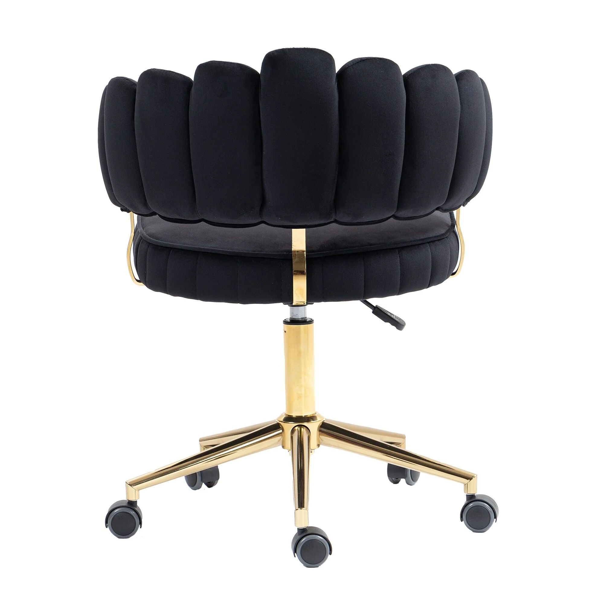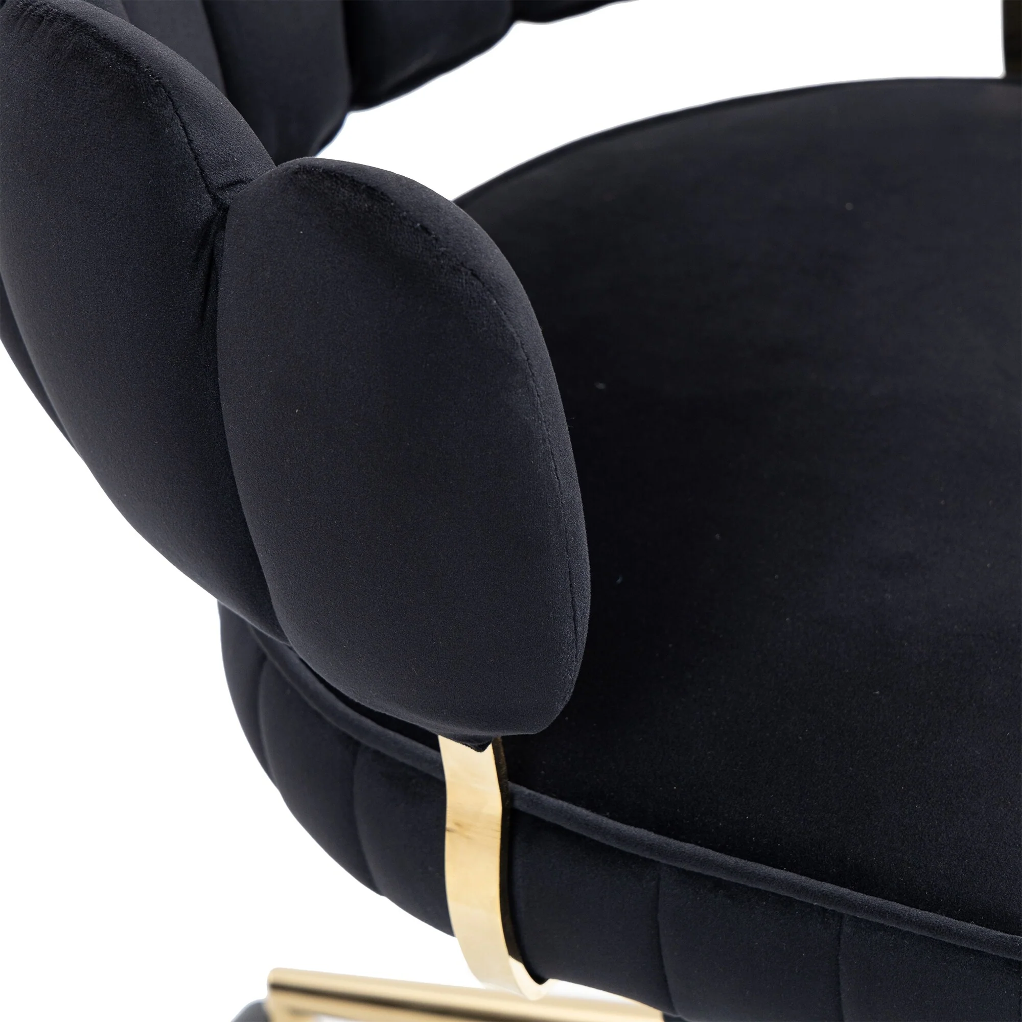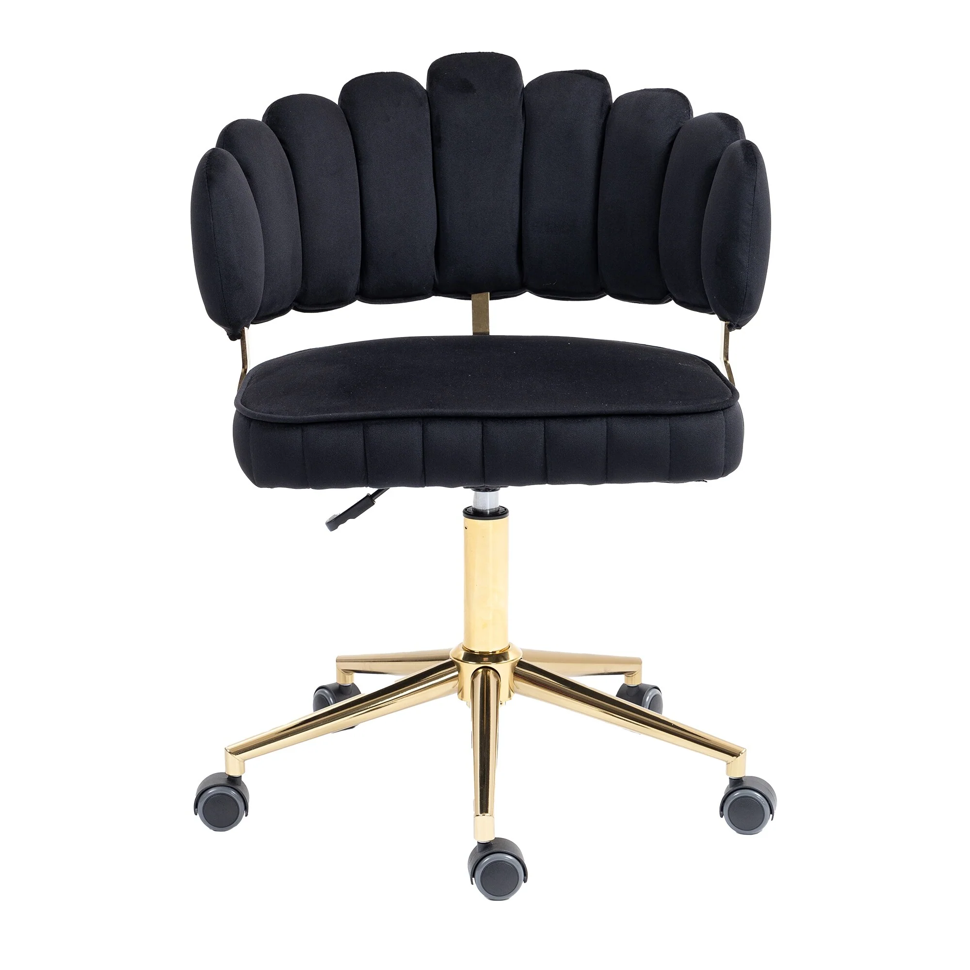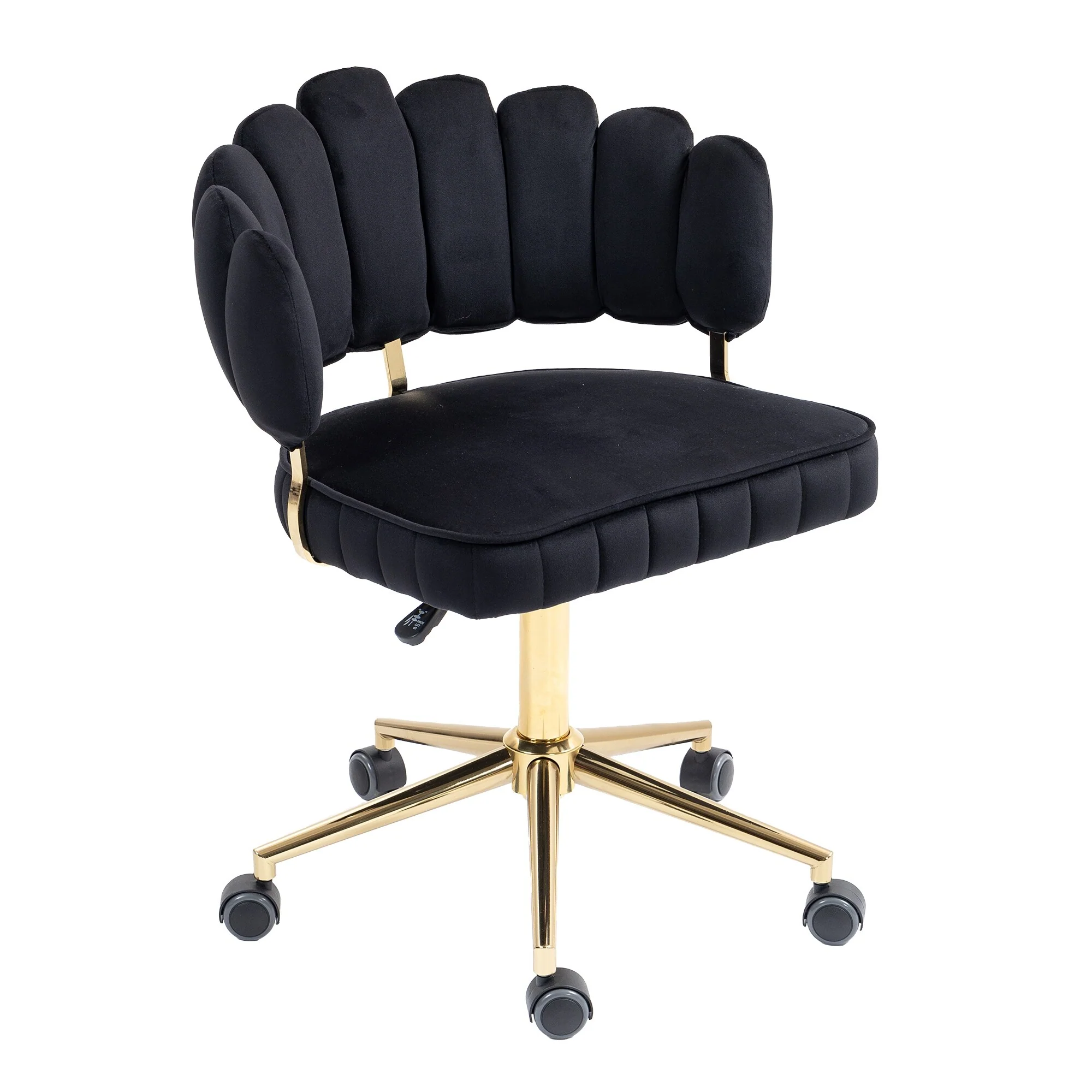 Designed with luxurious high-grade velvet fabric and a high-density foam-filled seat, this office chair offers a perfect blend of comfort and flexibility. The golden base paired with black swivel casters gives it a sophisticated mid-century modern look,making it ideal for both home and office spaces.