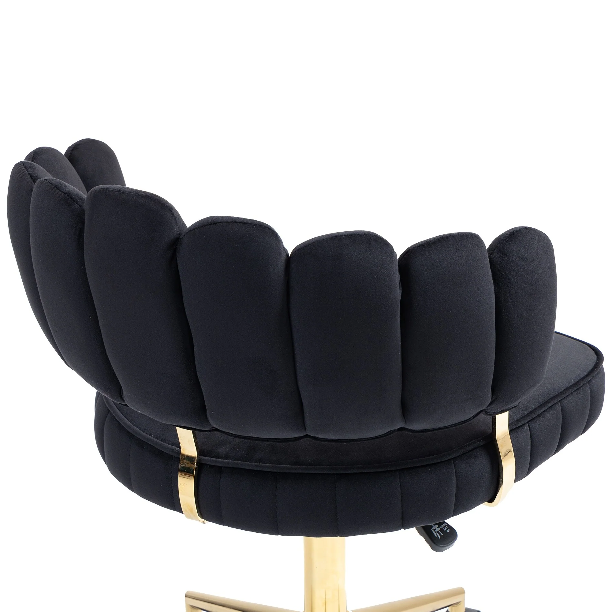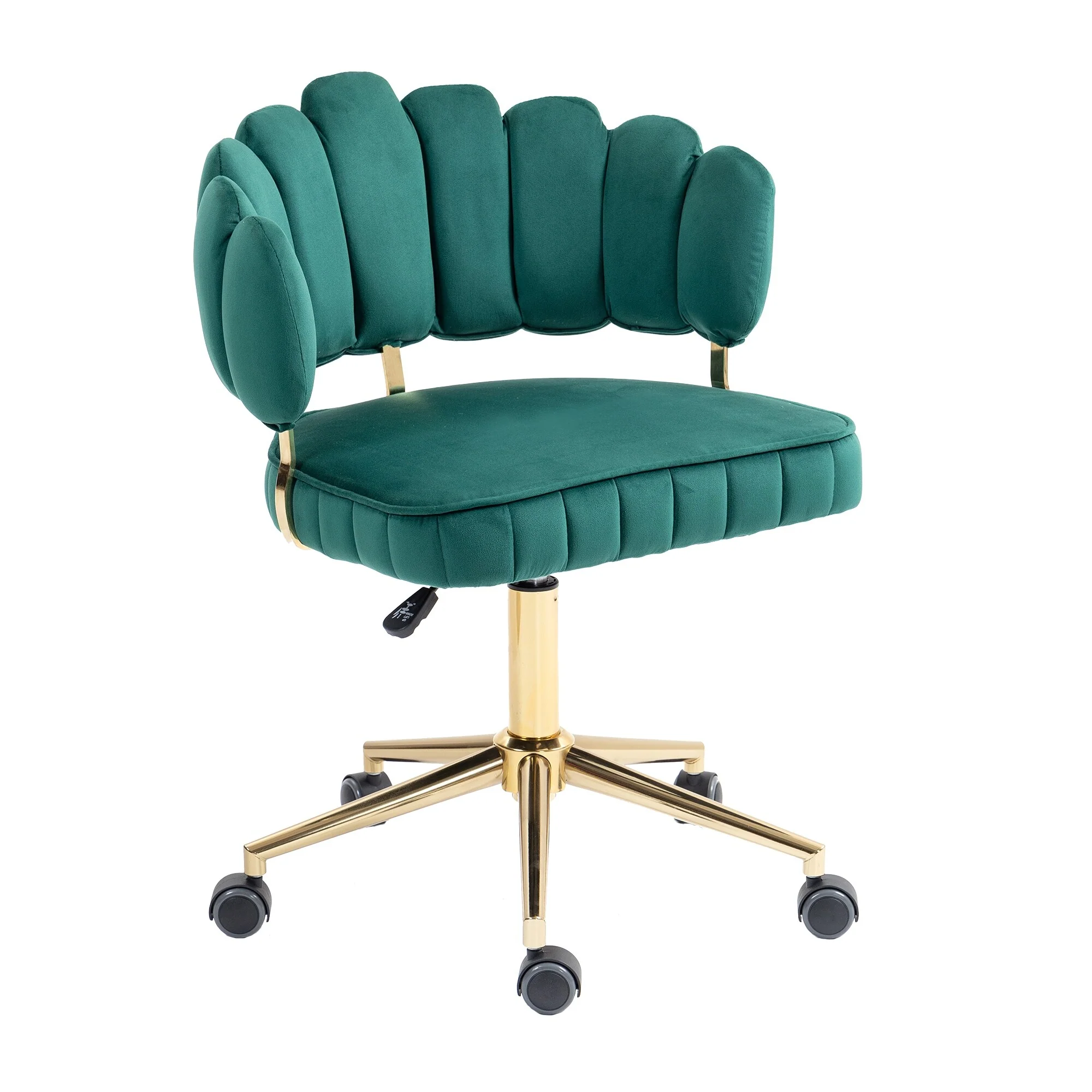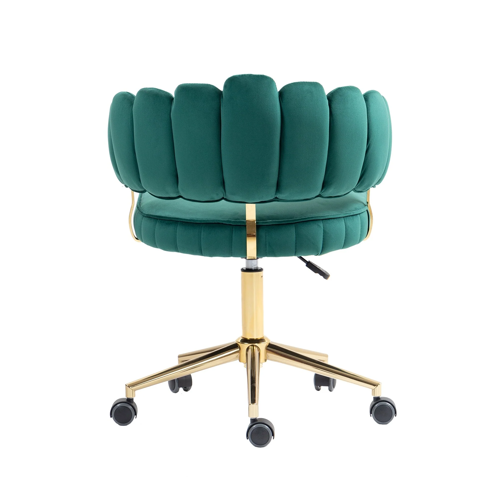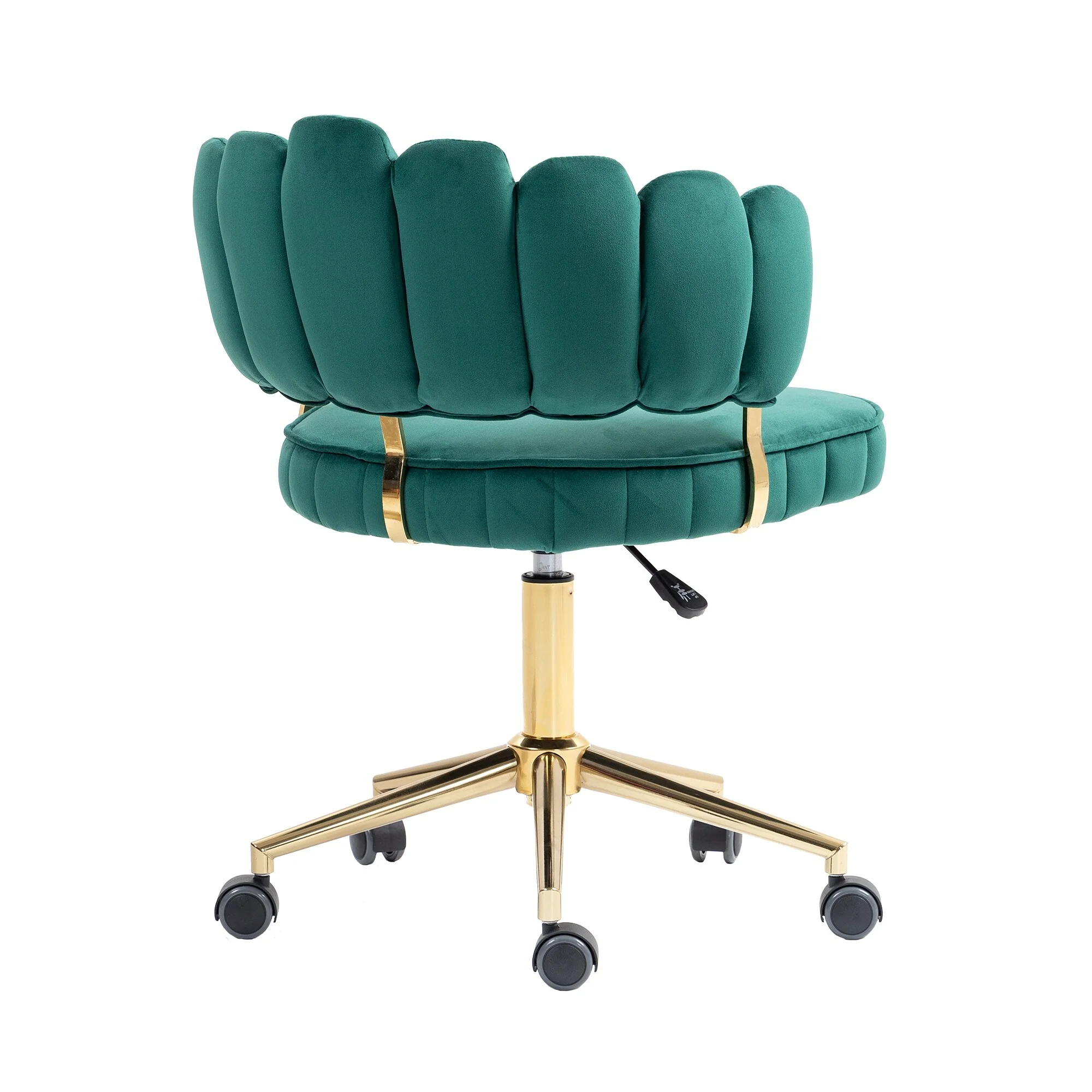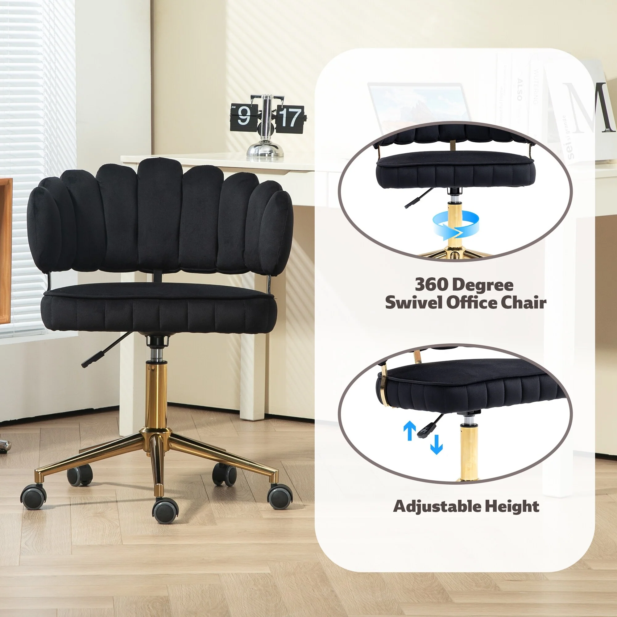 Designed with luxurious high-grade velvet fabric and a high-density foam-filled seat, this office chair offers a perfect blend of comfort and flexibility. The golden base paired with black swivel casters gives it a sophisticated mid-century modern look,making it ideal for both home and office spaces.
