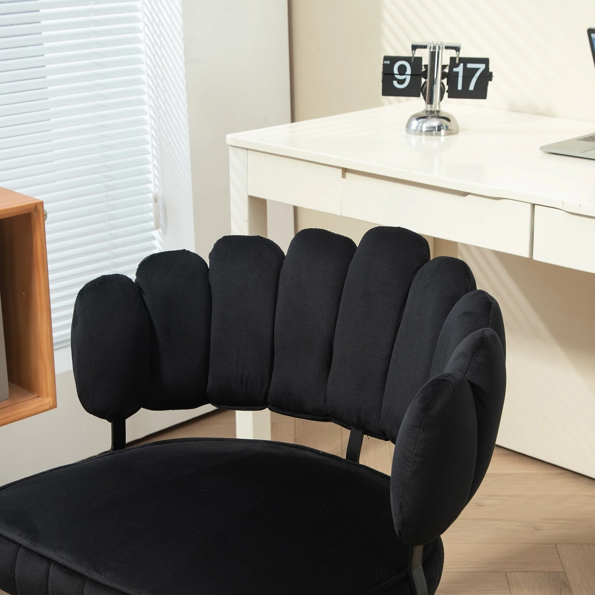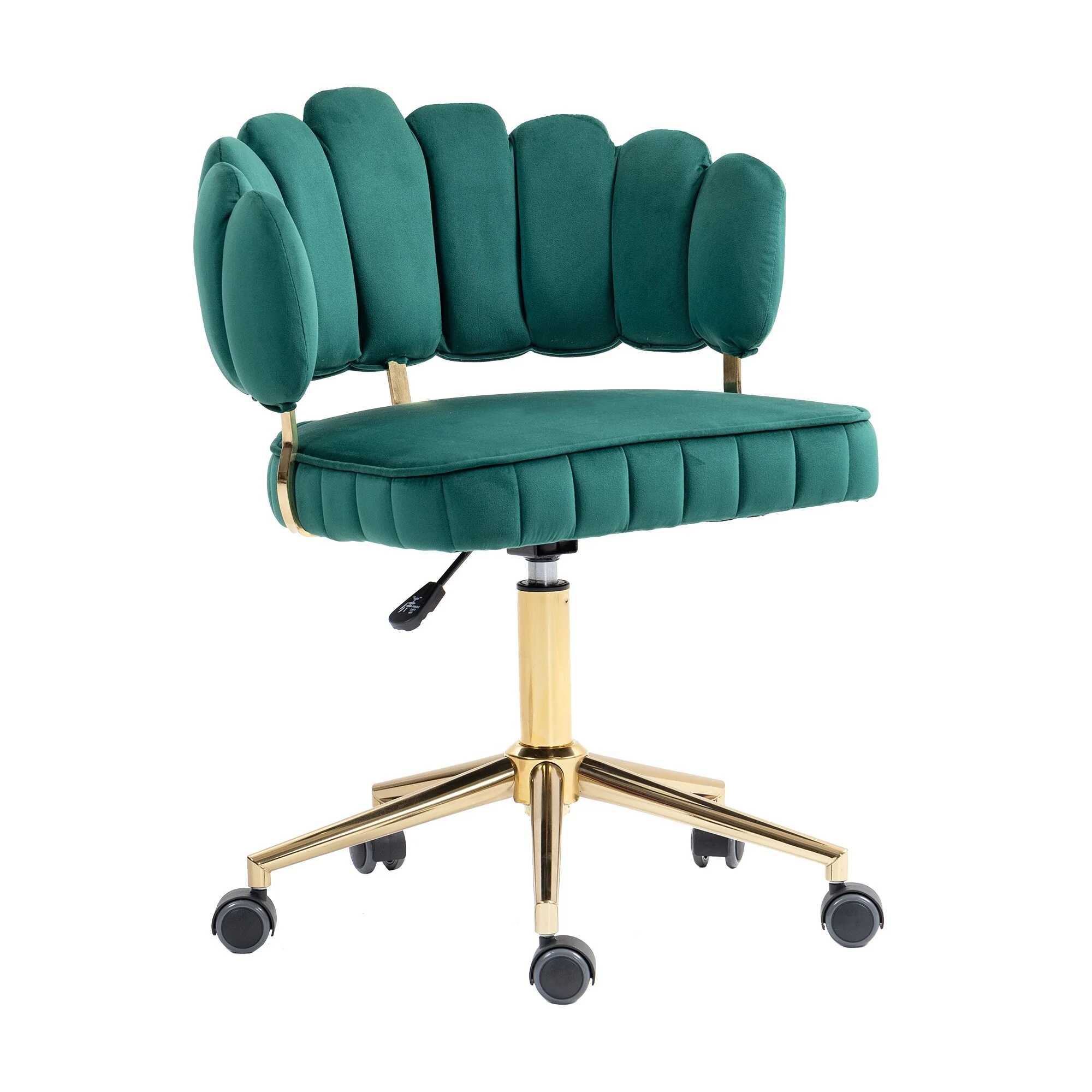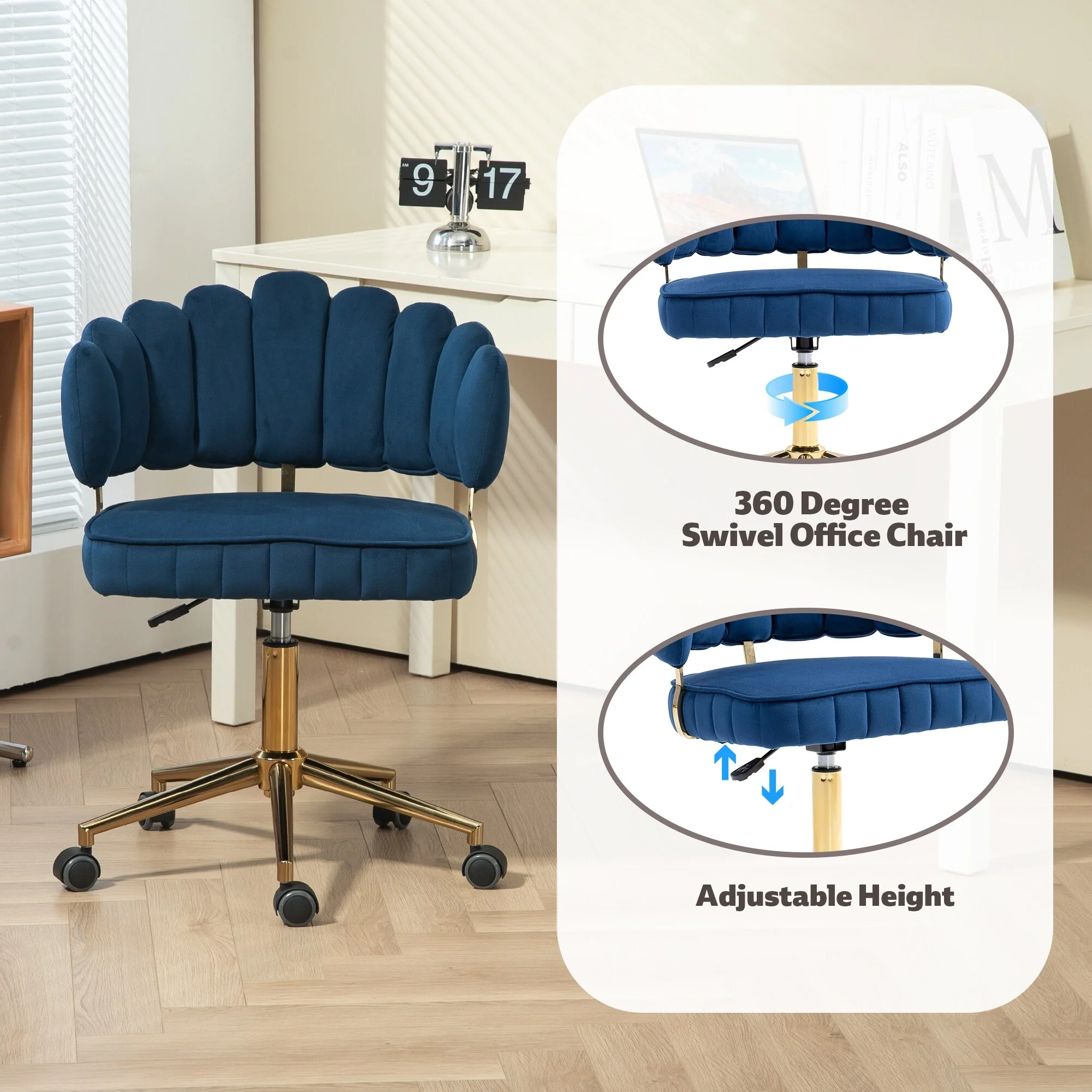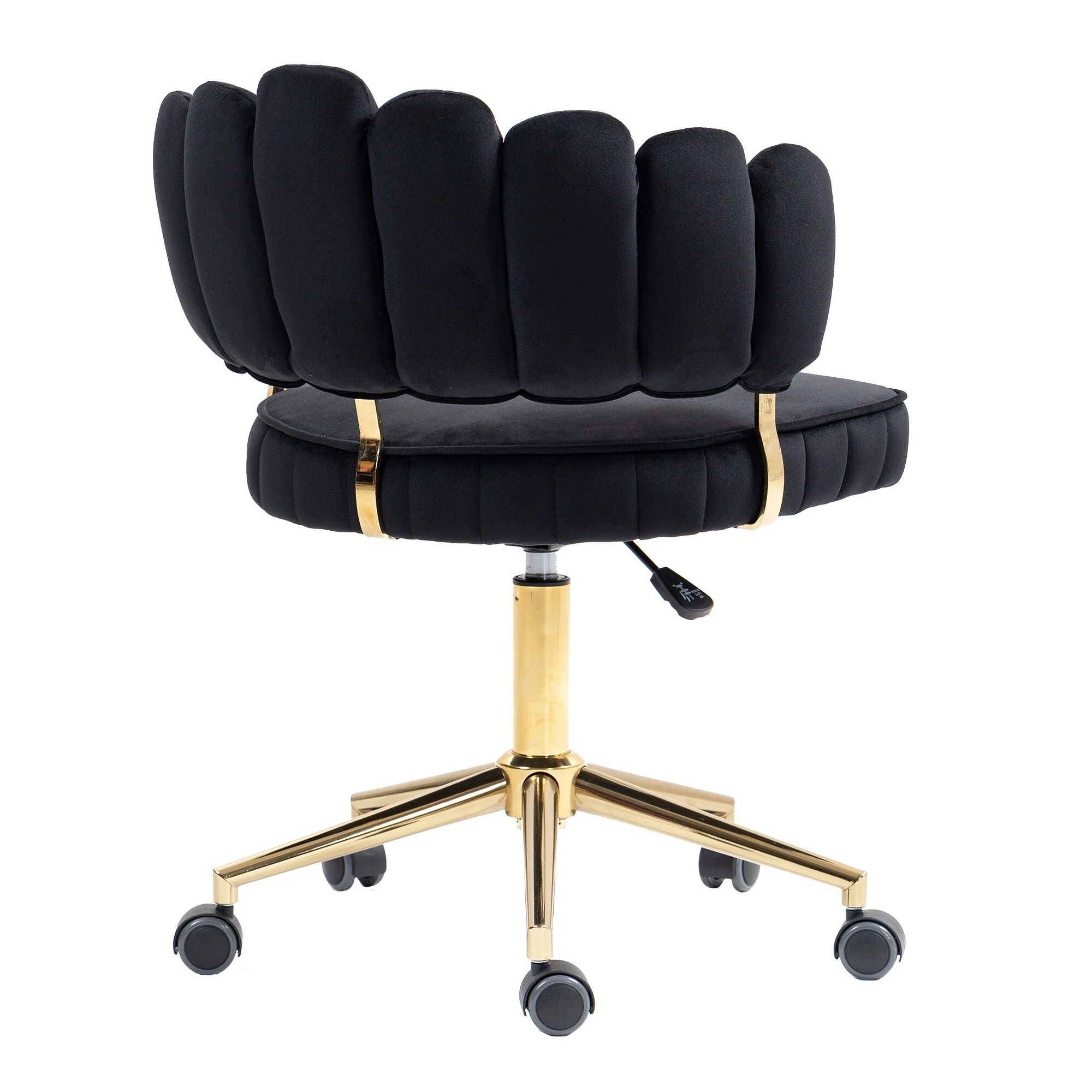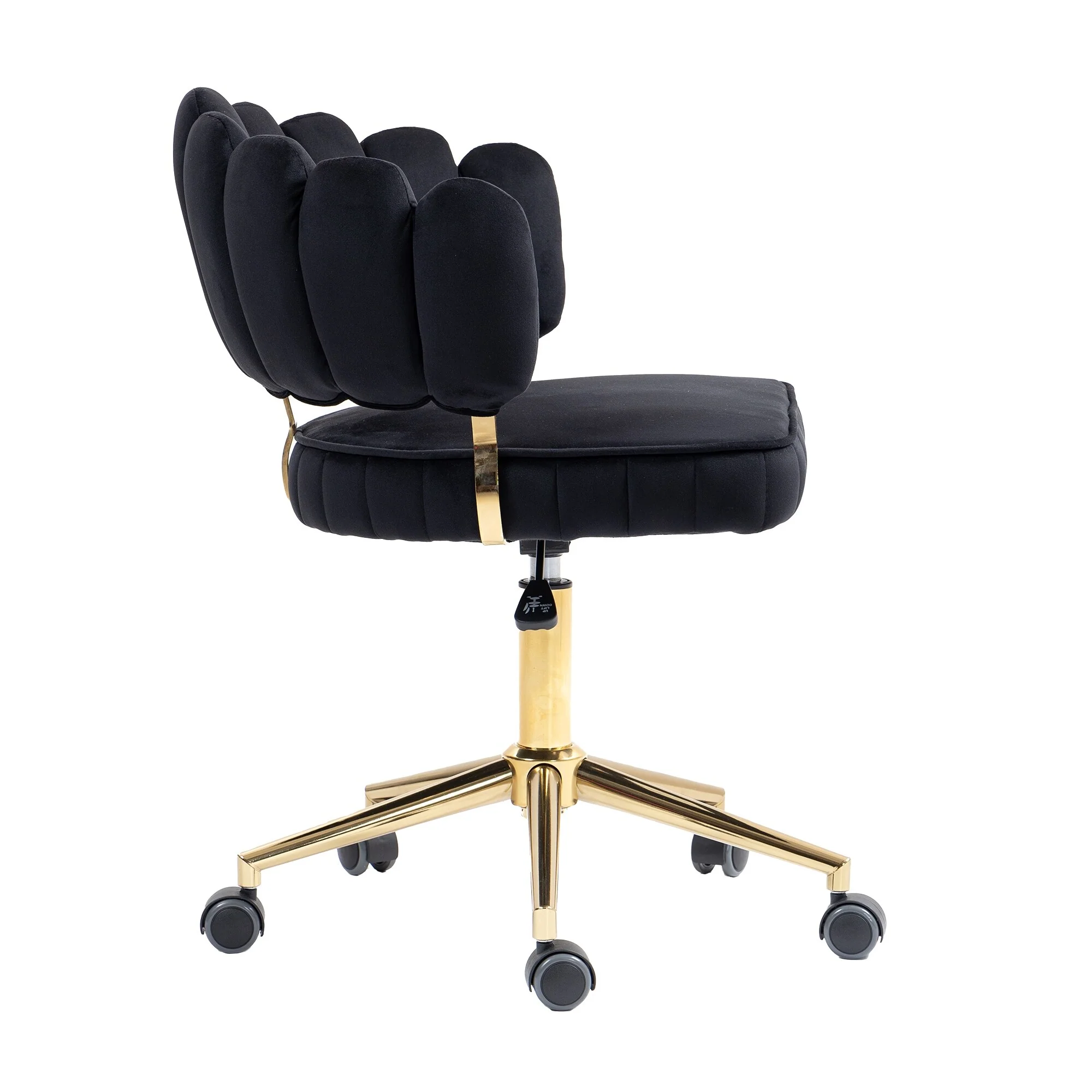 Designed with luxurious high-grade velvet fabric and a high-density foam-filled seat, this office chair offers a perfect blend of comfort and flexibility. The golden base paired with black swivel casters gives it a sophisticated mid-century modern look,making it ideal for both home and office spaces.
