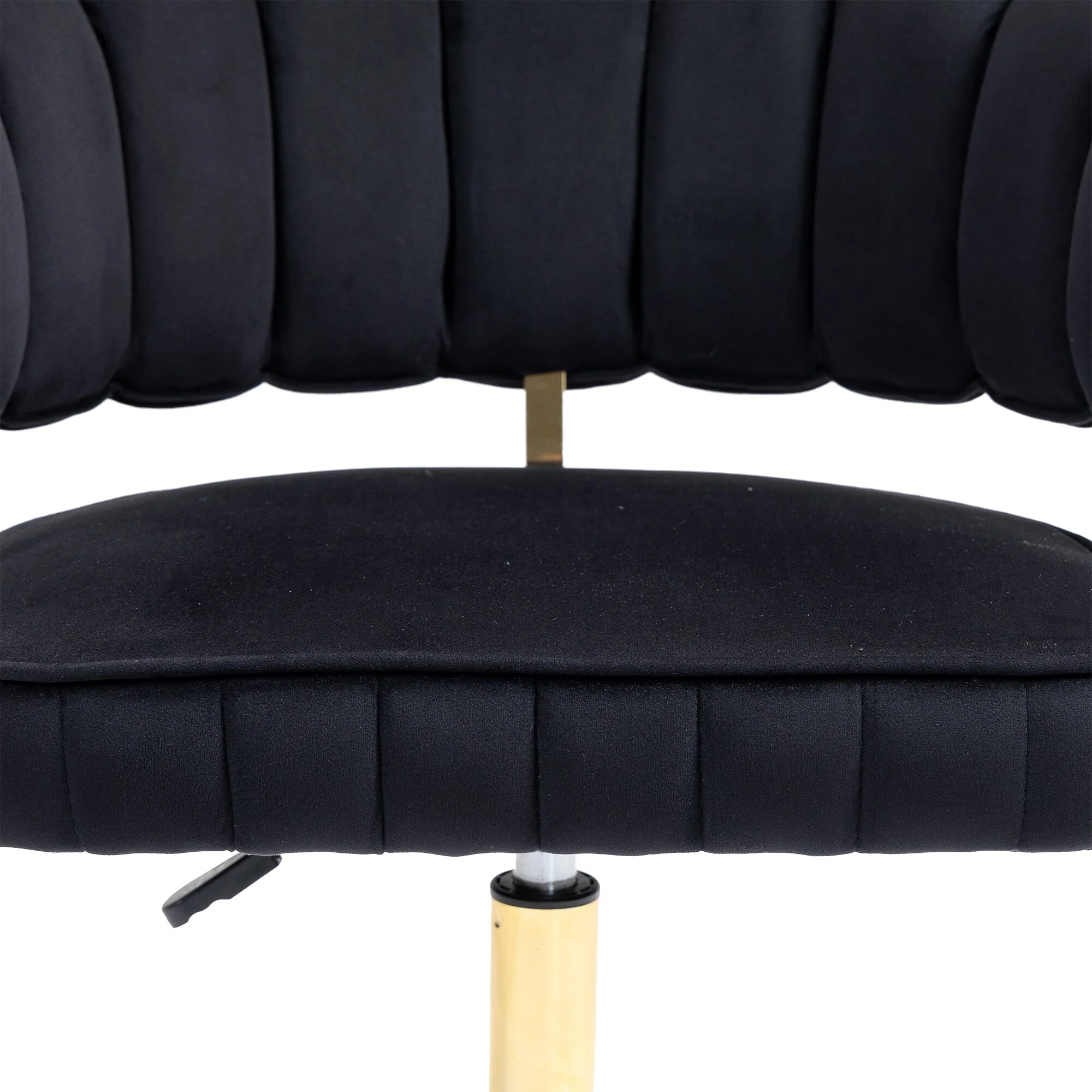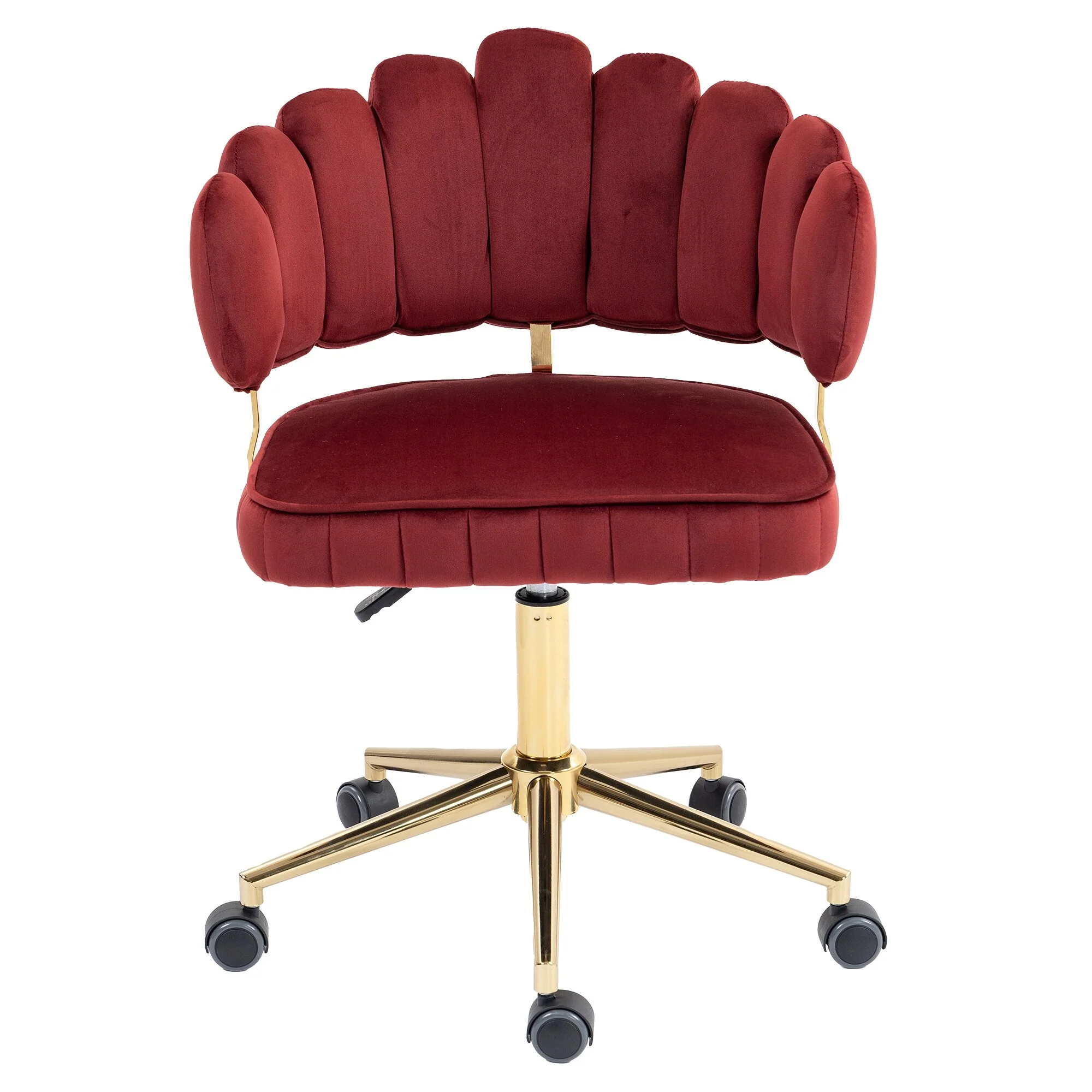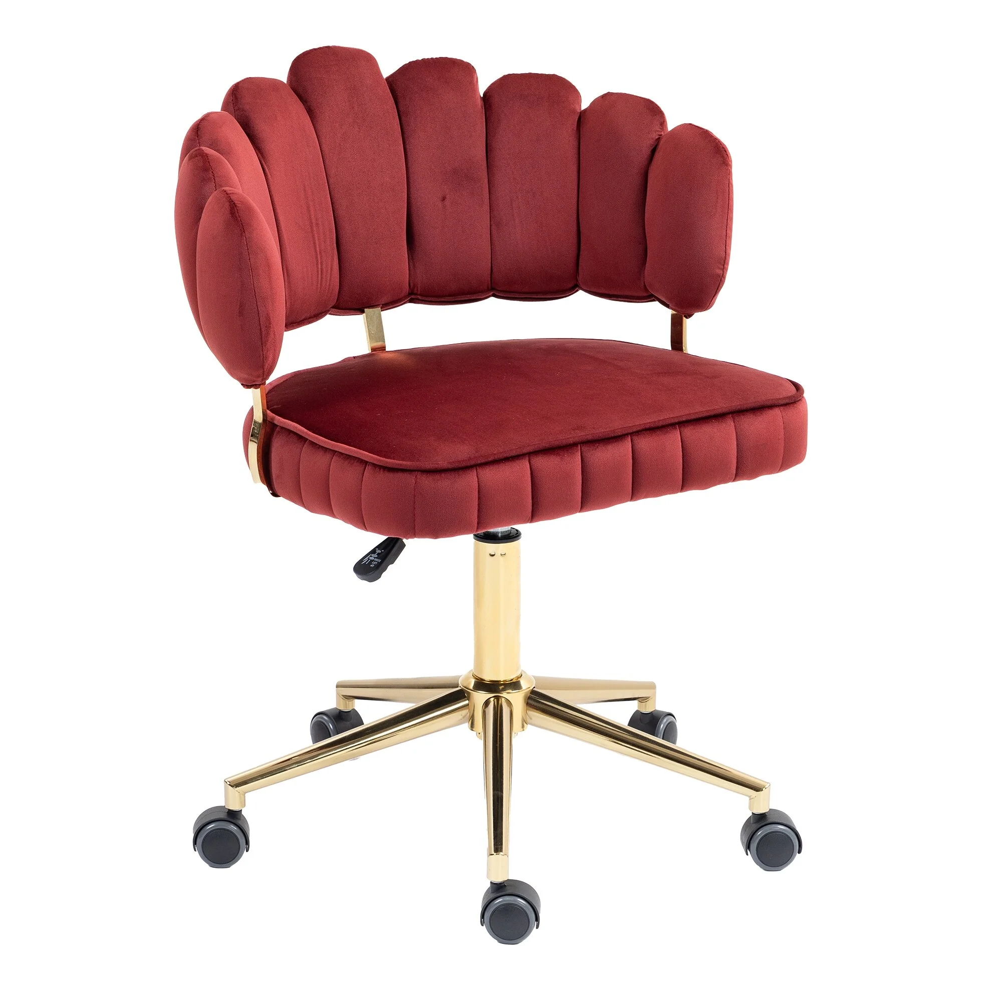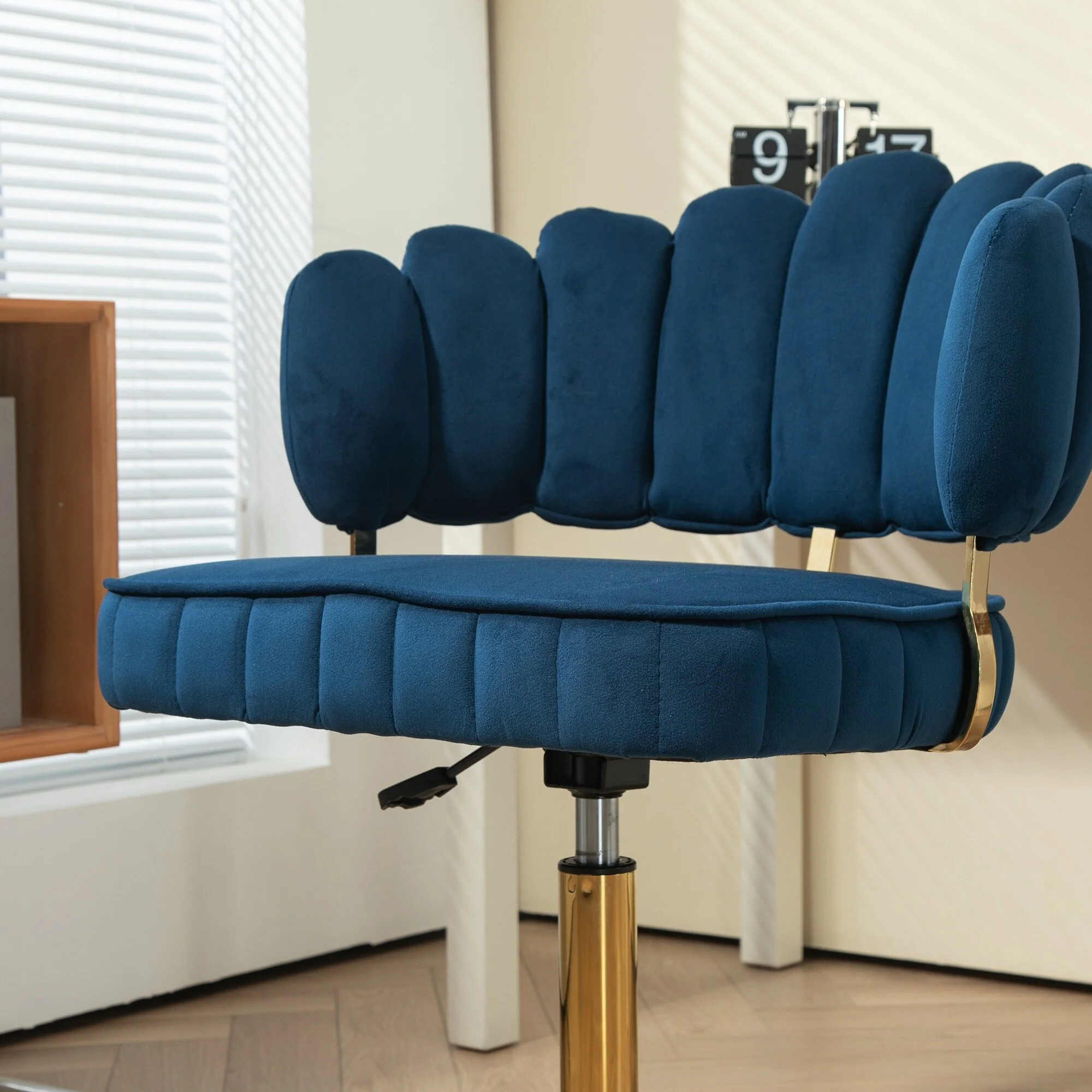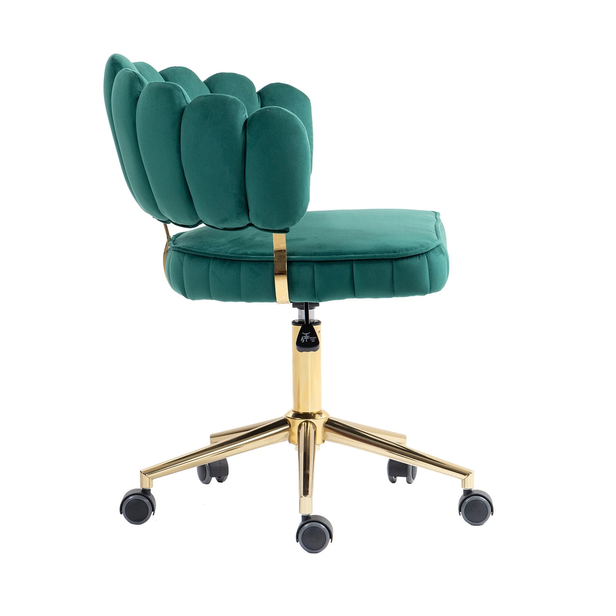 Designed with luxurious high-grade velvet fabric and a high-density foam-filled seat, this office chair offers a perfect blend of comfort and flexibility. The golden base paired with black swivel casters gives it a sophisticated mid-century modern look,making it ideal for both home and office spaces.