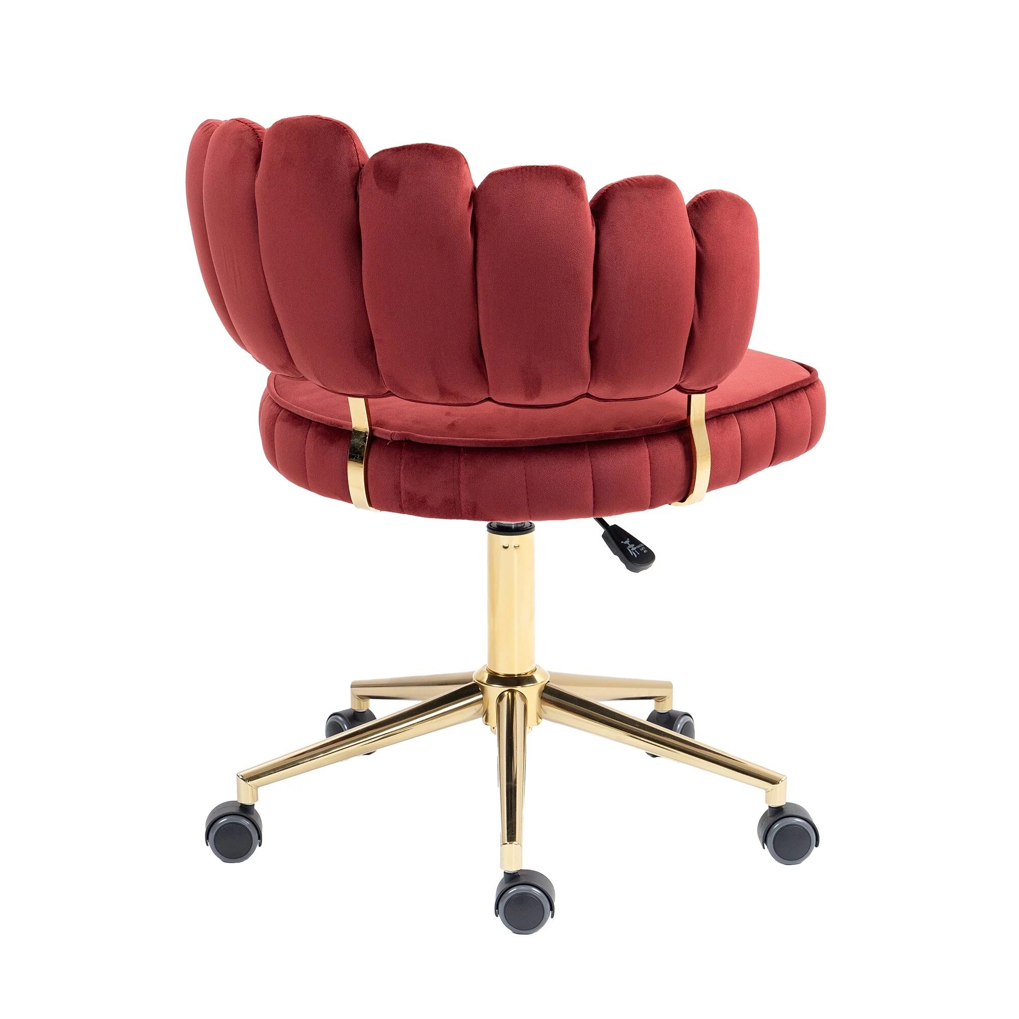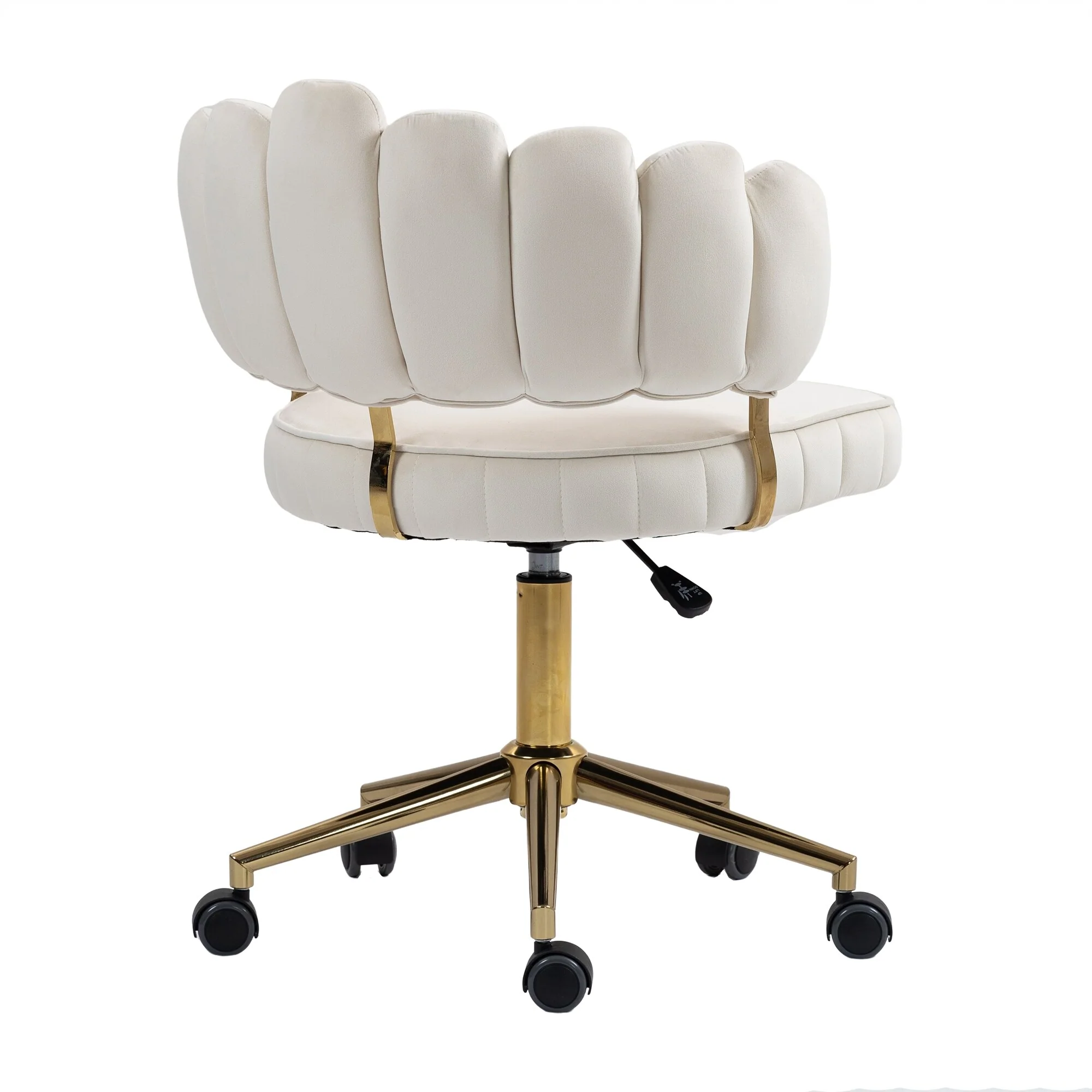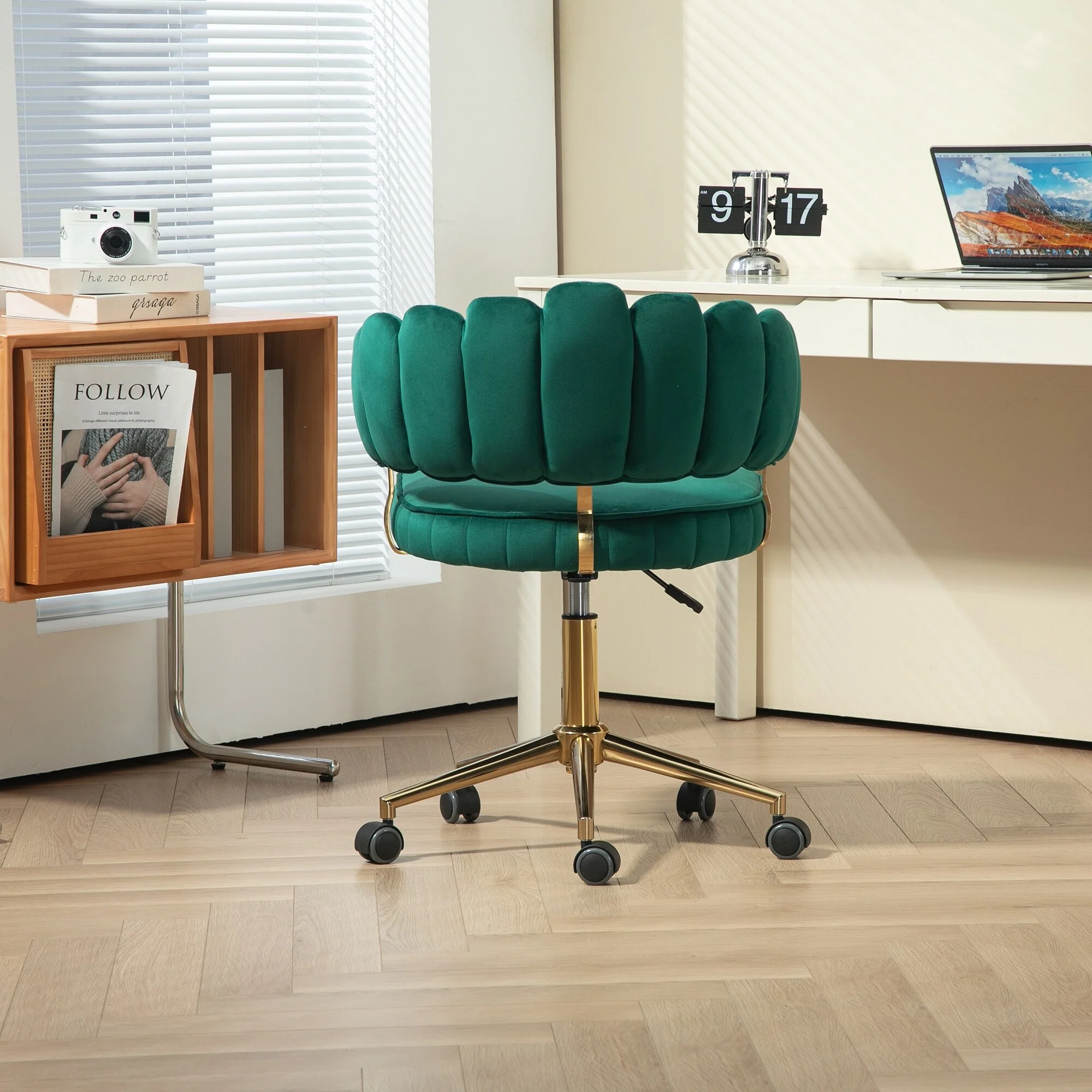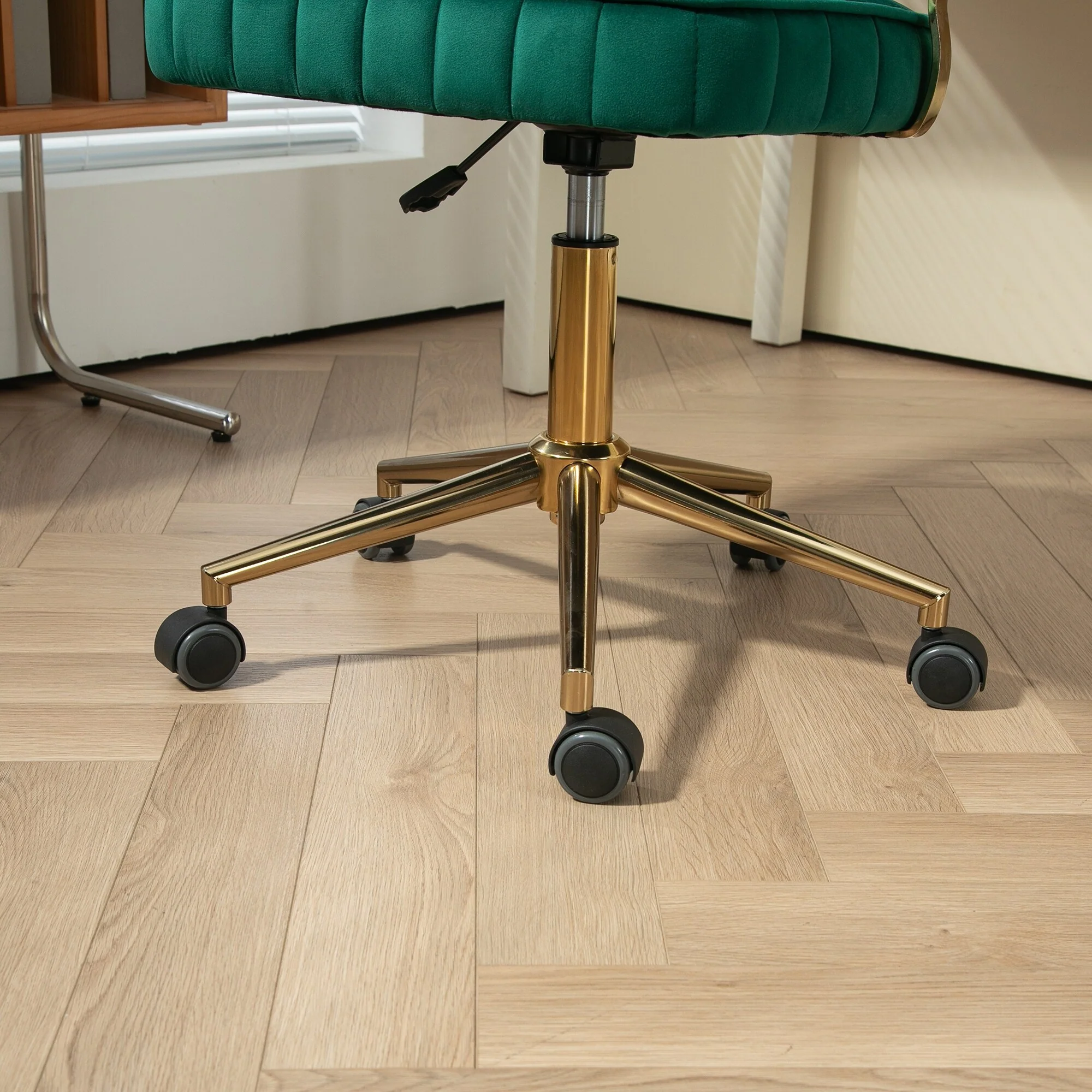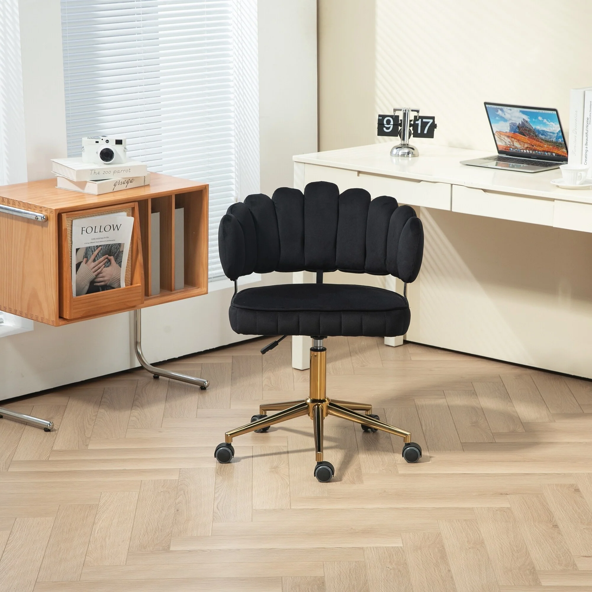 Designed with luxurious high-grade velvet fabric and a high-density foam-filled seat, this office chair offers a perfect blend of comfort and flexibility. The golden base paired with black swivel casters gives it a sophisticated mid-century modern look,making it ideal for both home and office spaces.