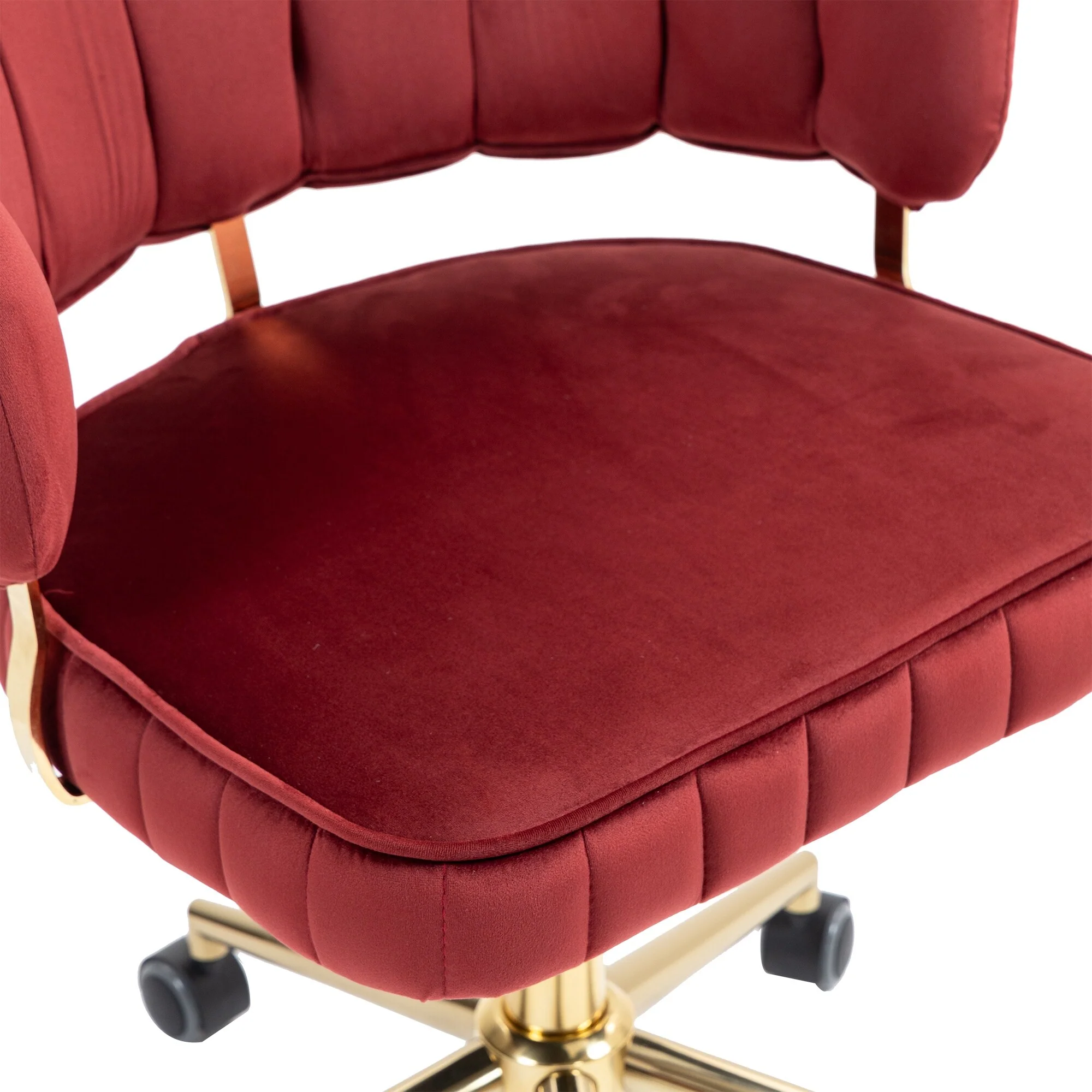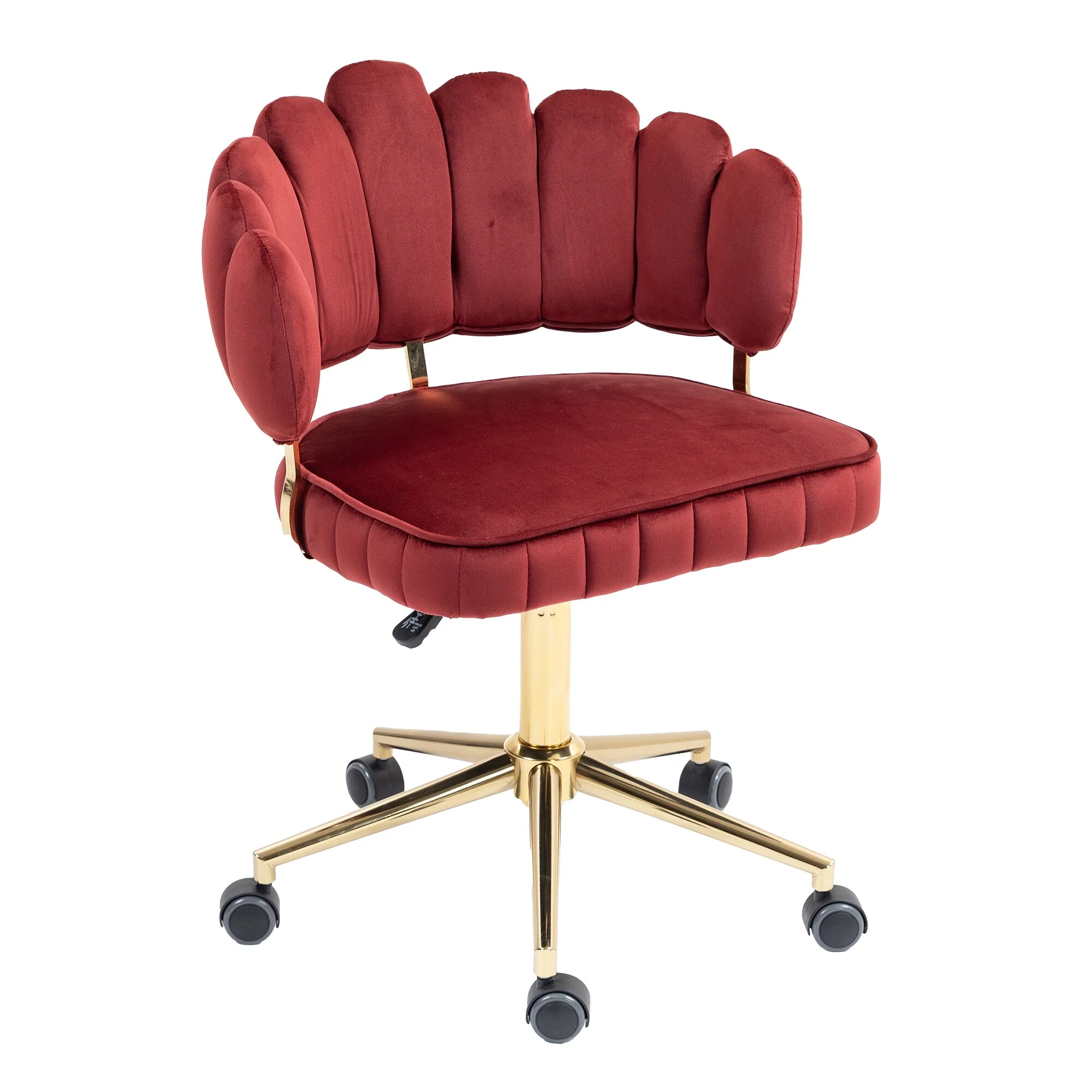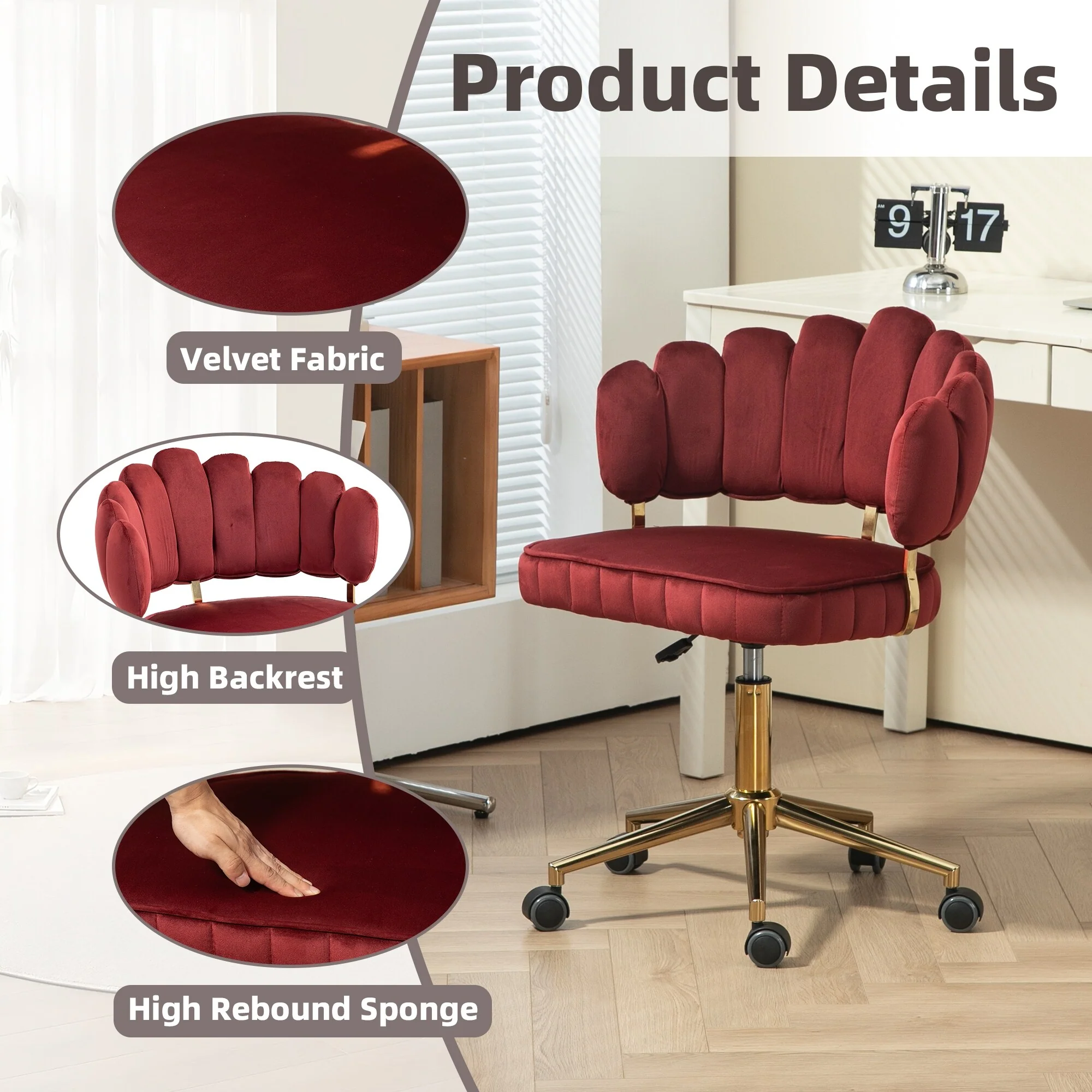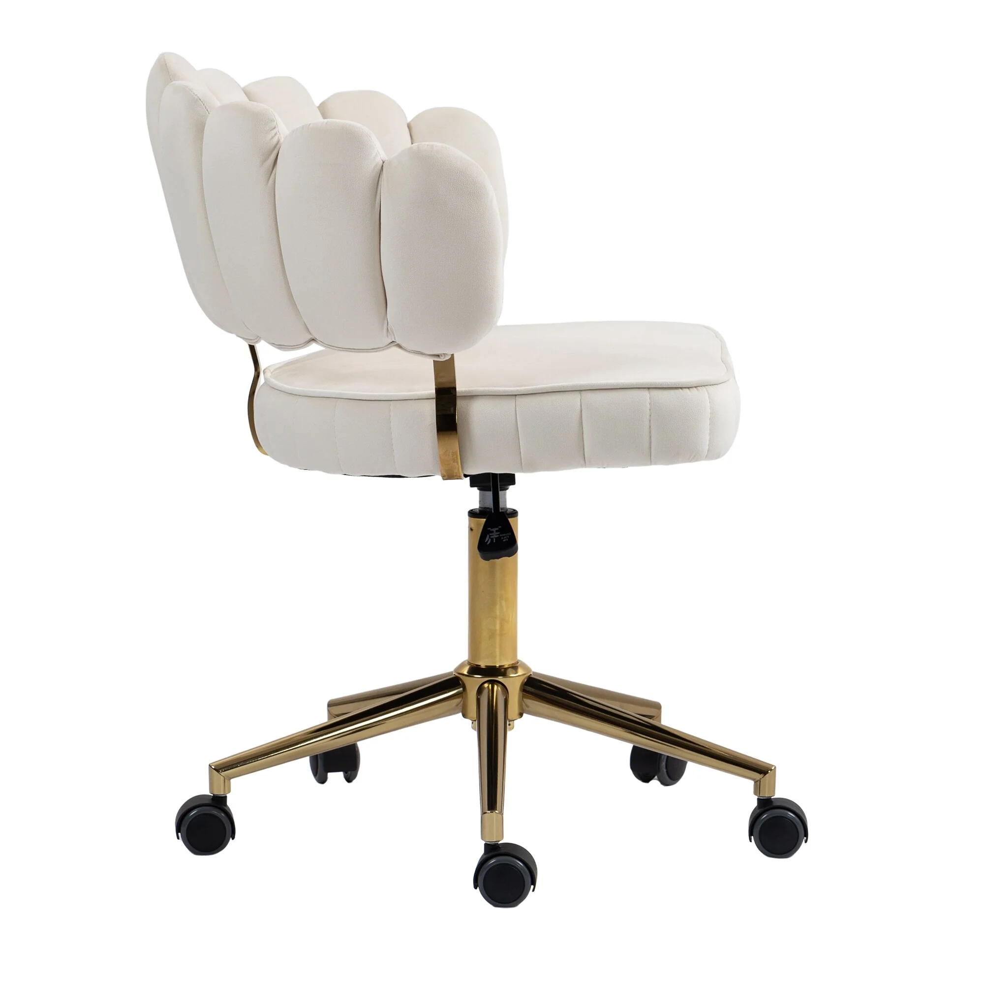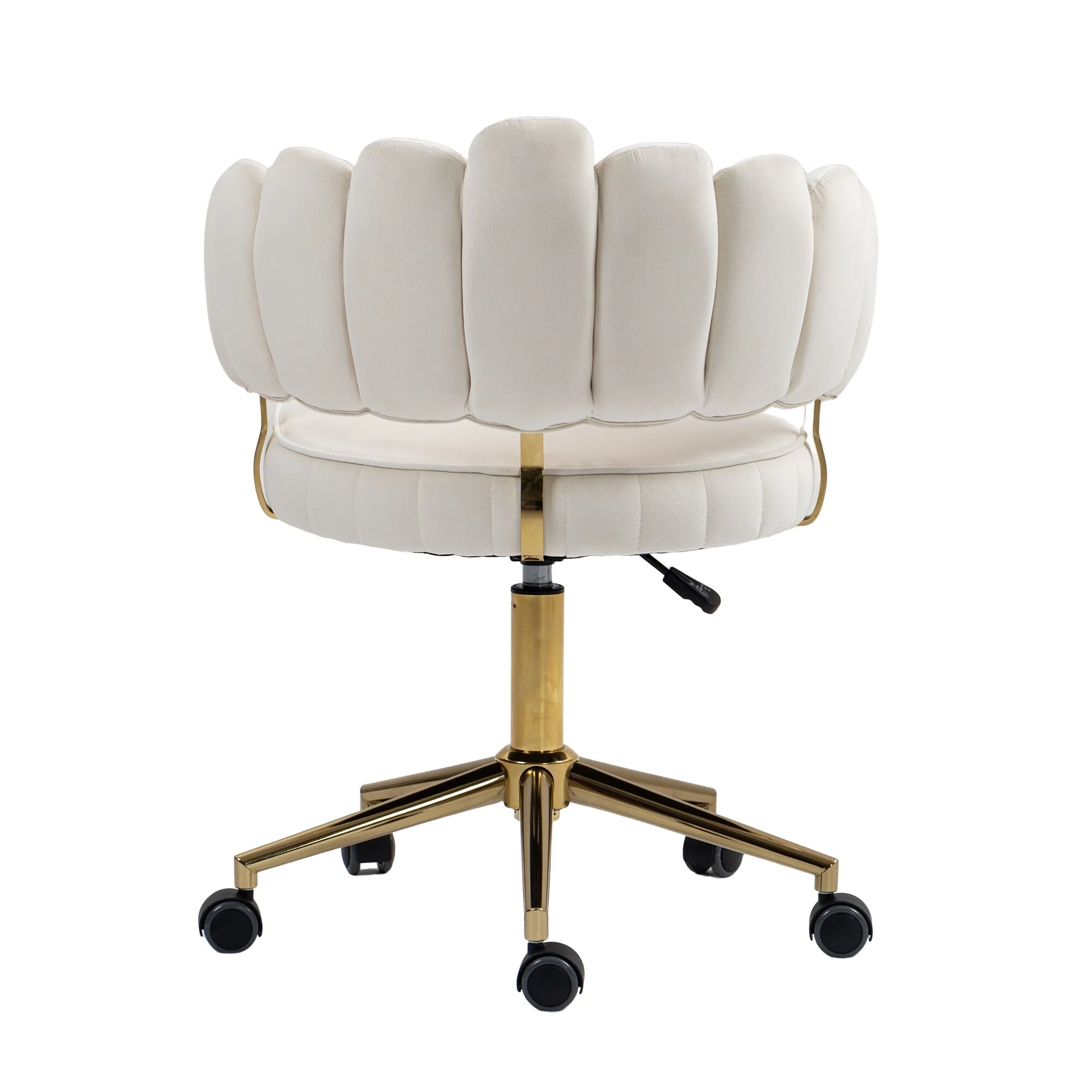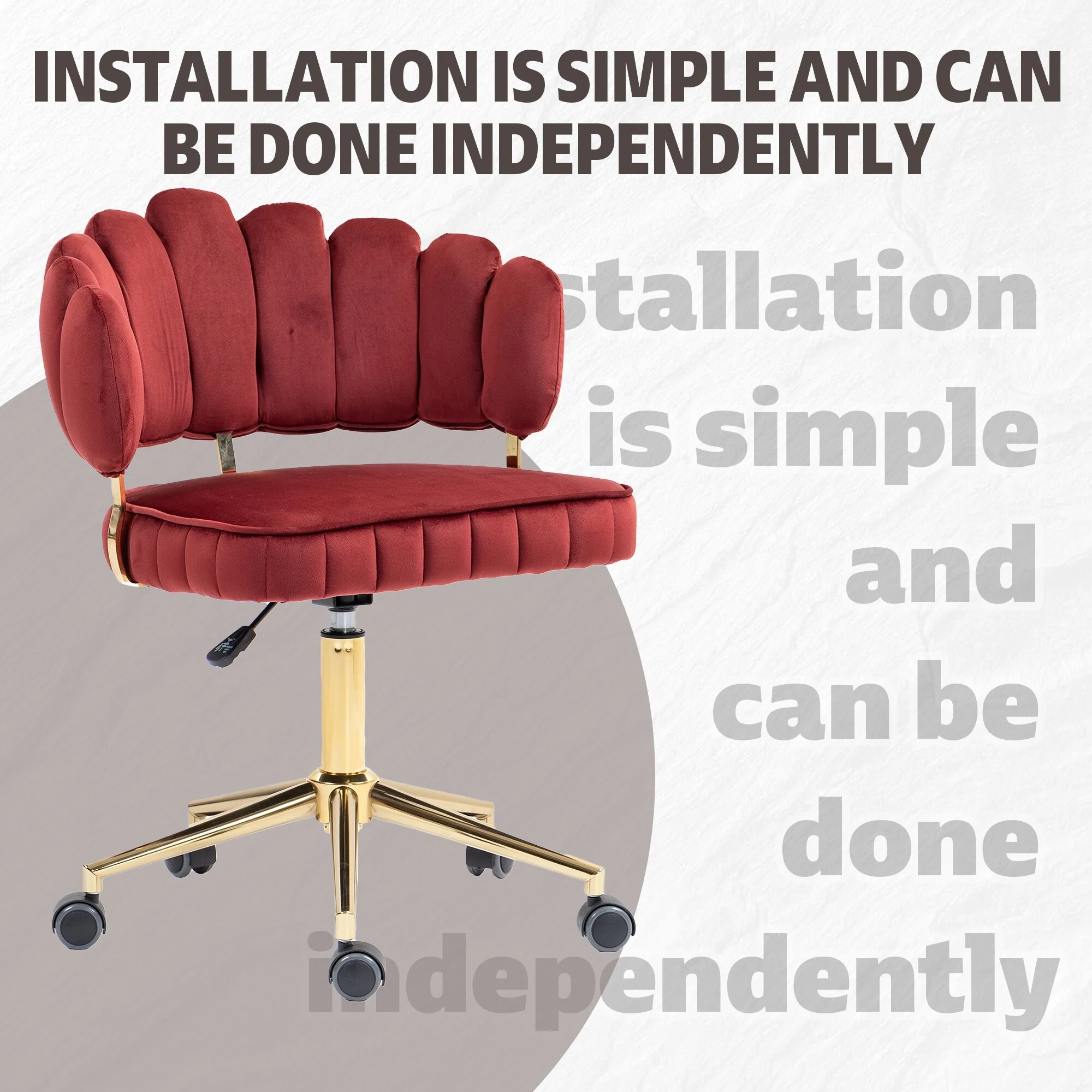 Designed with luxurious high-grade velvet fabric and a high-density foam-filled seat, this office chair offers a perfect blend of comfort and flexibility. The golden base paired with black swivel casters gives it a sophisticated mid-century modern look,making it ideal for both home and office spaces.