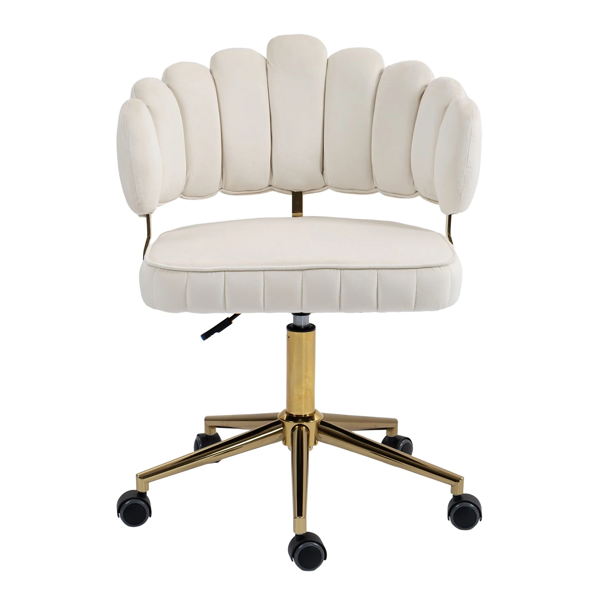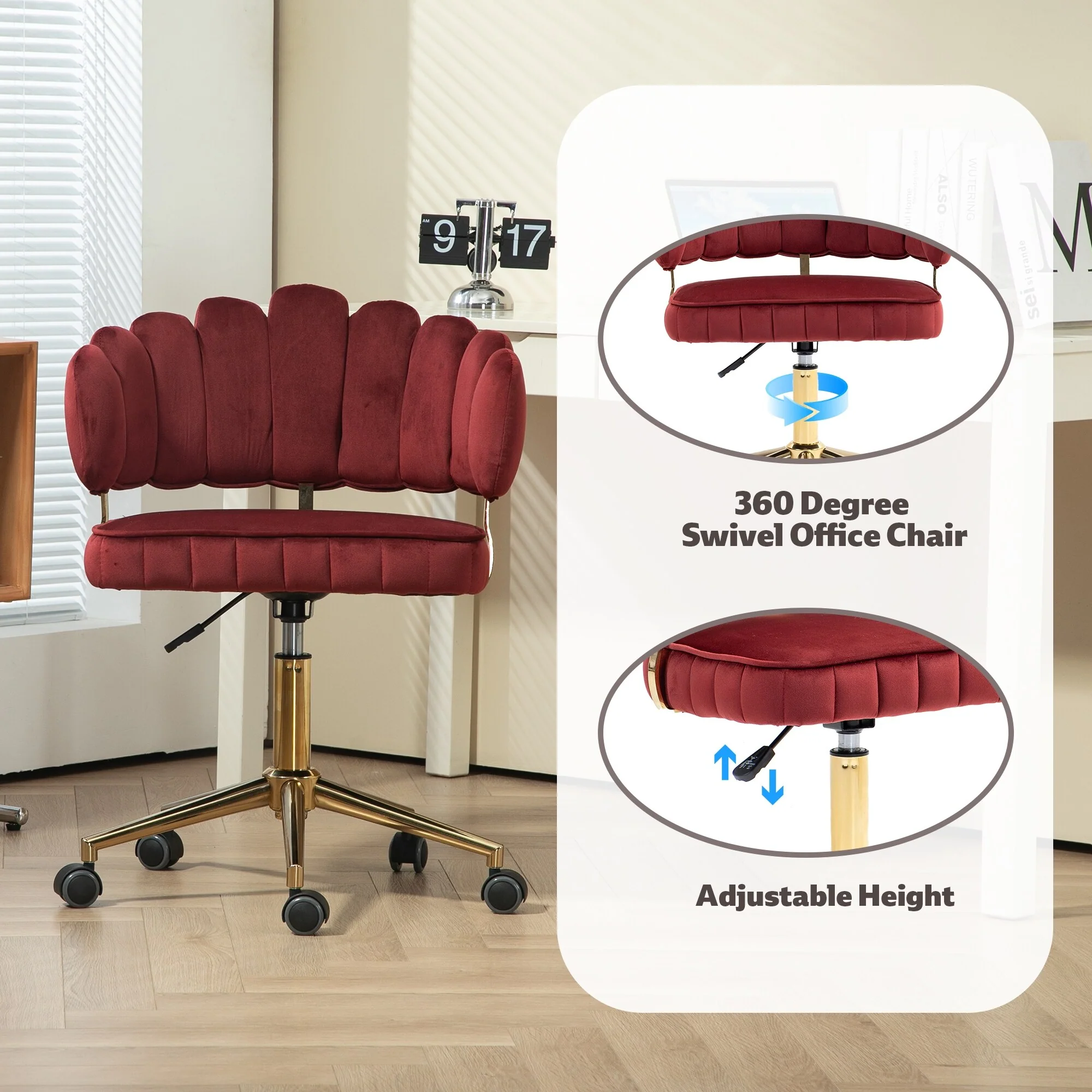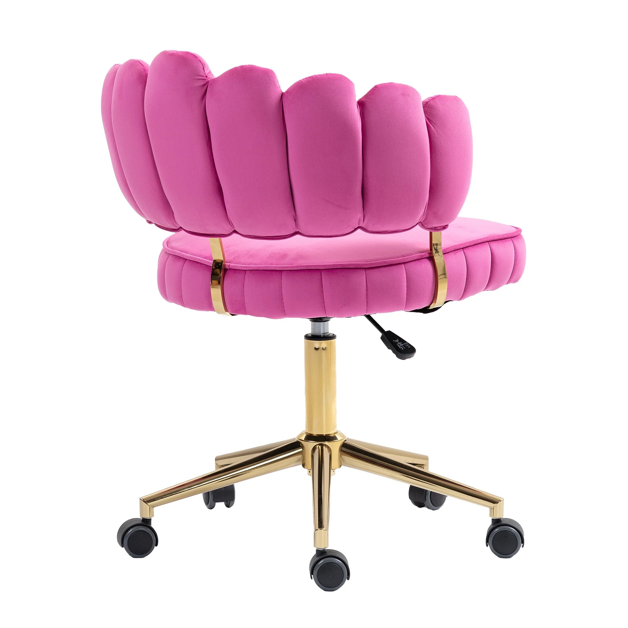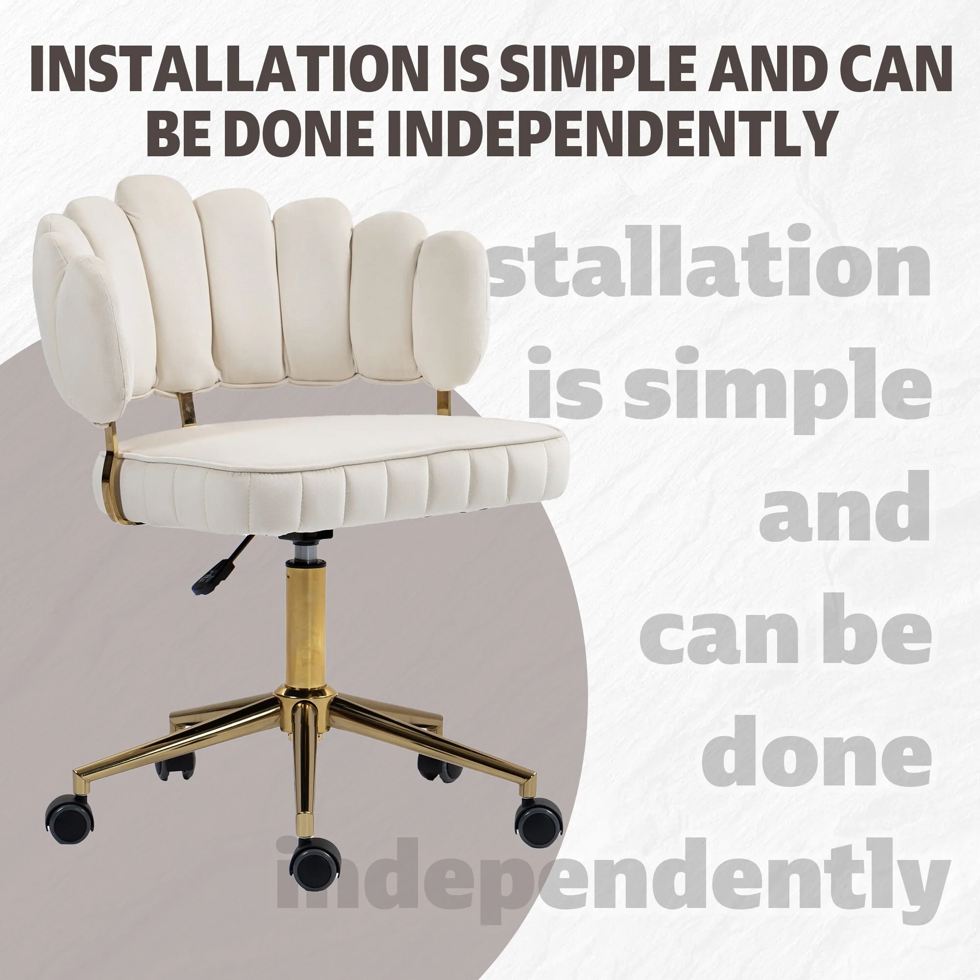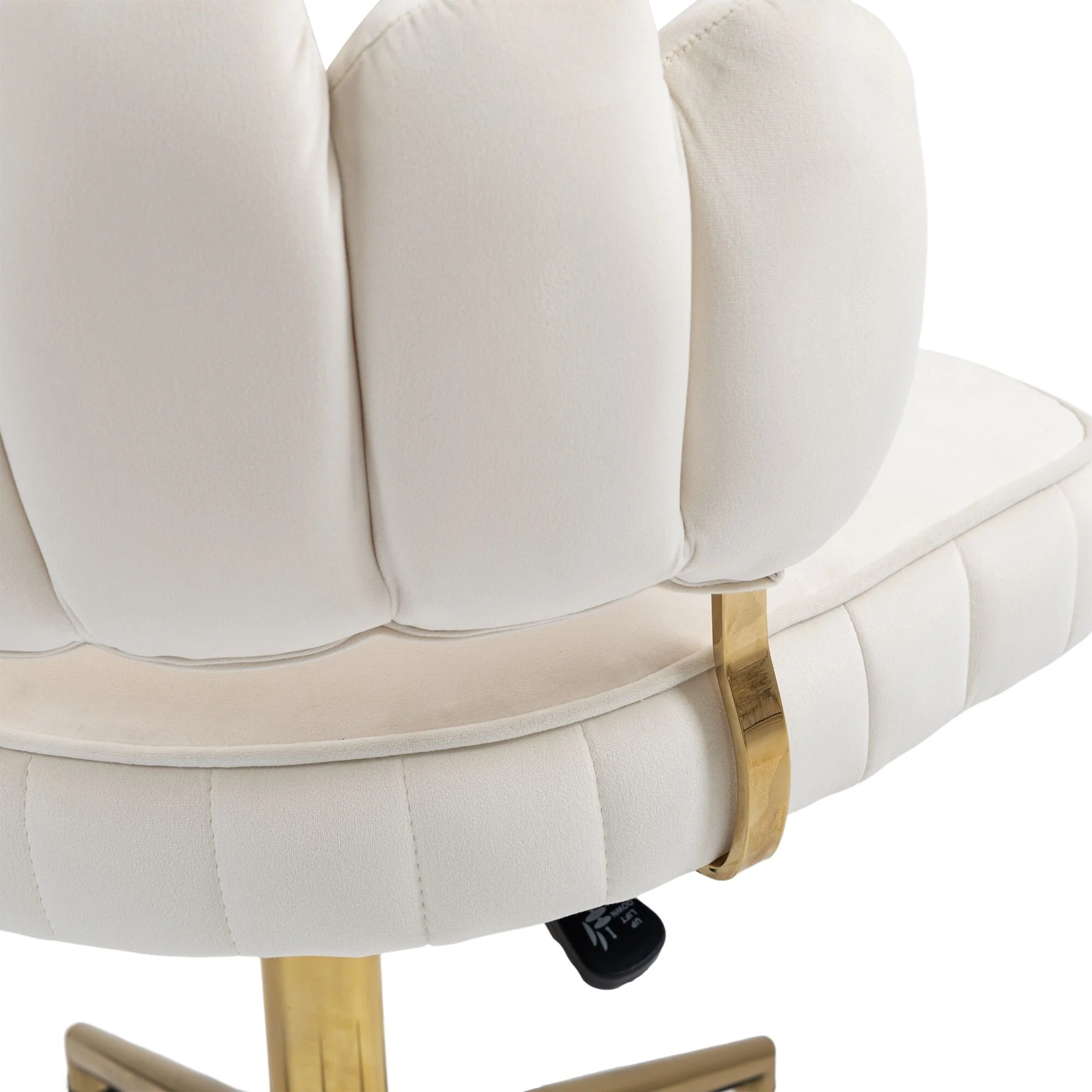 Designed with luxurious high-grade velvet fabric and a high-density foam-filled seat, this office chair offers a perfect blend of comfort and flexibility. The golden base paired with black swivel casters gives it a sophisticated mid-century modern look,making it ideal for both home and office spaces.