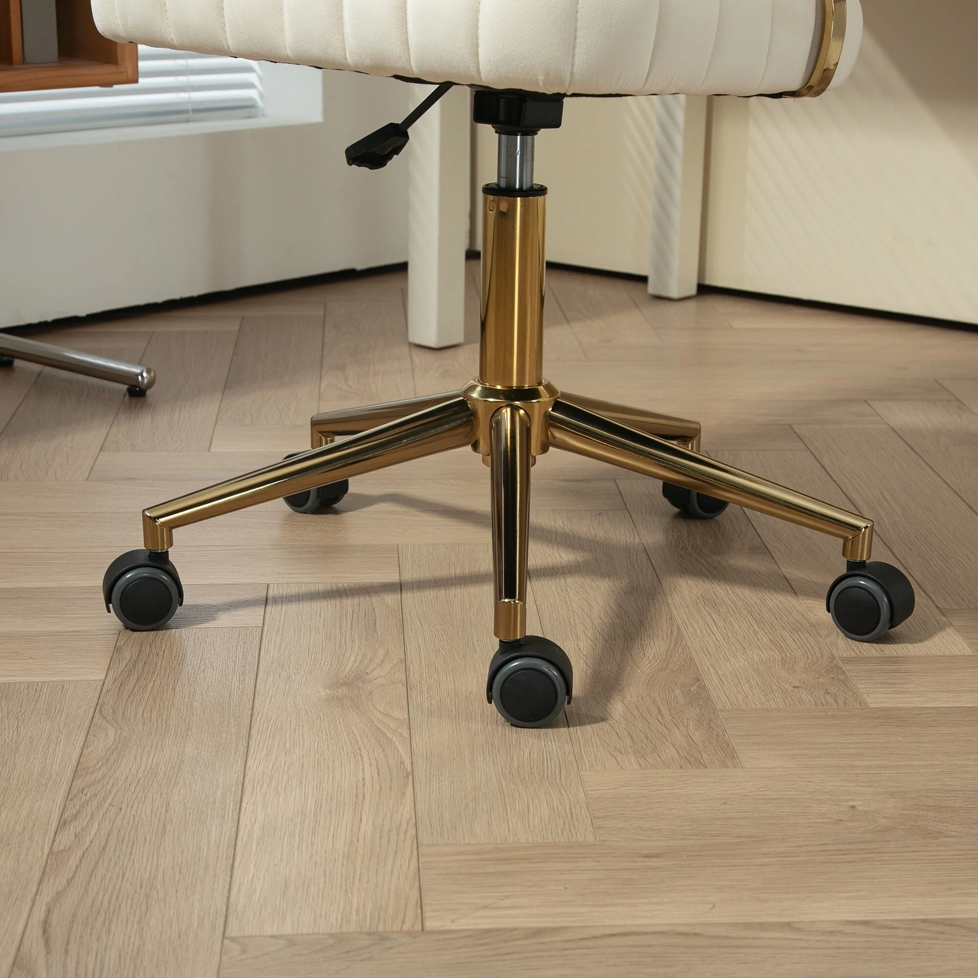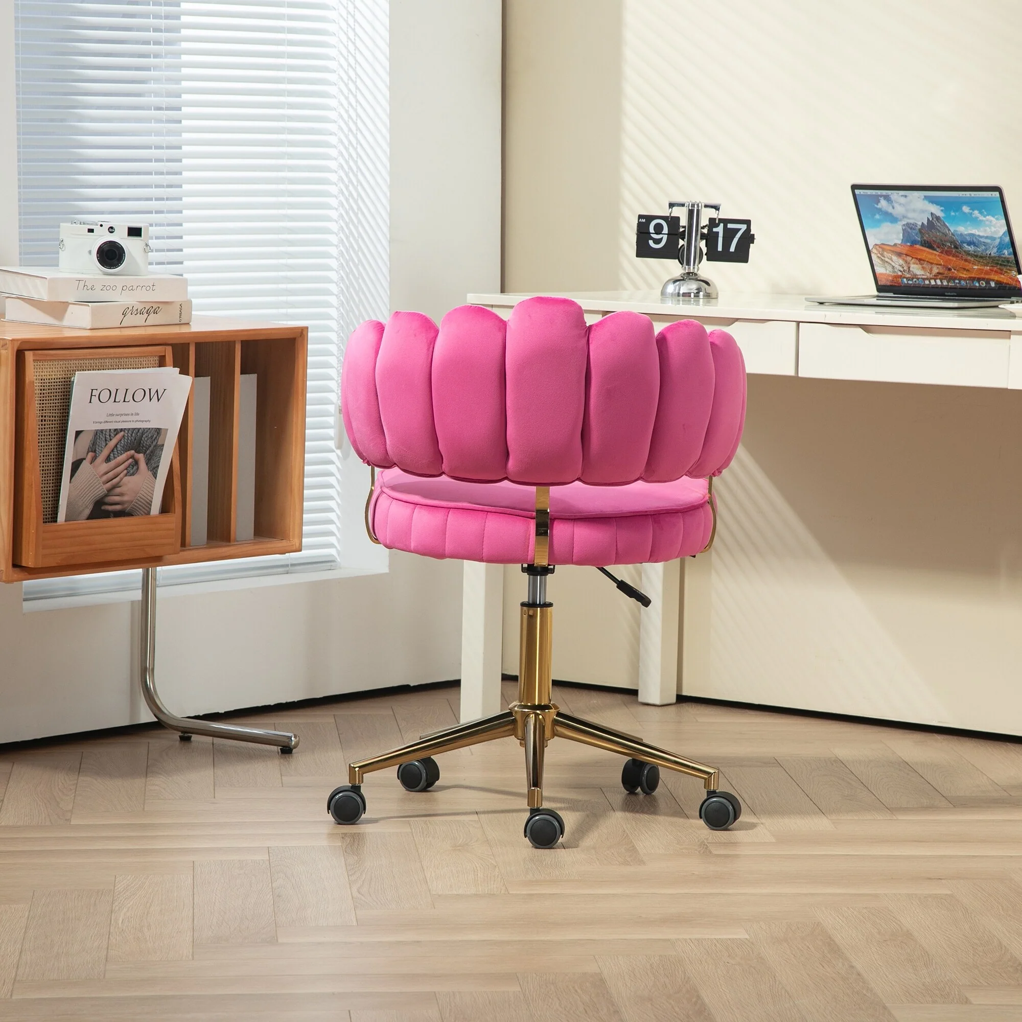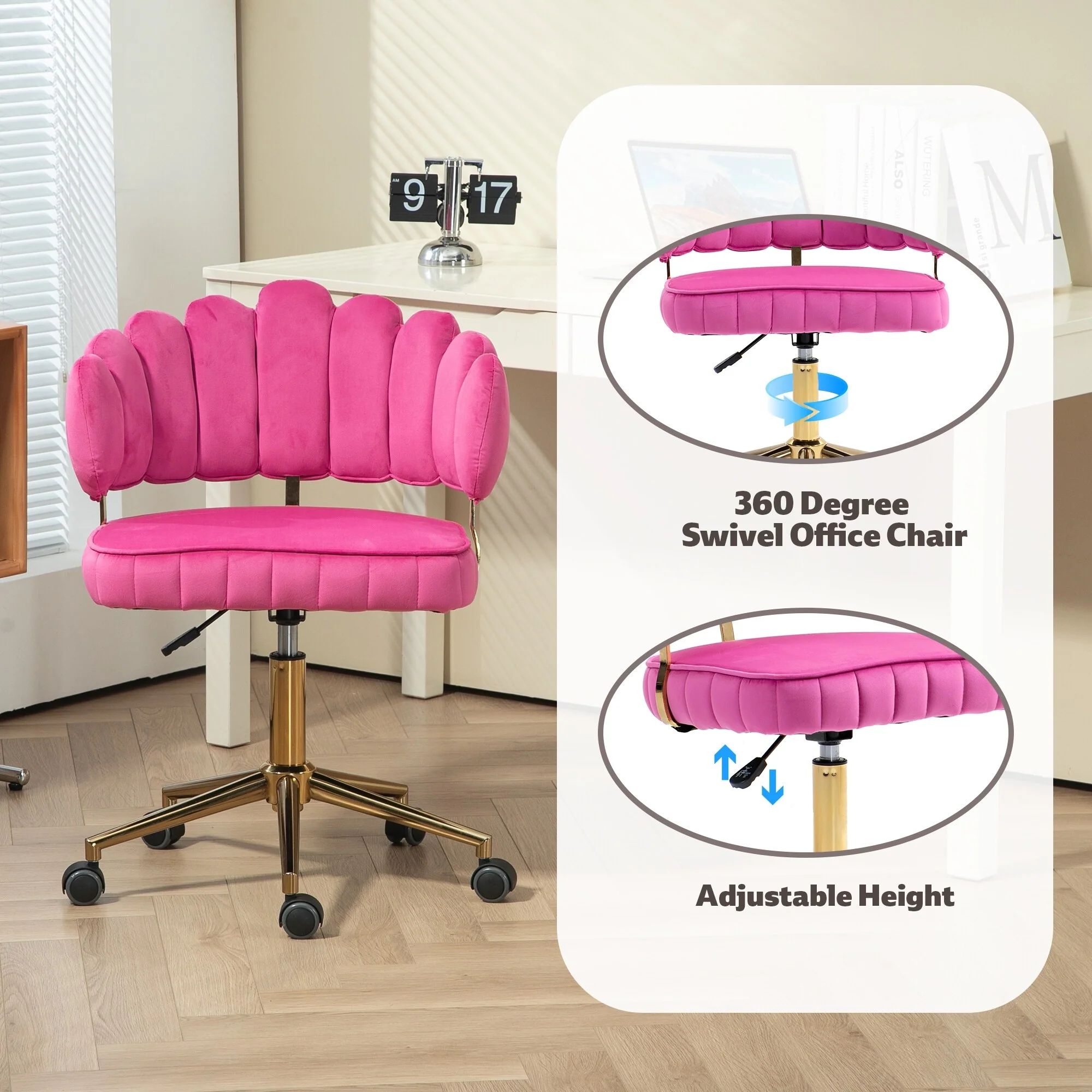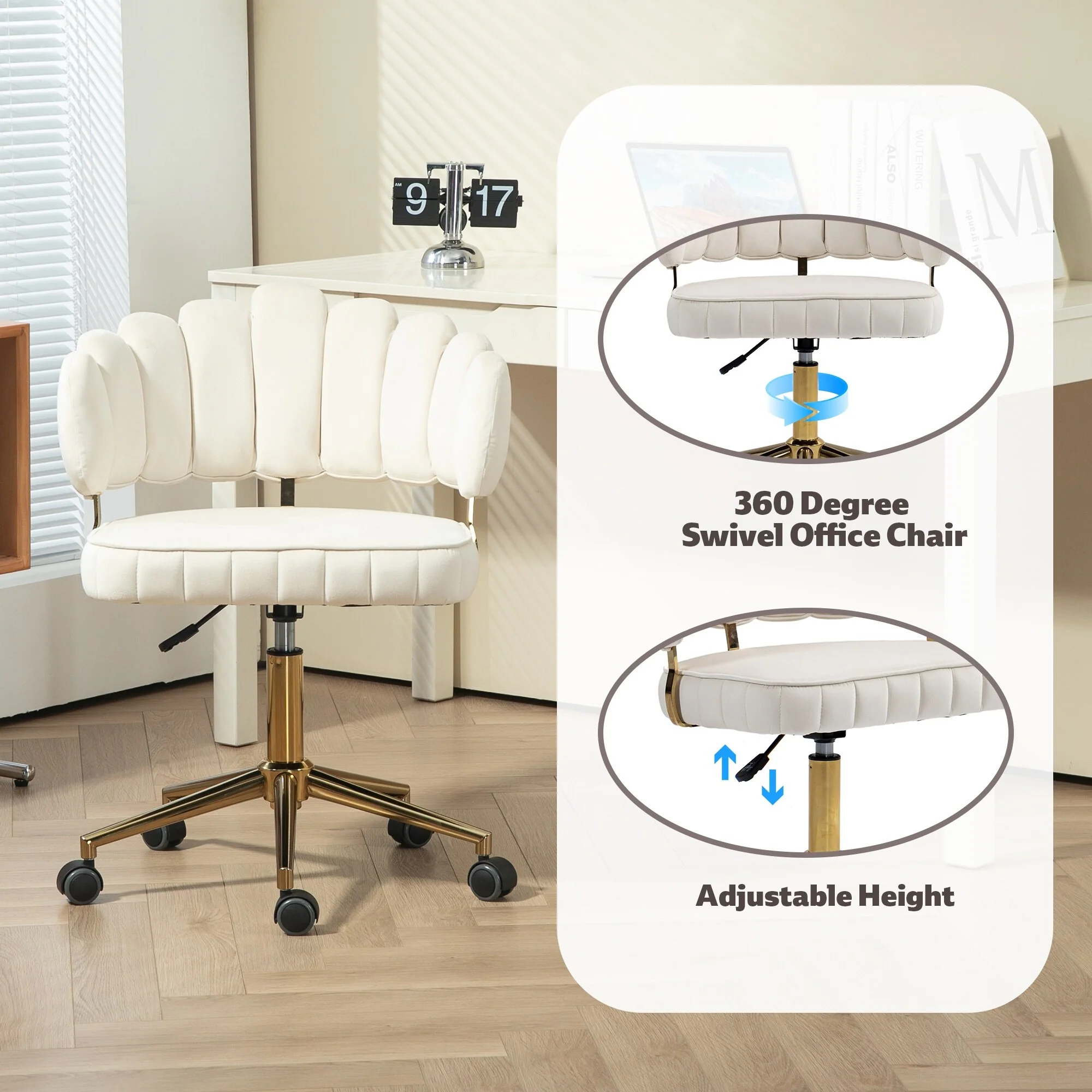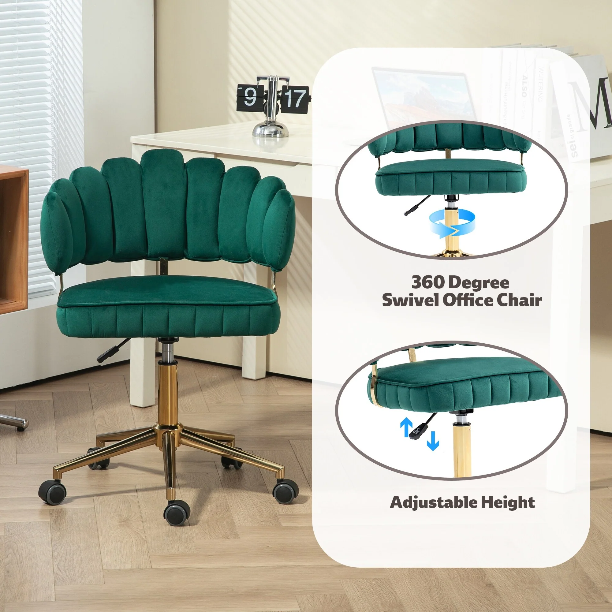 Designed with luxurious high-grade velvet fabric and a high-density foam-filled seat, this office chair offers a perfect blend of comfort and flexibility. The golden base paired with black swivel casters gives it a sophisticated mid-century modern look,making it ideal for both home and office spaces.