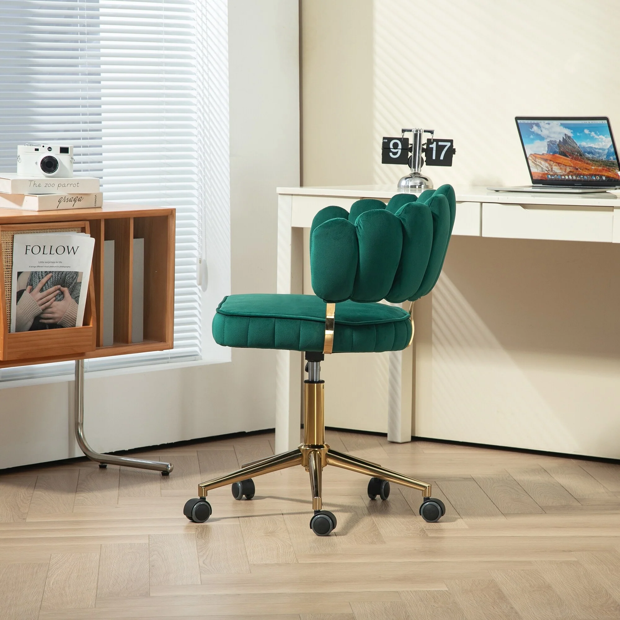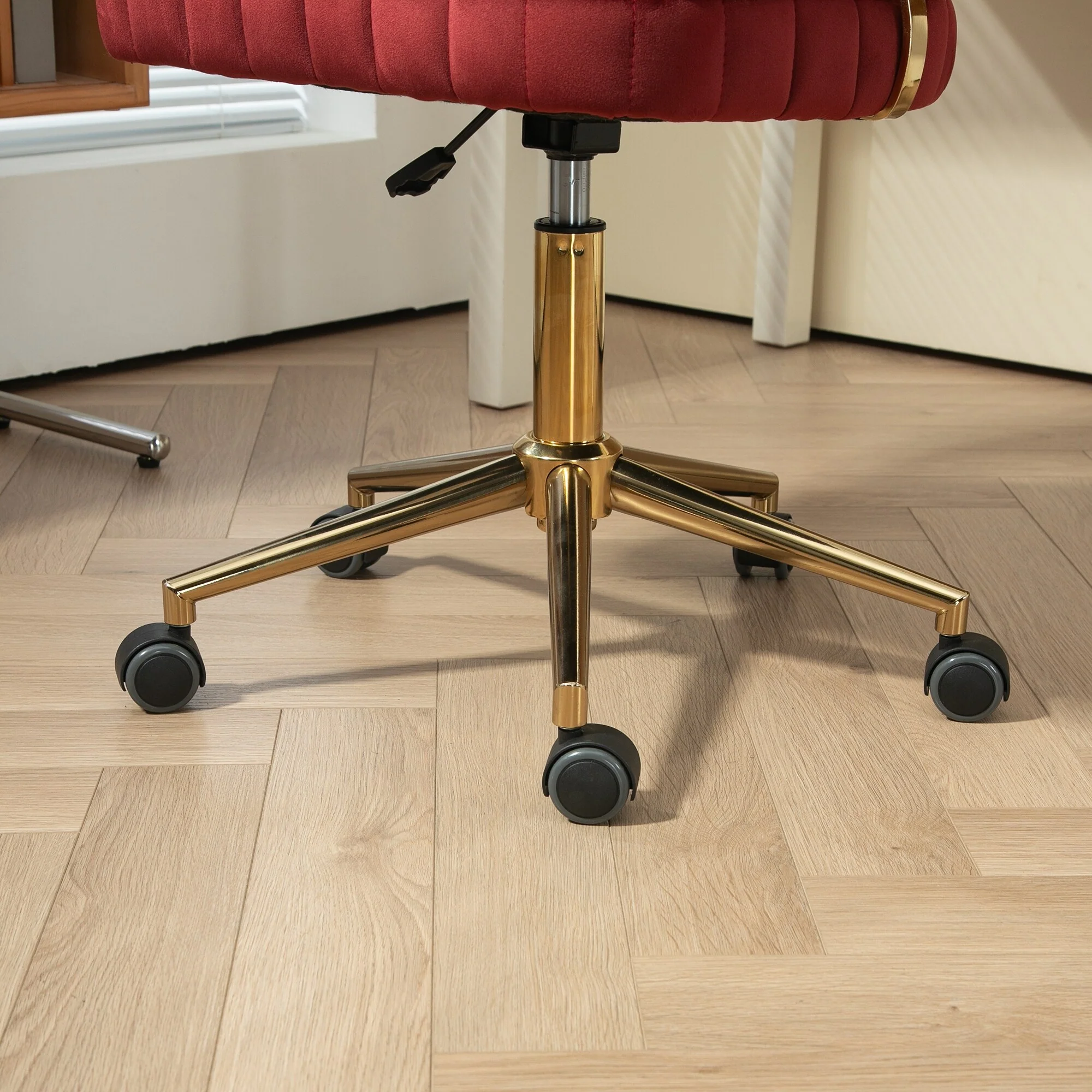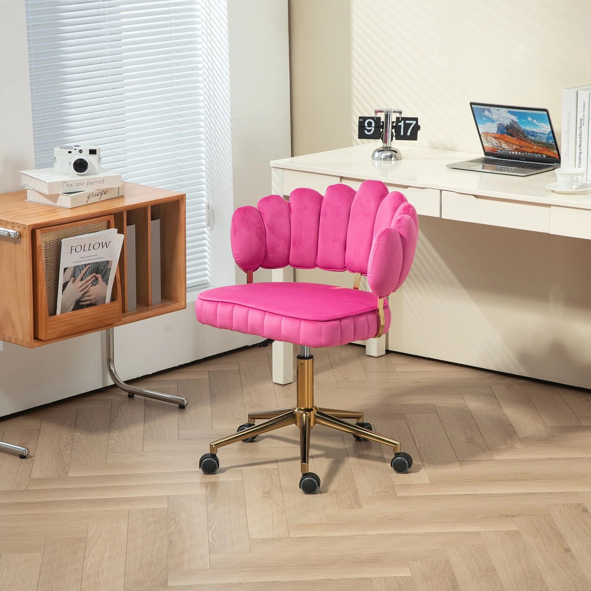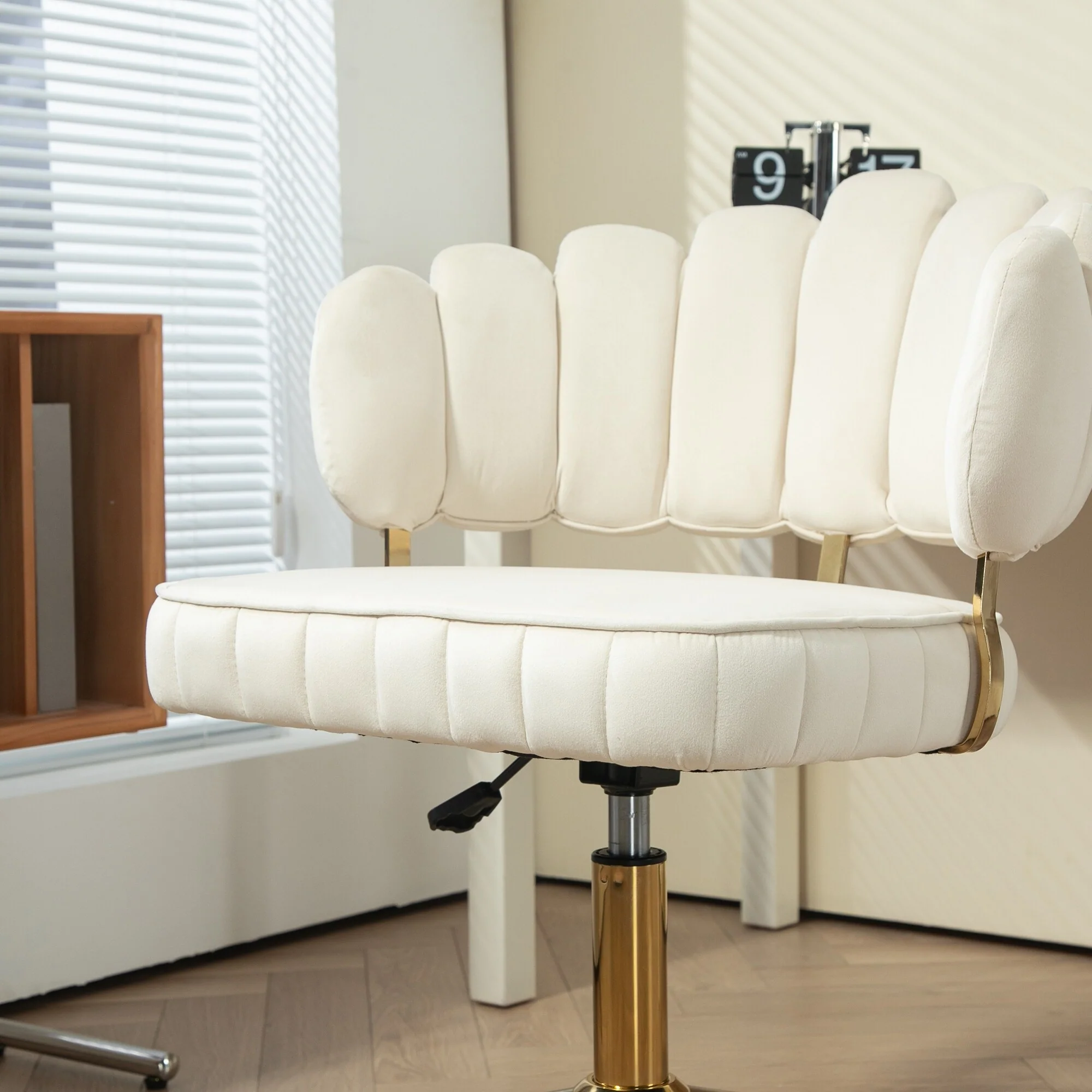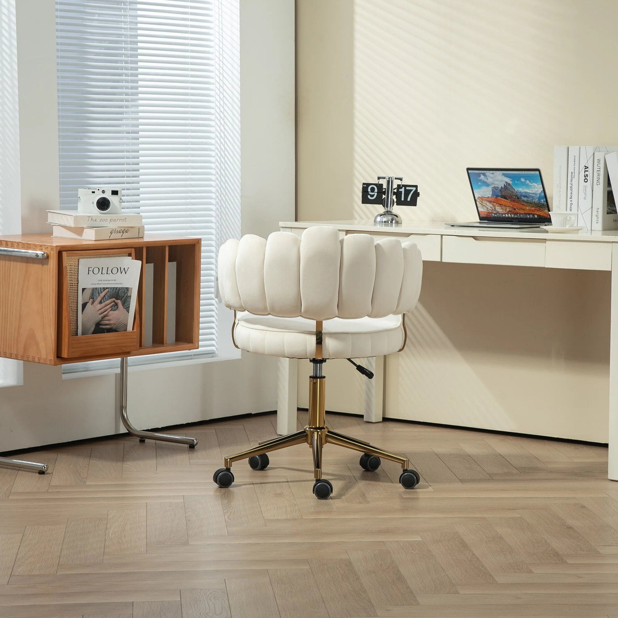 Designed with luxurious high-grade velvet fabric and a high-density foam-filled seat, this office chair offers a perfect blend of comfort and flexibility. The golden base paired with black swivel casters gives it a sophisticated mid-century modern look,making it ideal for both home and office spaces.