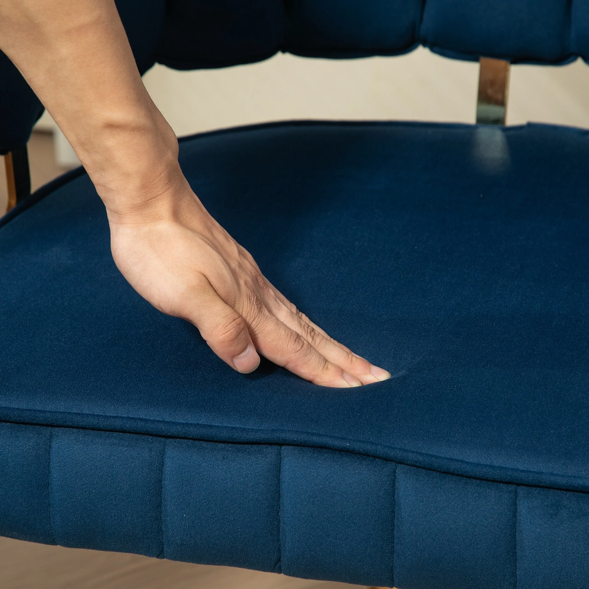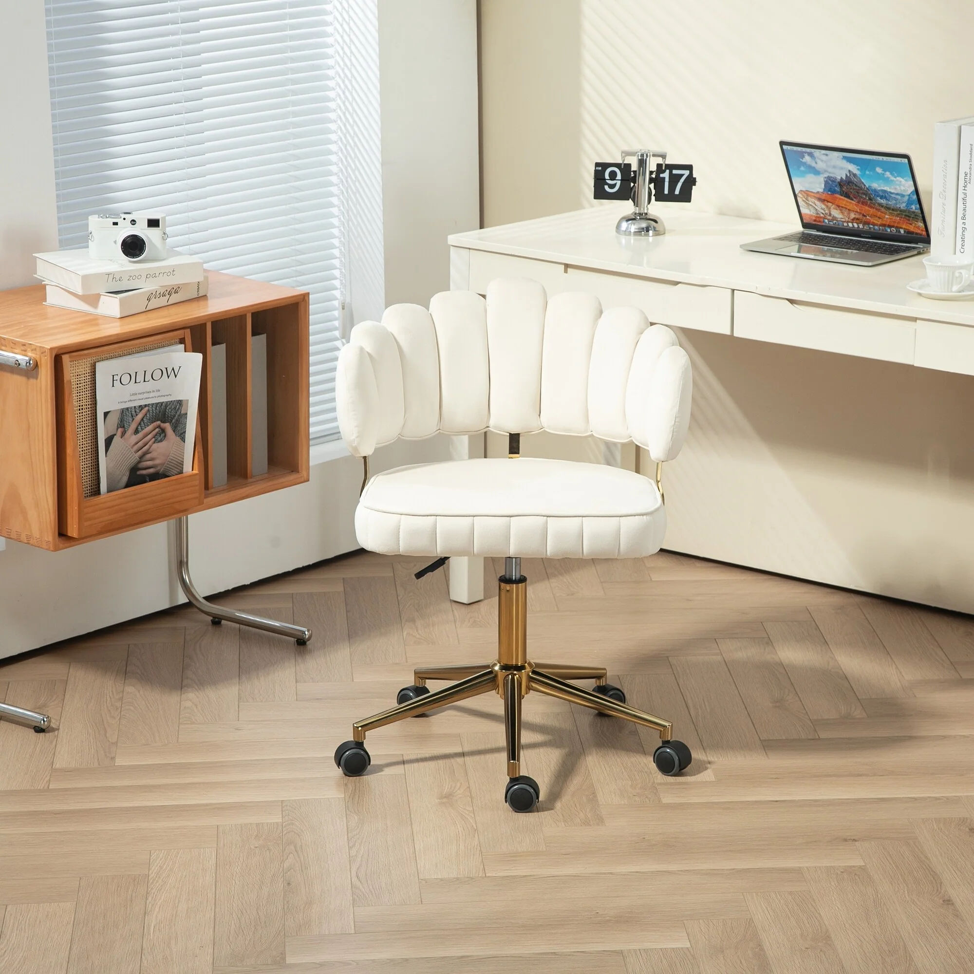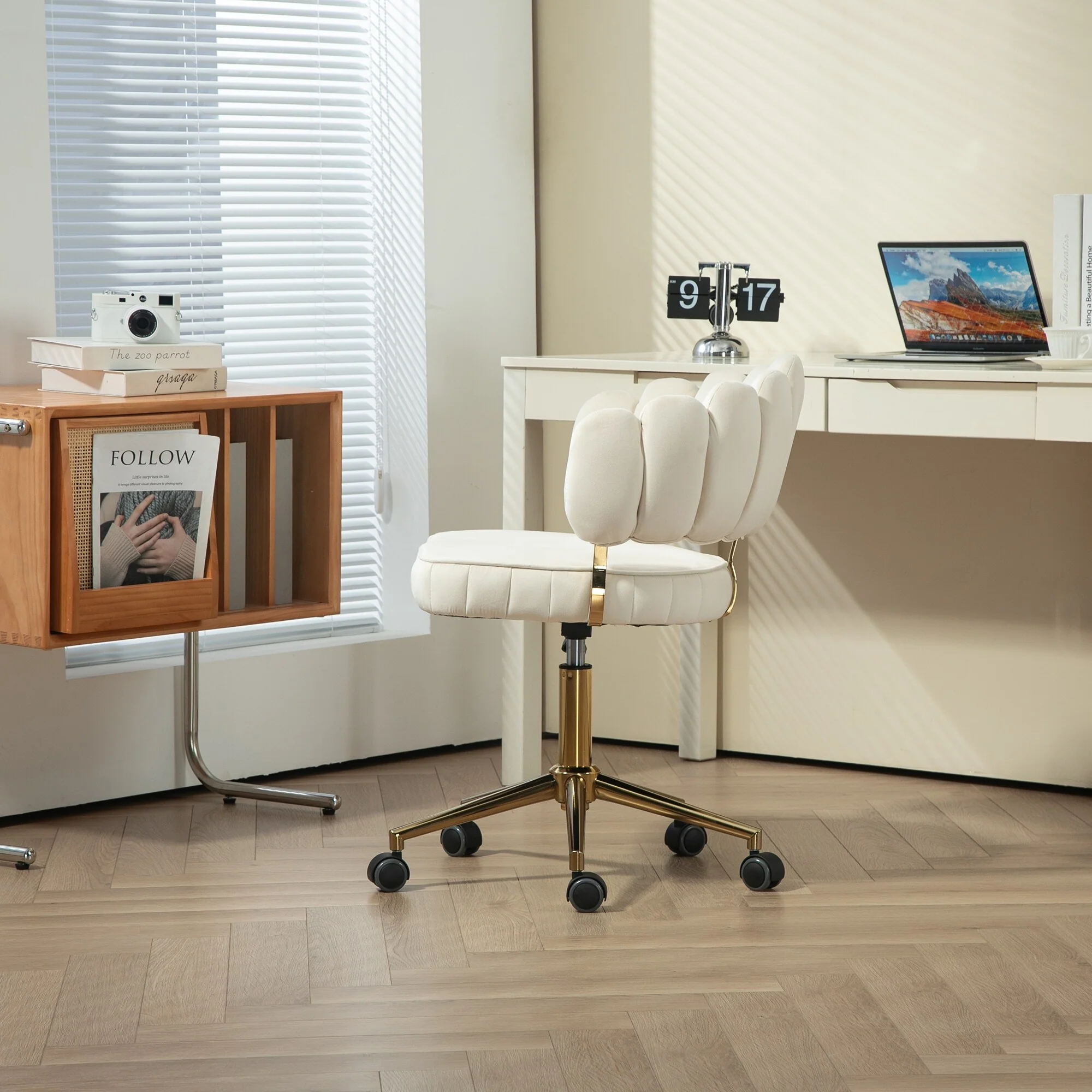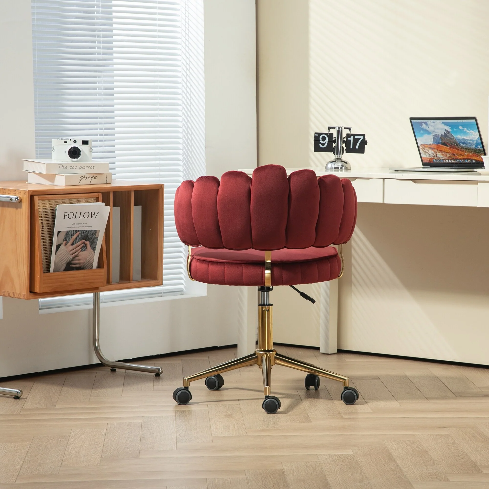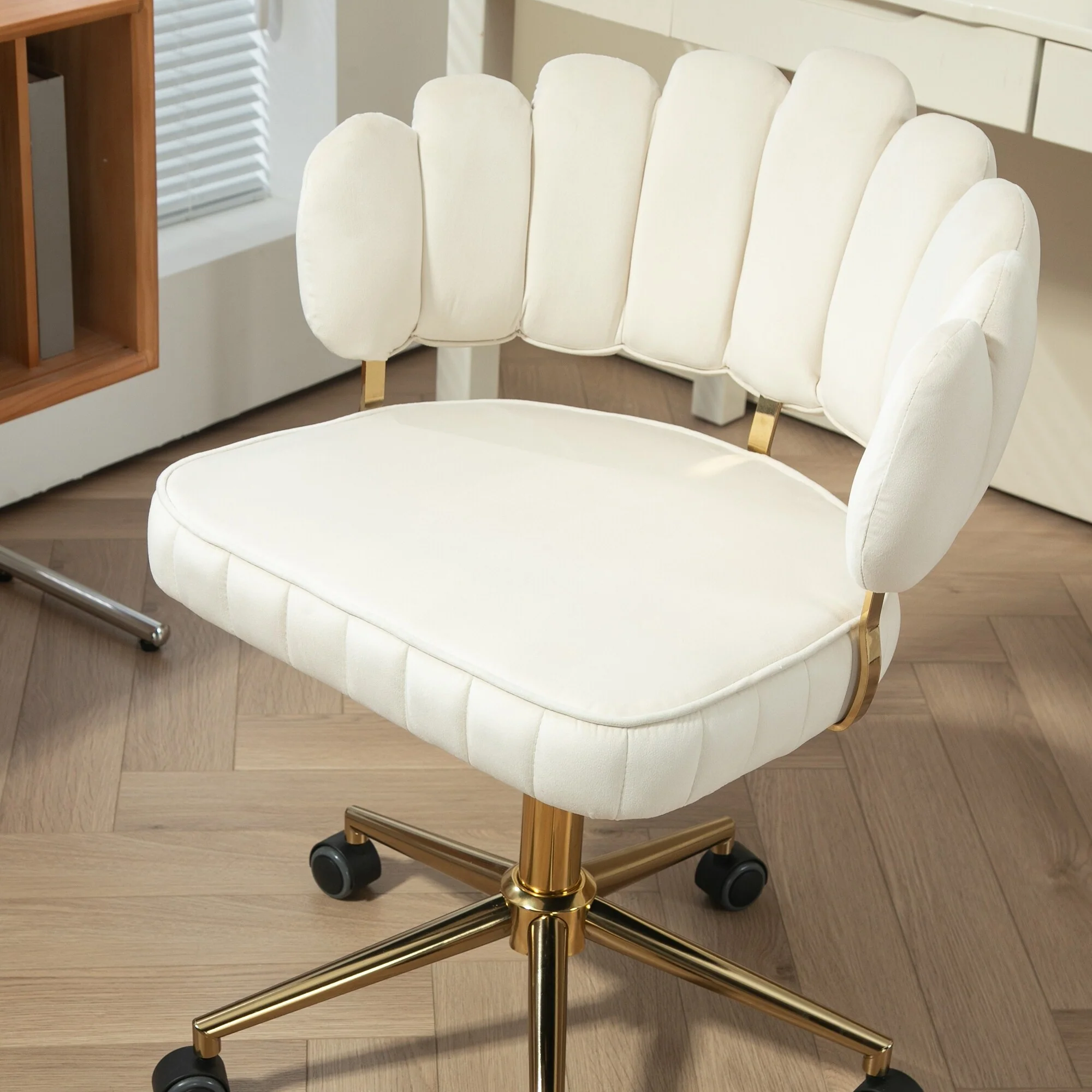 Designed with luxurious high-grade velvet fabric and a high-density foam-filled seat, this office chair offers a perfect blend of comfort and flexibility. The golden base paired with black swivel casters gives it a sophisticated mid-century modern look,making it ideal for both home and office spaces.