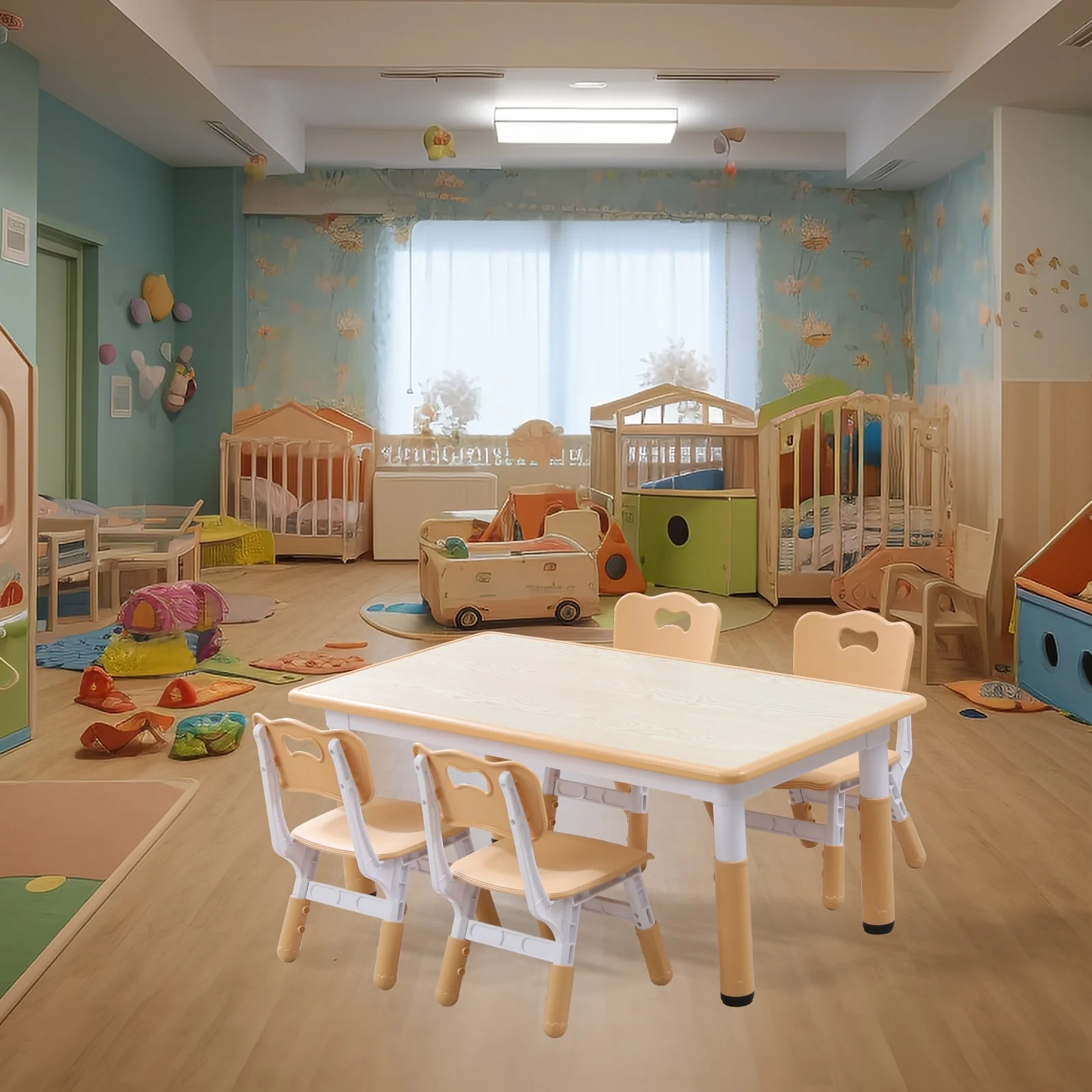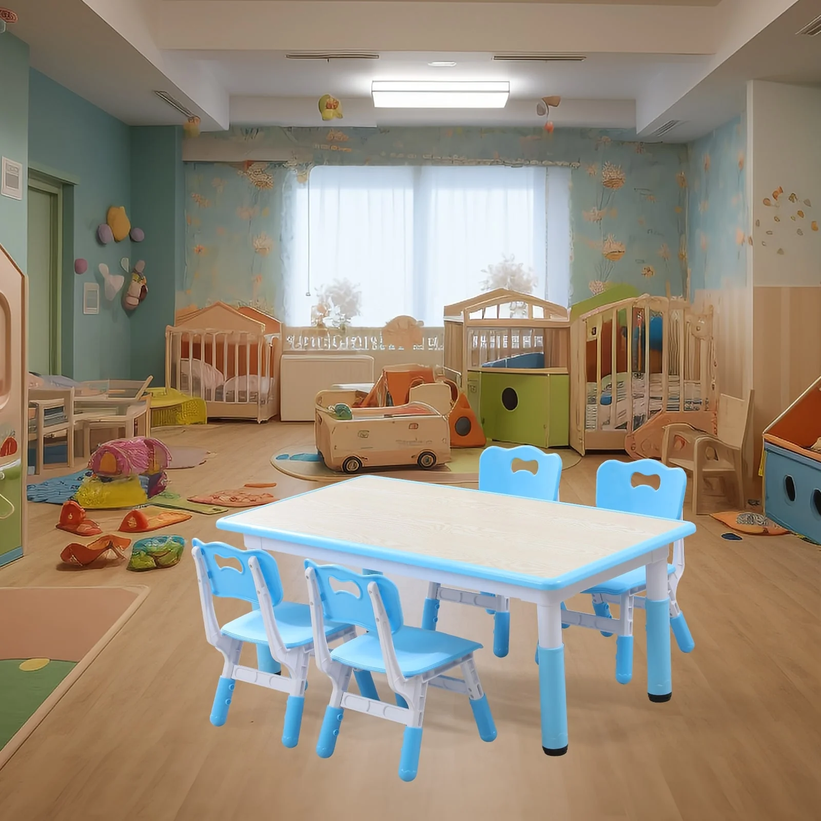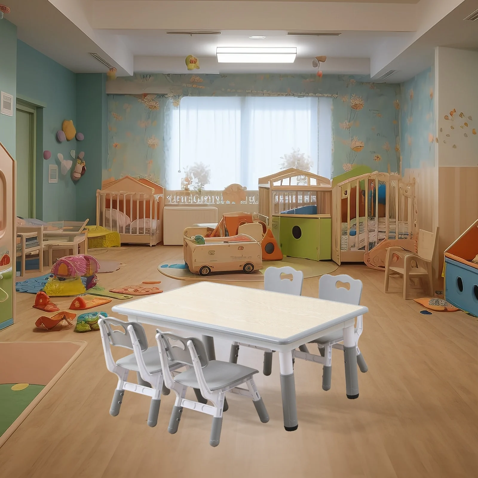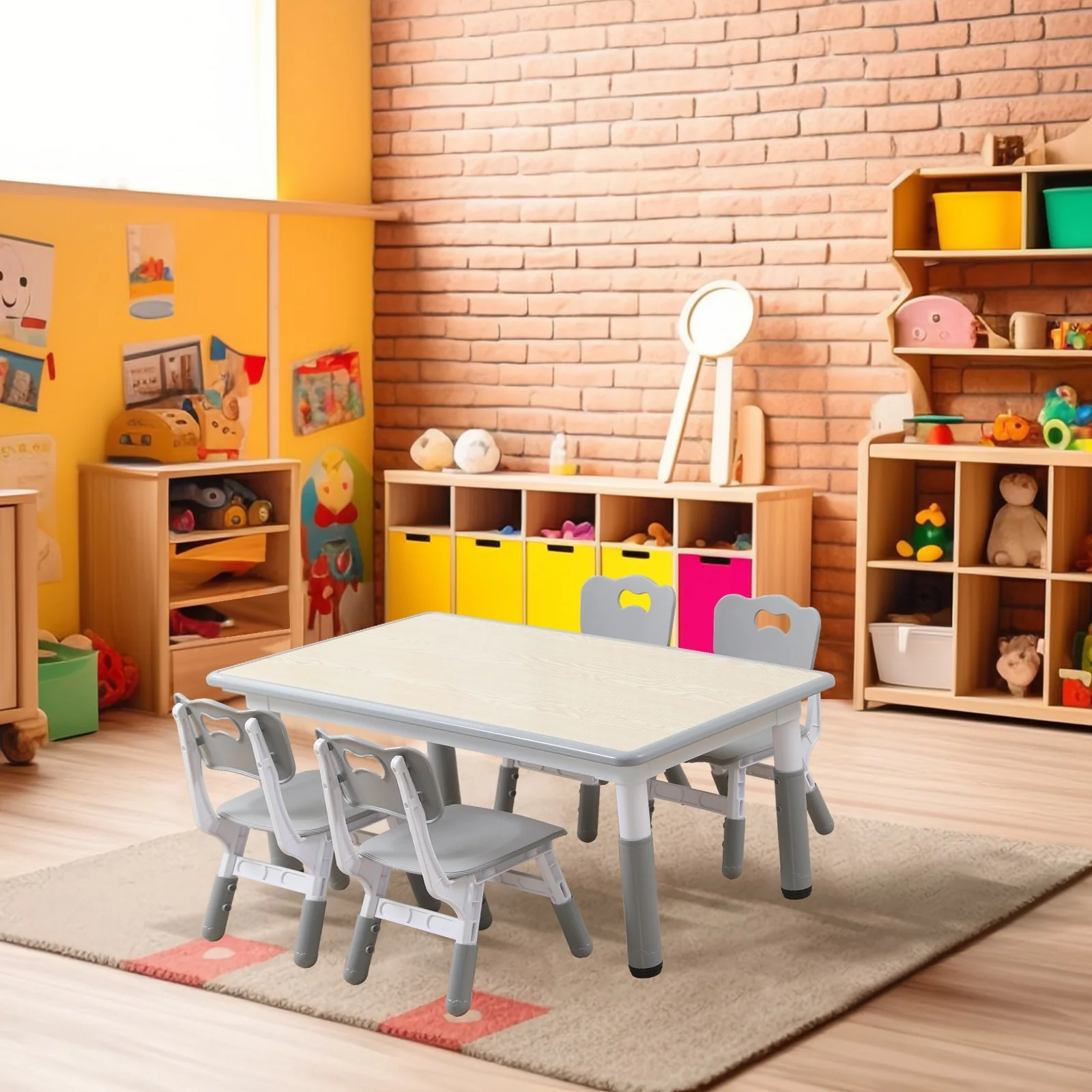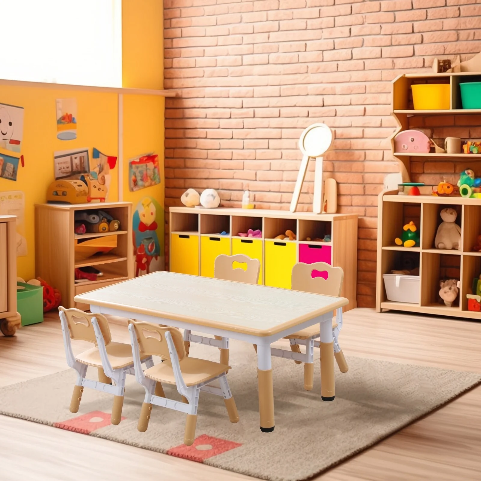 3. Multifunctional Table: This versatile plastic table is perfect for reading, studying, dining, homework, playing with building blocks, drawing, and more. It's easy to clean with a simple wipe-down.