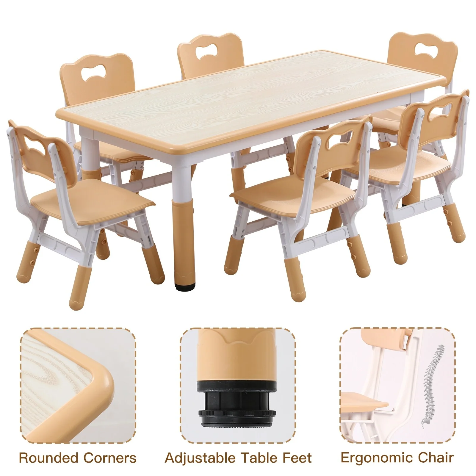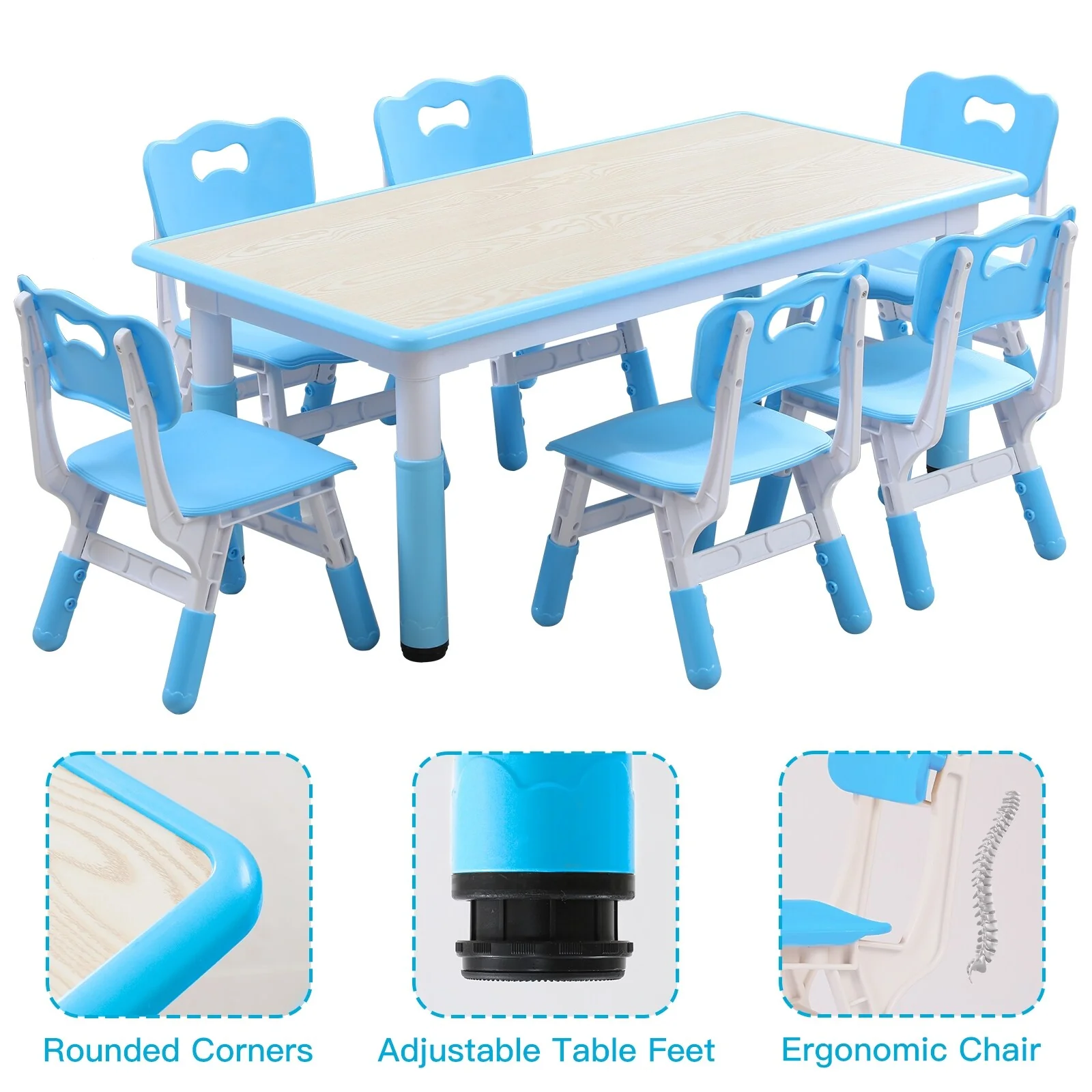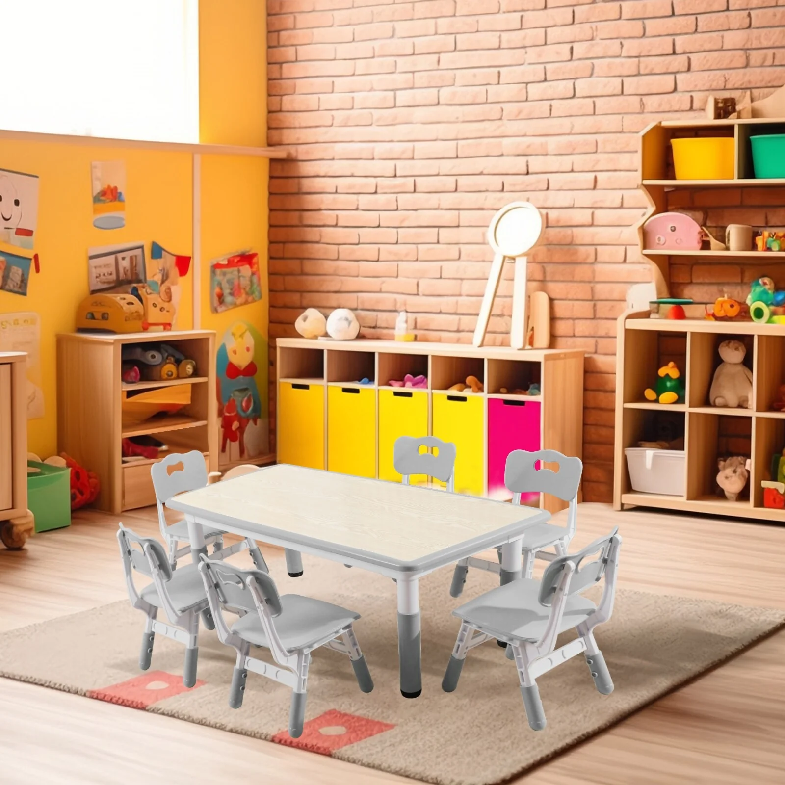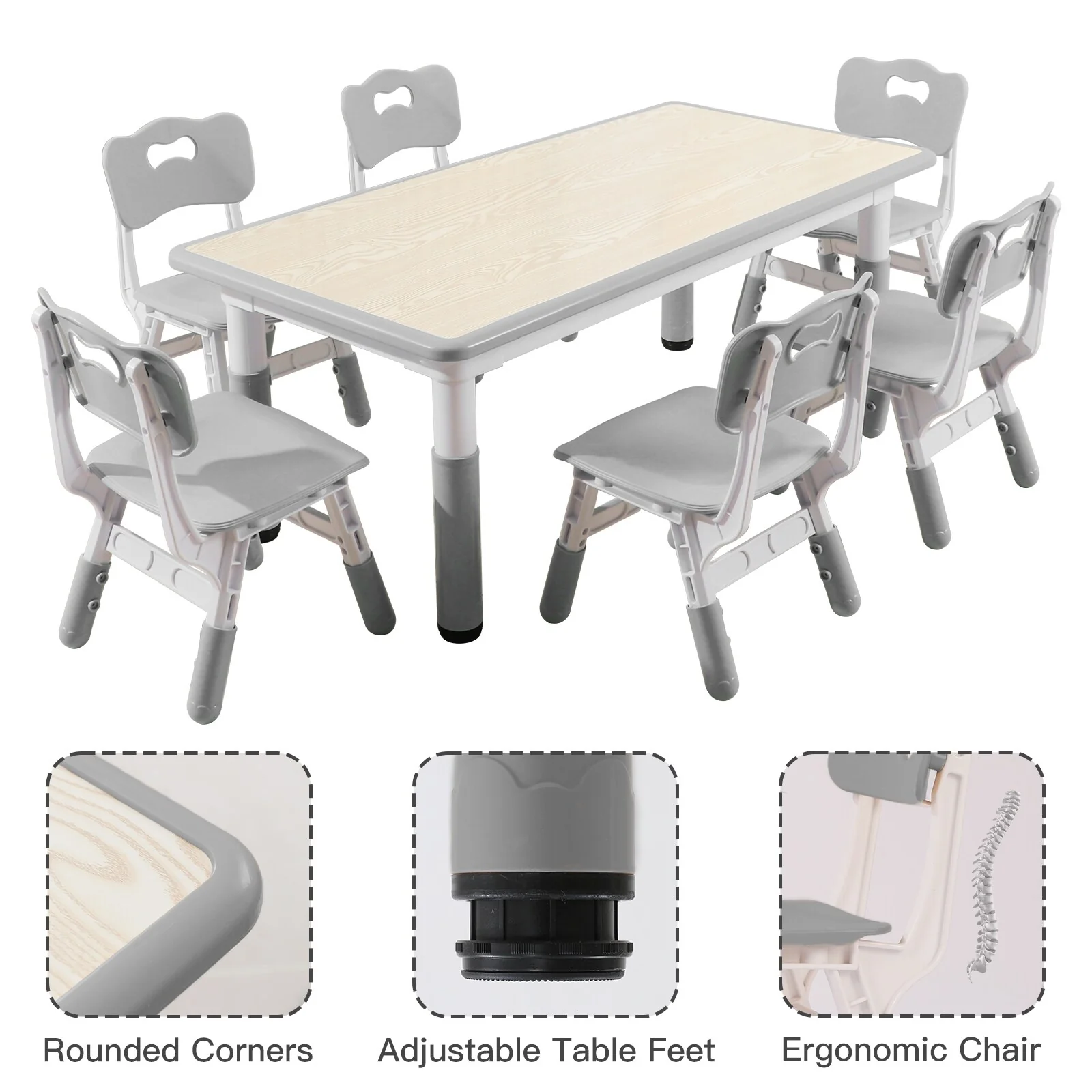 2. Designed for Growing Kids: The table offers five adjustable height options ranging from 18.9 to 23.6 inches, while the chairs feature three height adjustments from 20.8 to 22.4 inches. The table legs also come with horizontal sliding features for added convenience.