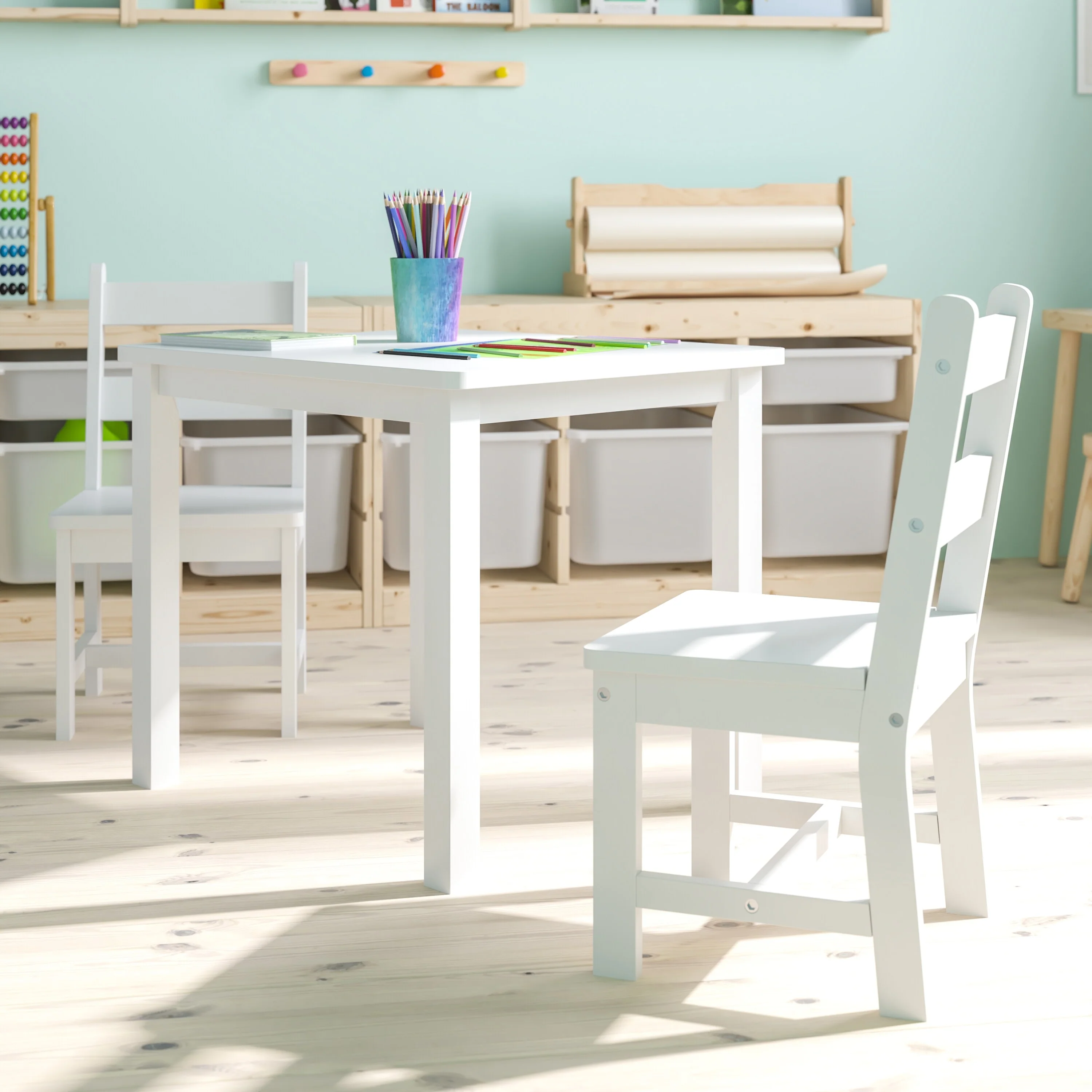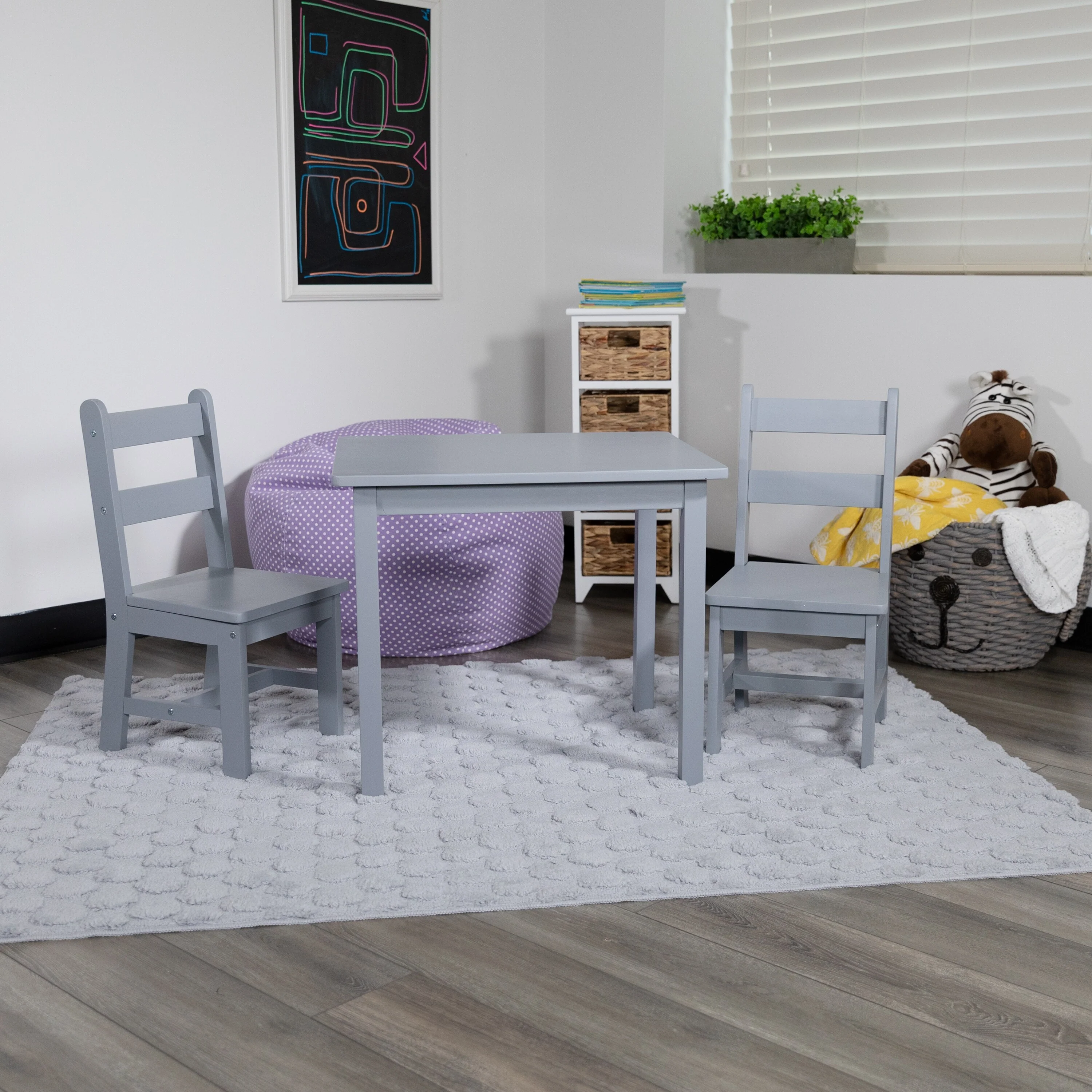 - Solid Wood Kids Table Set: 1 Square Table and 2 Chairs