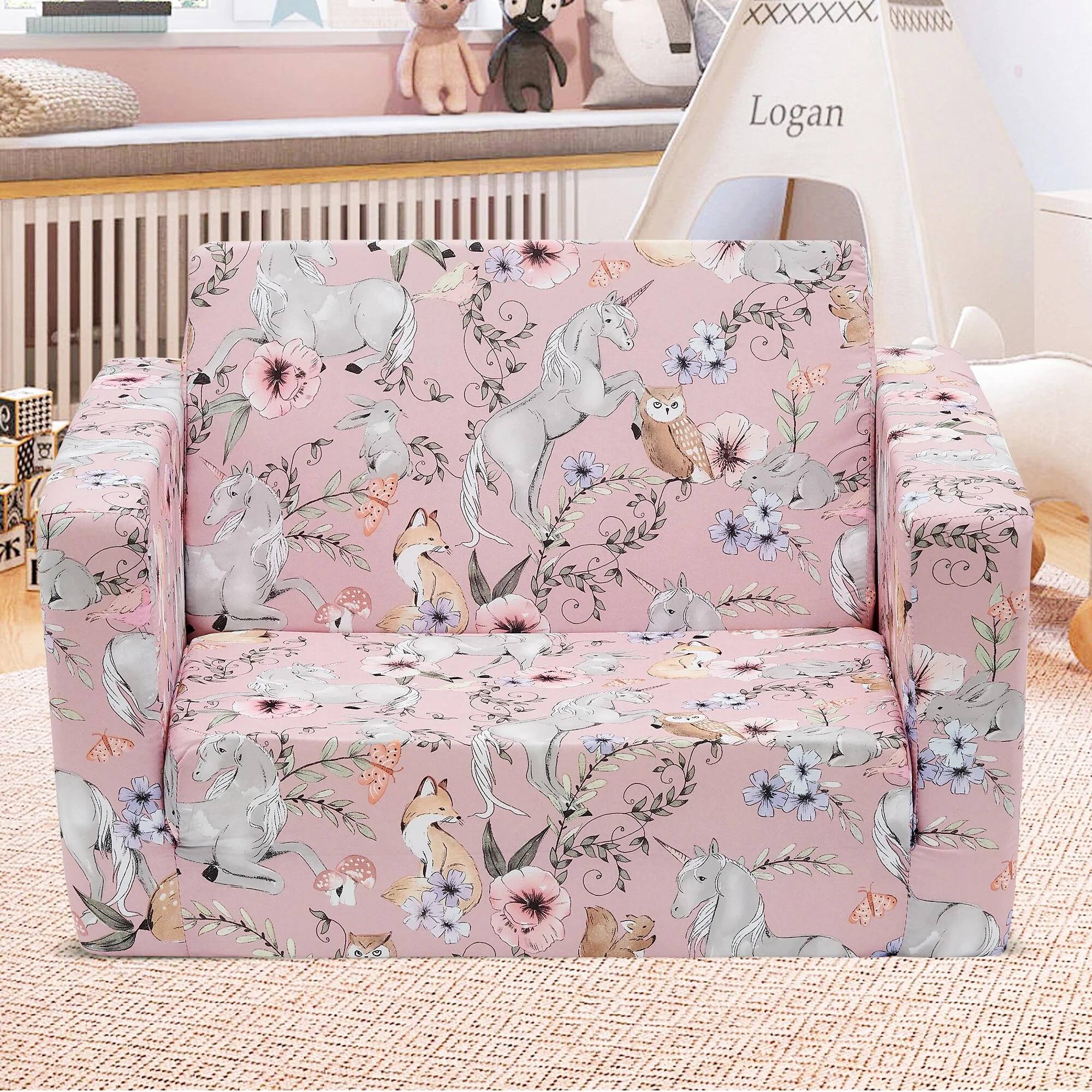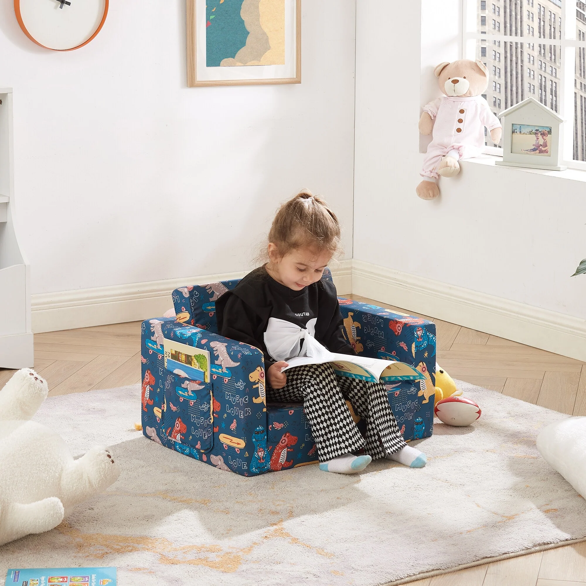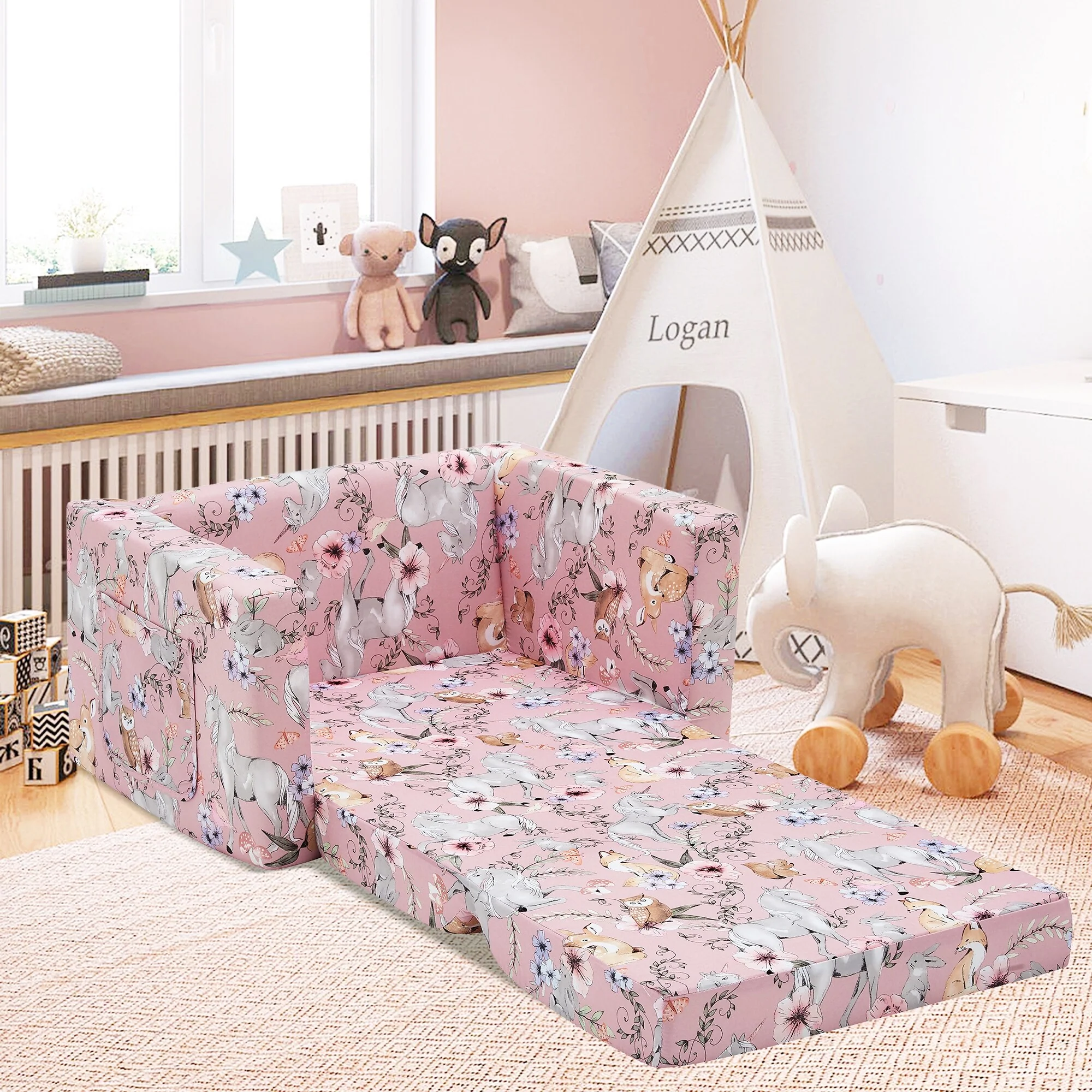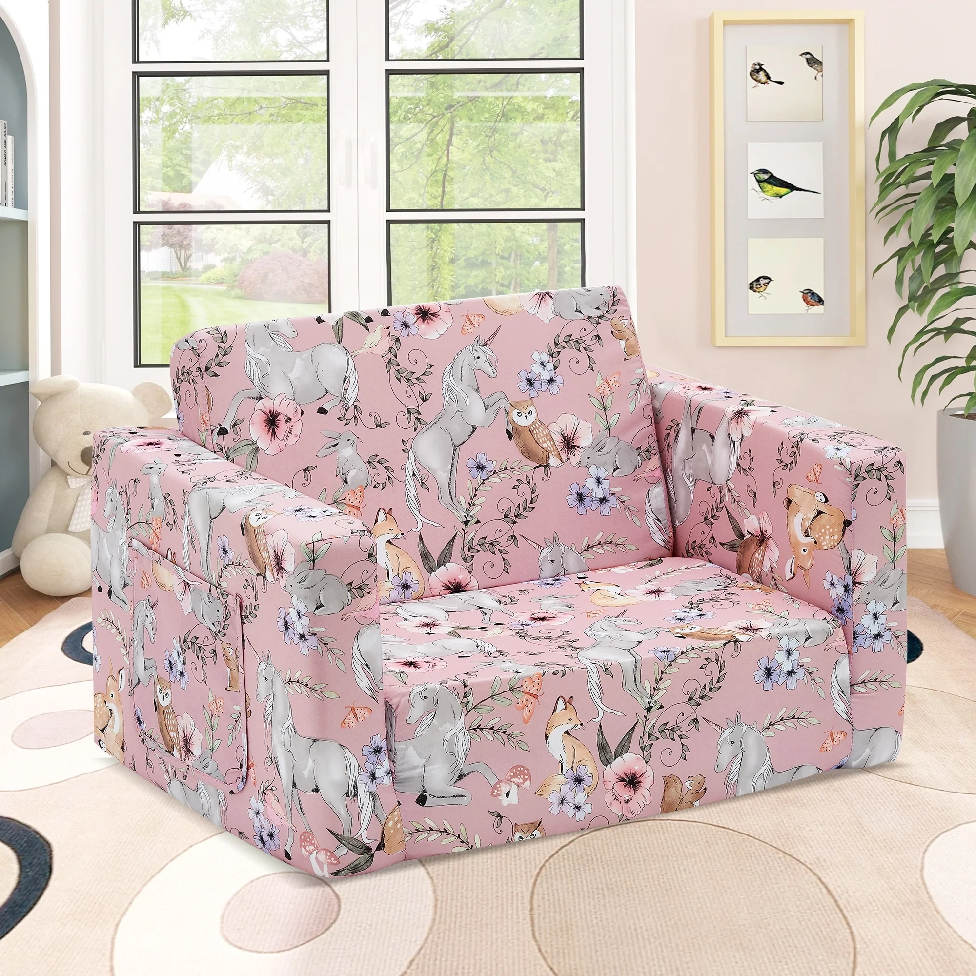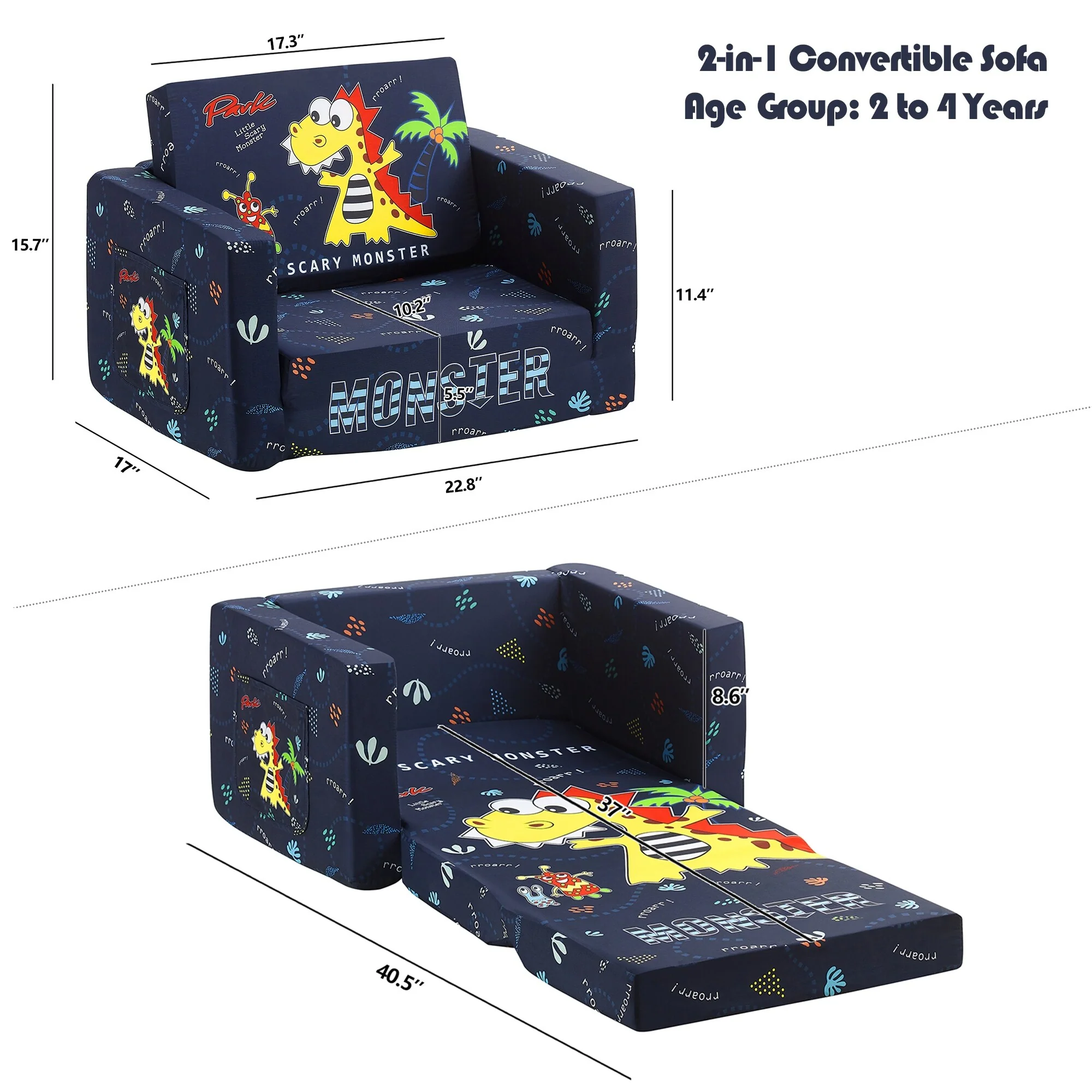 2-in-1 Design: This flip-open children's chair converts to a lounger/sleeper. Ideal for reading, relaxing, playing, or sleeping, your lovely kids will enjoy this chair with their siblings/friends.