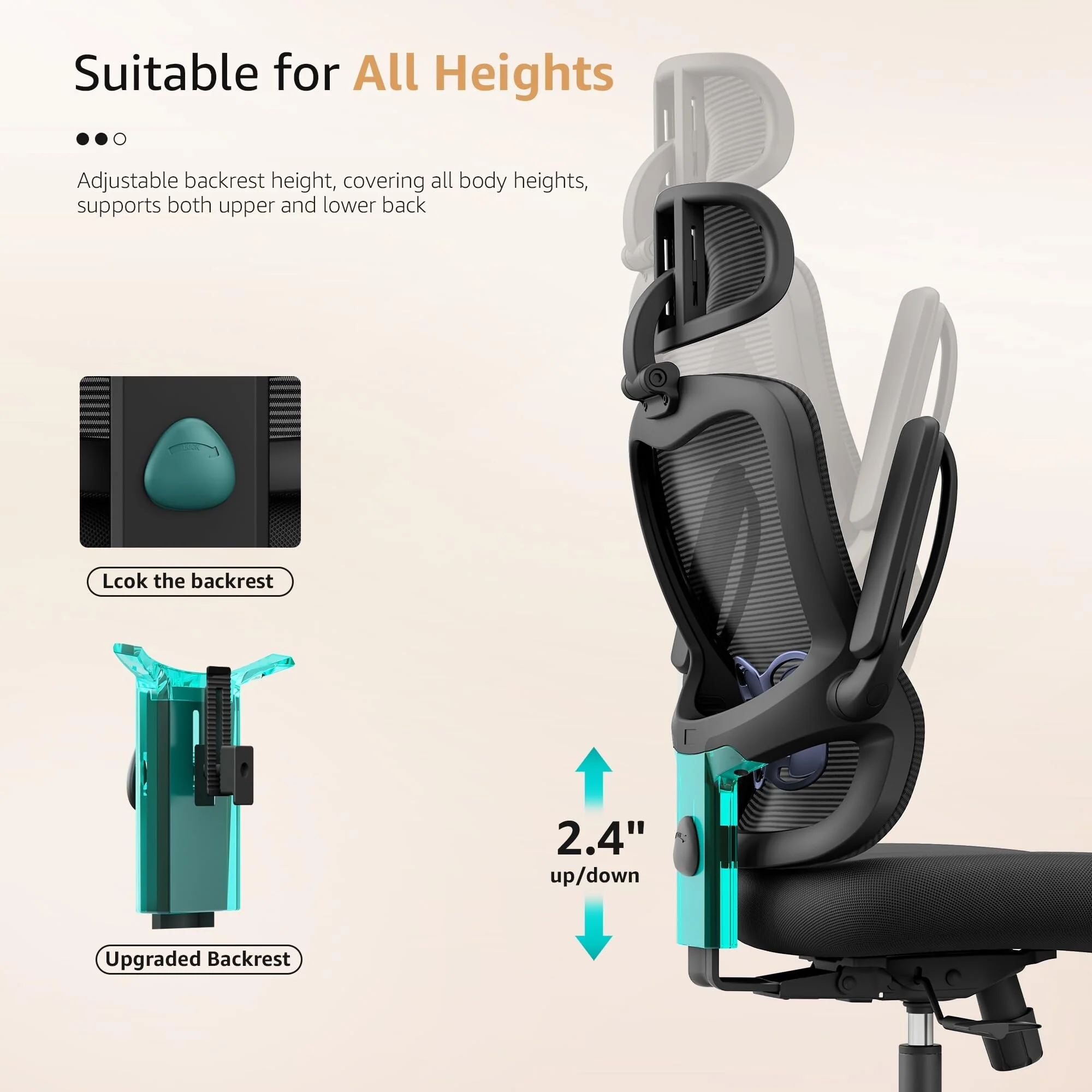 - ADJUSTABLE BACK PROTECTS YOUR SPINE: Ergonomic office chair lumbar support features an adjustable backrest to fit your body size, providing optimal support for lower back, shoulders and neck. S-shape ergonomic chair design keeps that the spine is properly aligned and supported, while adjustable headrest prevents the head from tipping forward, reducing pain.