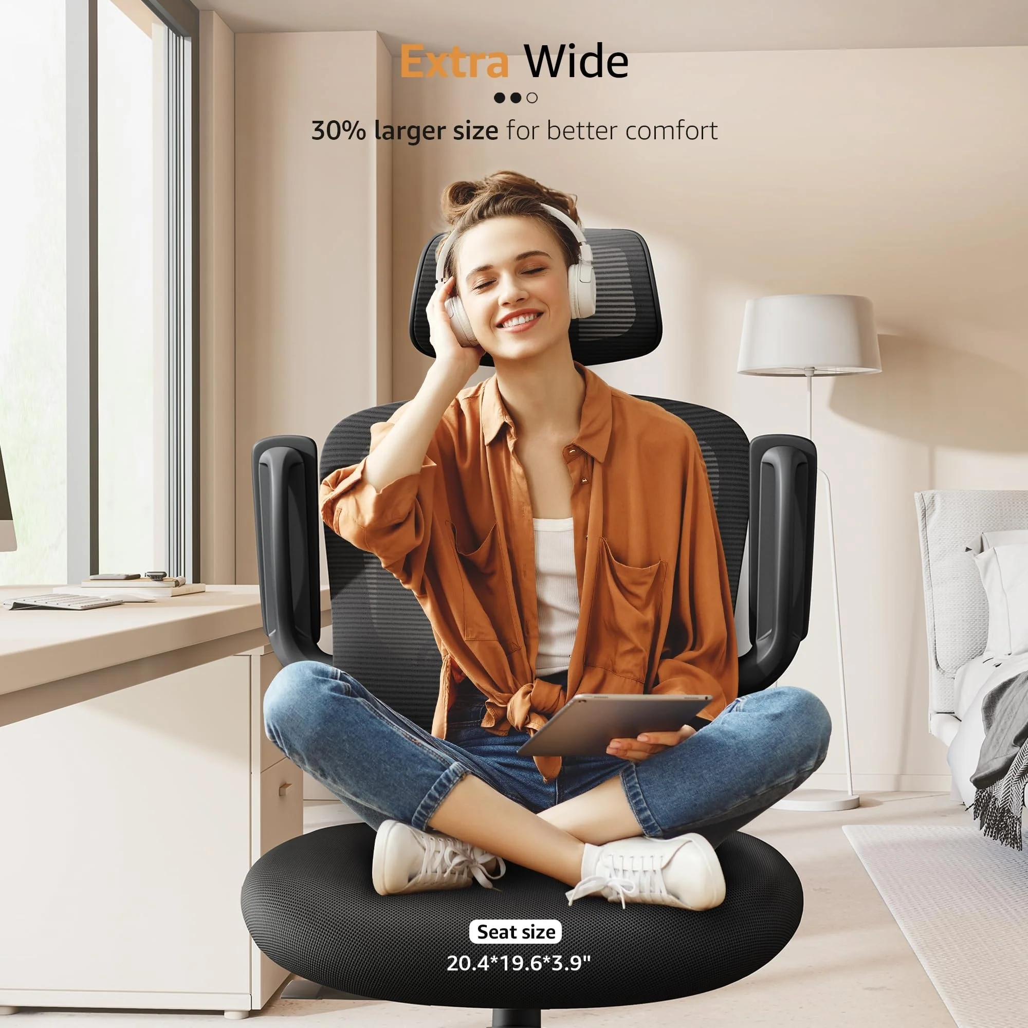 - COMFORTABLE HOME OFFICE DESK CHAIRS: Extra wide big and tall office chair filled with high resilient foam reduce hip pain and thigh pressure. Breathable mesh allows air to circulate, you will not get bogged down with sweat. Comfy office chair with PU padded arms won't make your skin sensitive, provides all-day support and sitting comfort