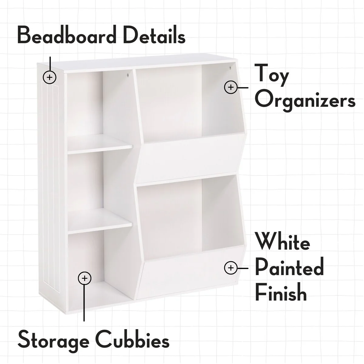 - The toy organizer and bookshelf is made of painted MDF for long lasting durability