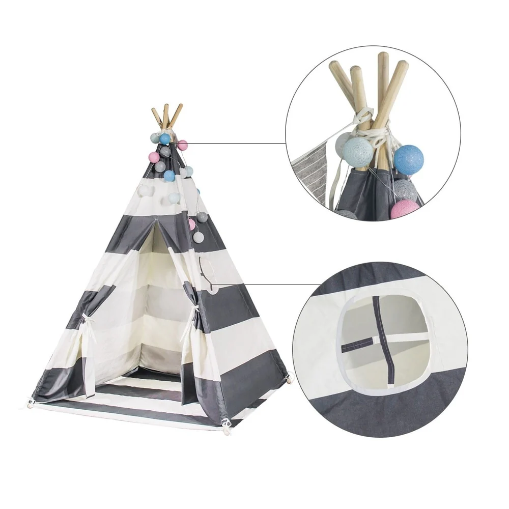 Let your child's imagination run wild with this Teepee Tent for Kids! Made from 100% natural, non-toxic, unpainted cotton canvas and sturdy pine wood poles, this play tent is safe and built to last for years. Measuring 47.2 x 47.2 x 61.4 inches, it's the perfect size for indoor or outdoor play. Your child will love having their own special spot to play, read, nap, or just spend some alone time. This Teepee Tent makes a great gift for any little girl or boy!
