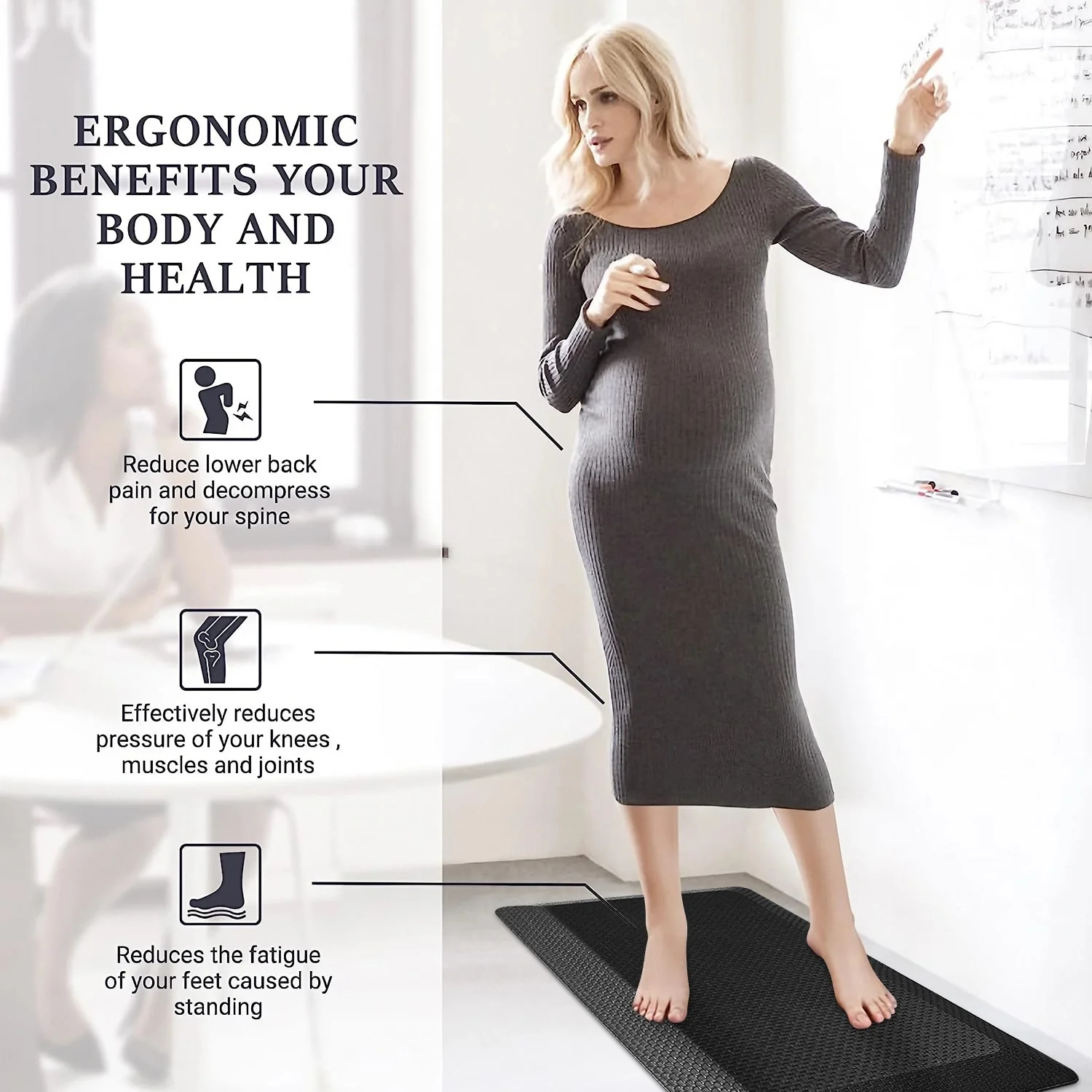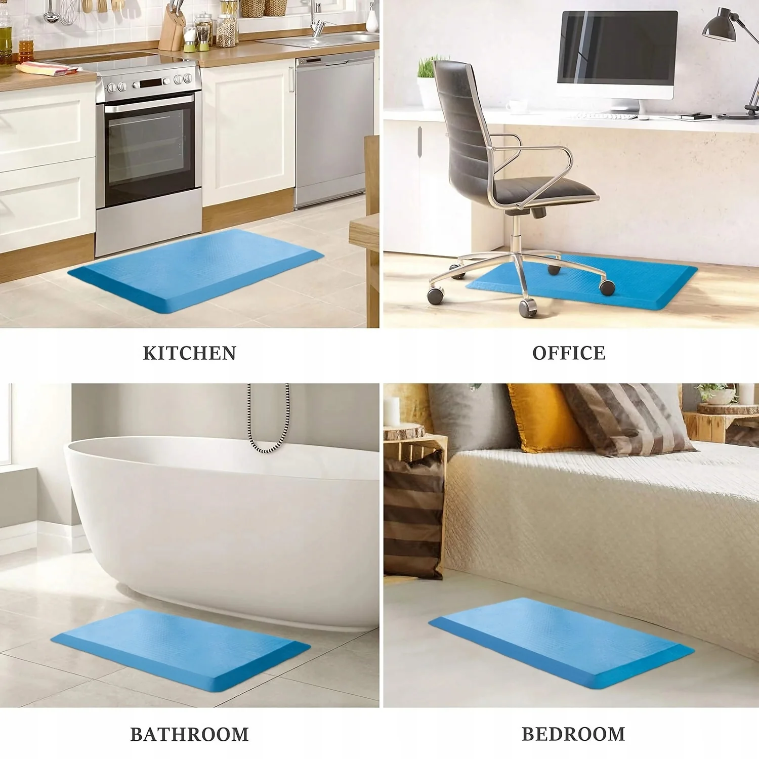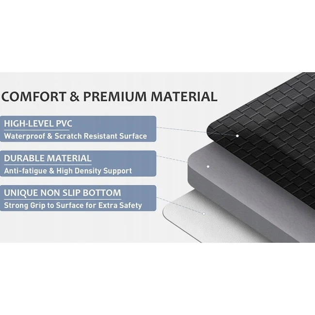 - Versatile Use: While perfect for the kitchen and bathroom, our mats are versatile enough to use in any room where you need extra cushioning and support, from the laundry room to the garage or even a standing desk.
