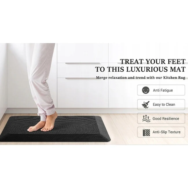 Crafted with high-density foam, designed to bring comfort and support to your kitchen and bathroom, LOCHAS Anti Fatigue Cushioned Mats provide unparalleled cushioning to relieve pressure on your feet, legs, and back, ensuring you can cook, clean, and prep with ease. Invest in your comfort and upgrade your kitchen, Say goodbye to sore feet and hello to a more enjoyable cooking experience with this Anti Fatigue Cushioned Mats!