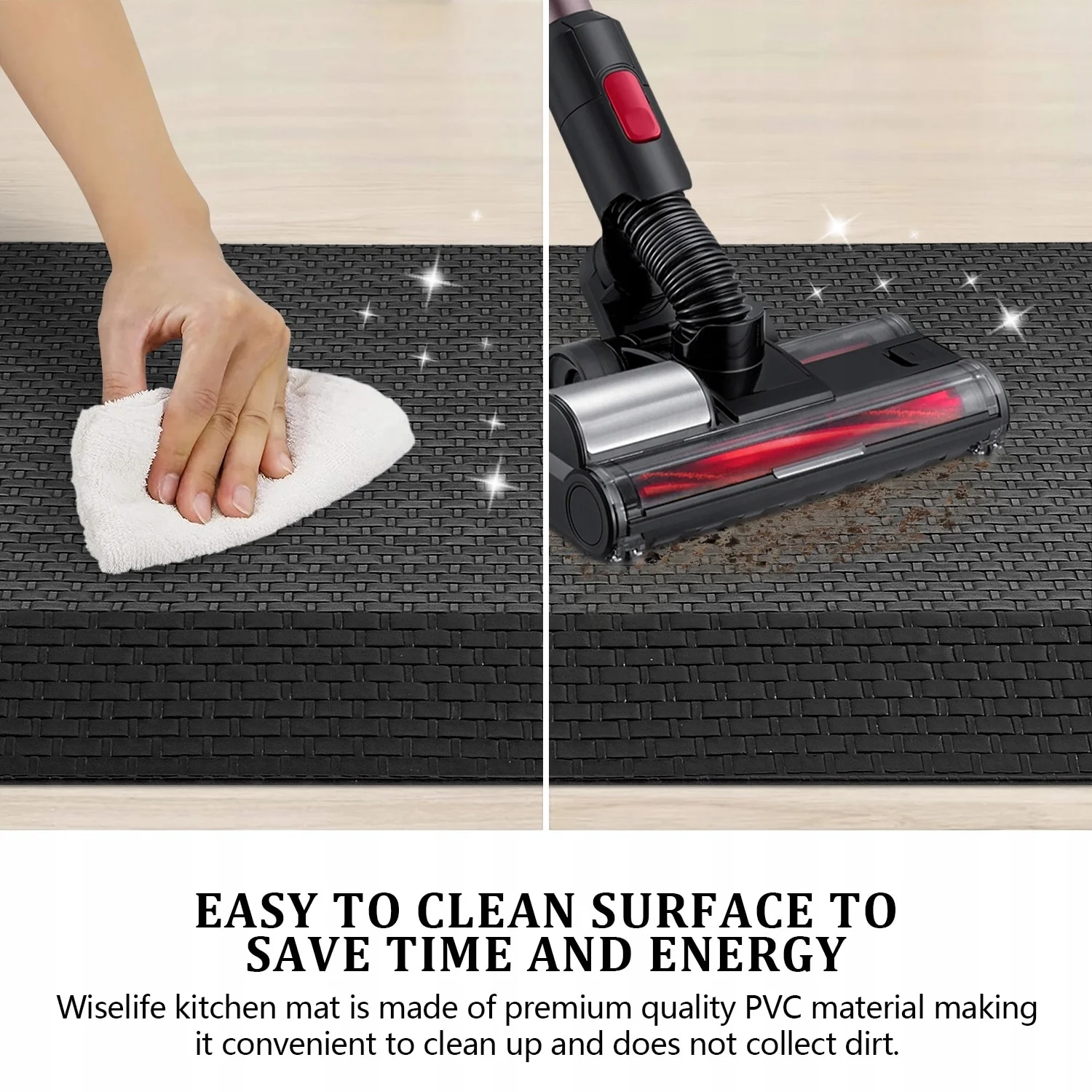 - Easy to Clean: Spills and splashes are inevitable in both the kitchen and bathroom, but cleaning up is a breeze with our mats. Simply wipe them down with a damp cloth or sponge for quick and convenient maintenance.