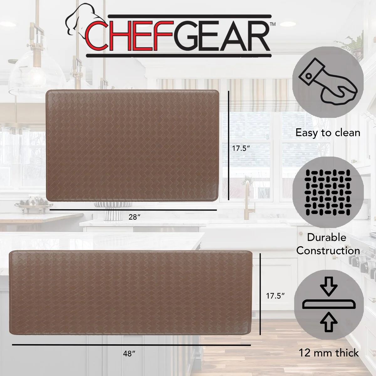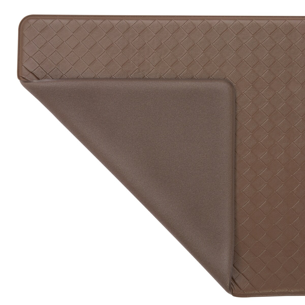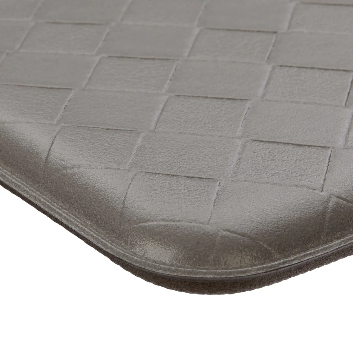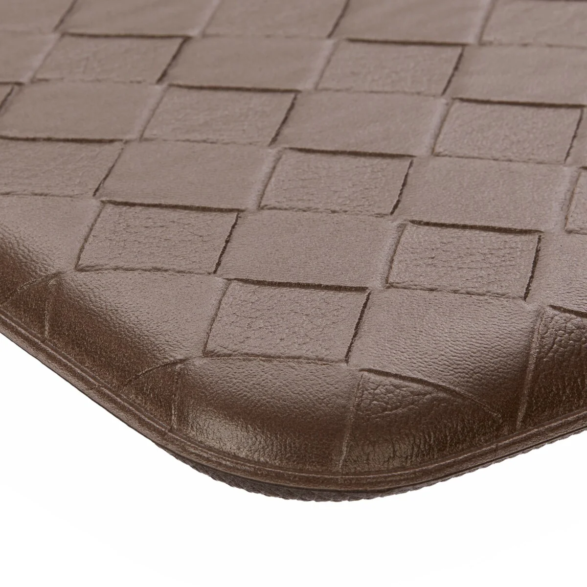 Say goodbye to sore feet and hello to comfort with Chef Gear Playa Basketweave Anti-Fatigue Kitchen Wellness Mats by Creative Home Ideas. These long-lasting mats come in various sizes, including 18 x 30, 17.5 x 32, and a 2-Piece Set measuring 17.5 x 48 / 17.5 x 28, providing a perfect fit for any space. The cushioned construction promotes better posture, circulation, and muscle conditioning while cooking or working in your kitchen or laundry room. The slip-resistant backing ensures safety, while the fade-resistant cover makes cleaning a breeze. Imported.
