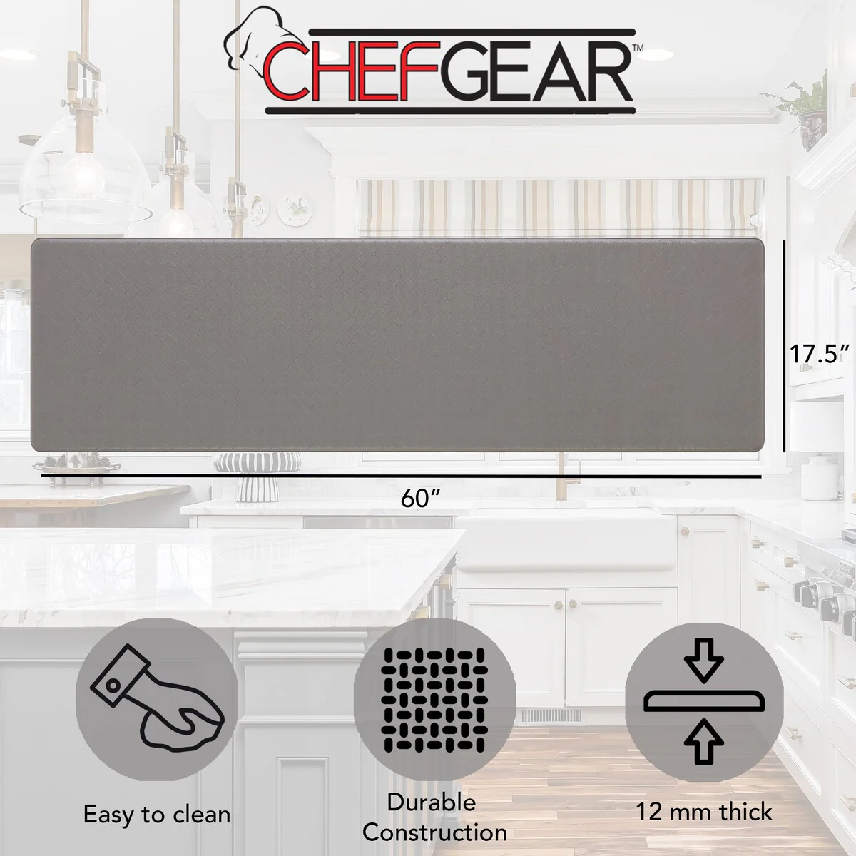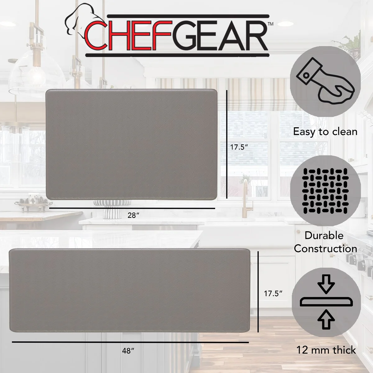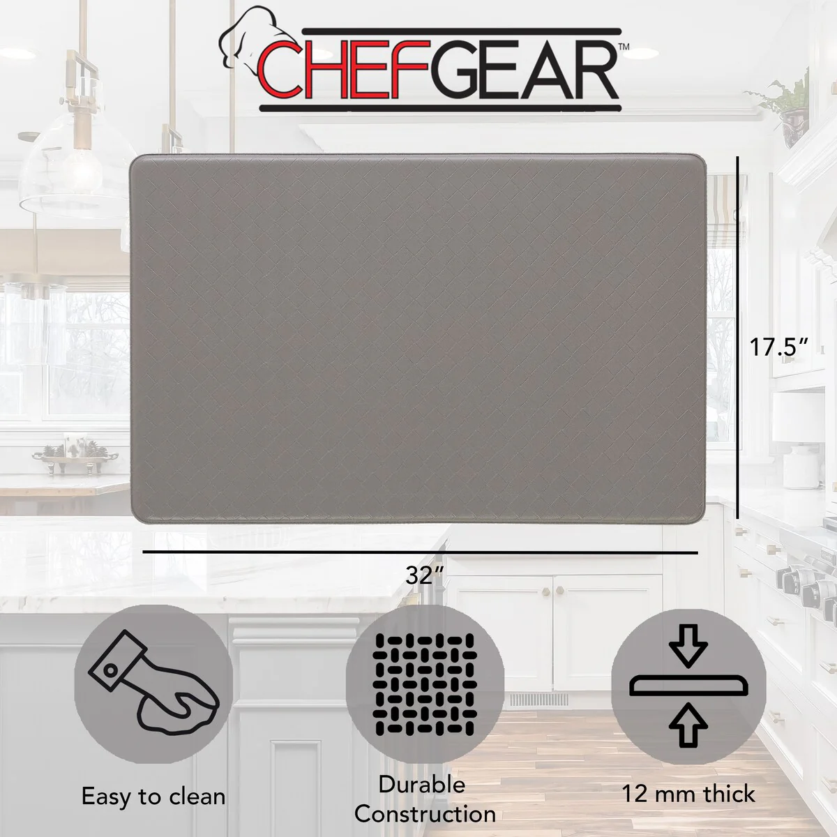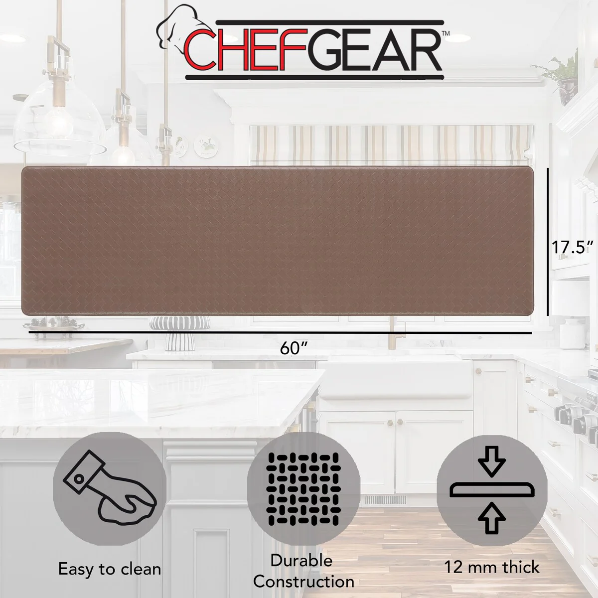 Say goodbye to sore feet and hello to comfort with Chef Gear Playa Basketweave Anti-Fatigue Kitchen Wellness Mats by Creative Home Ideas. These long-lasting mats come in various sizes, including 18 x 30, 17.5 x 32, and a 2-Piece Set measuring 17.5 x 48 / 17.5 x 28, providing a perfect fit for any space. The cushioned construction promotes better posture, circulation, and muscle conditioning while cooking or working in your kitchen or laundry room. The slip-resistant backing ensures safety, while the fade-resistant cover makes cleaning a breeze. Imported.