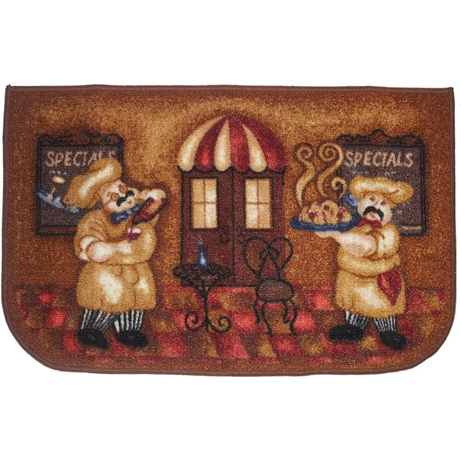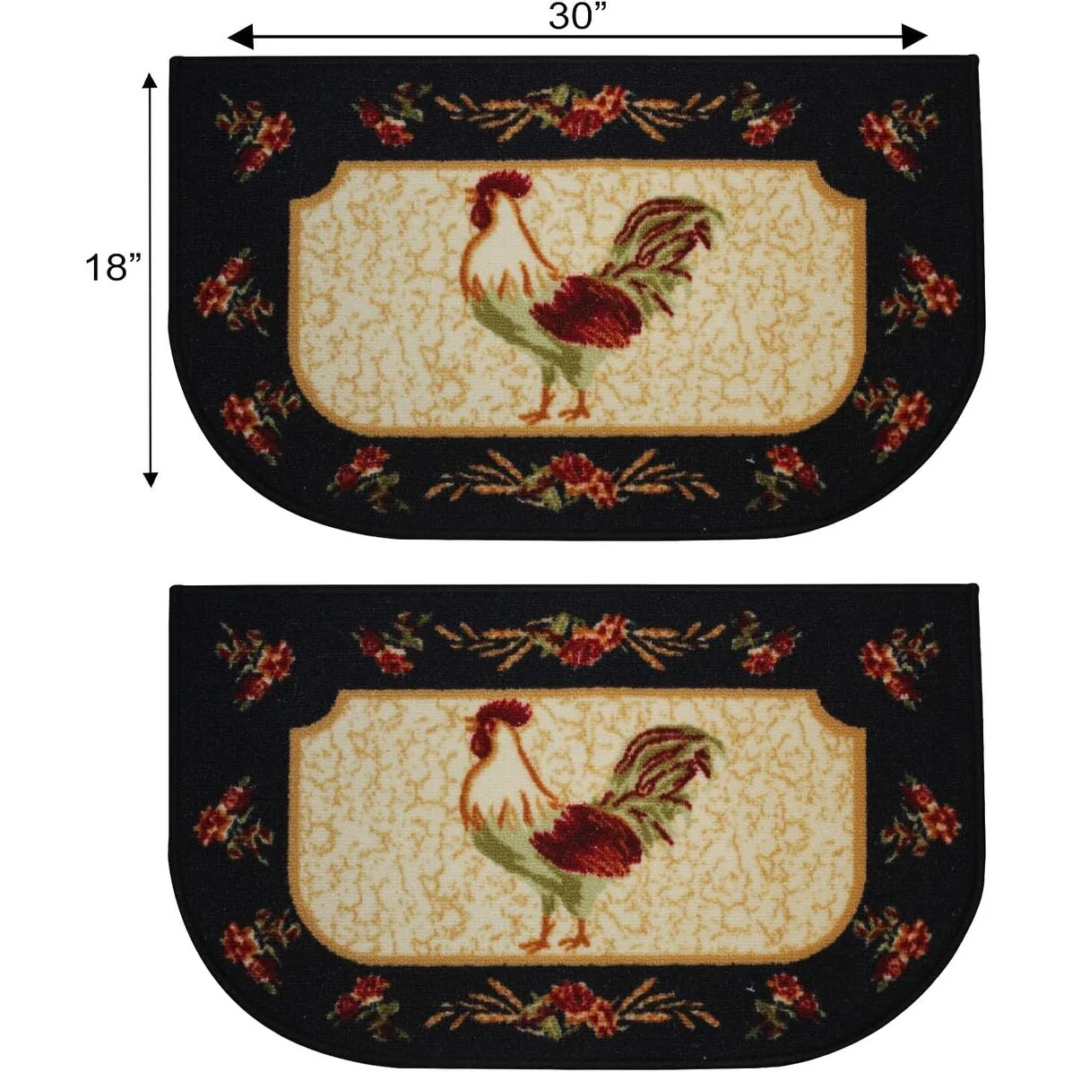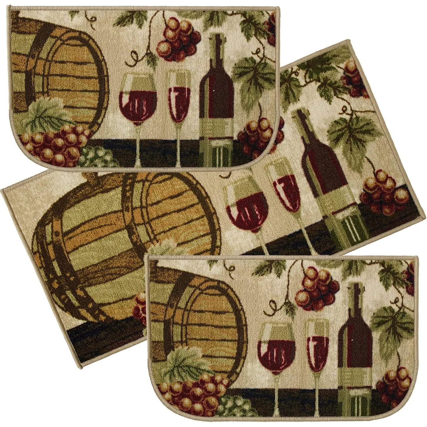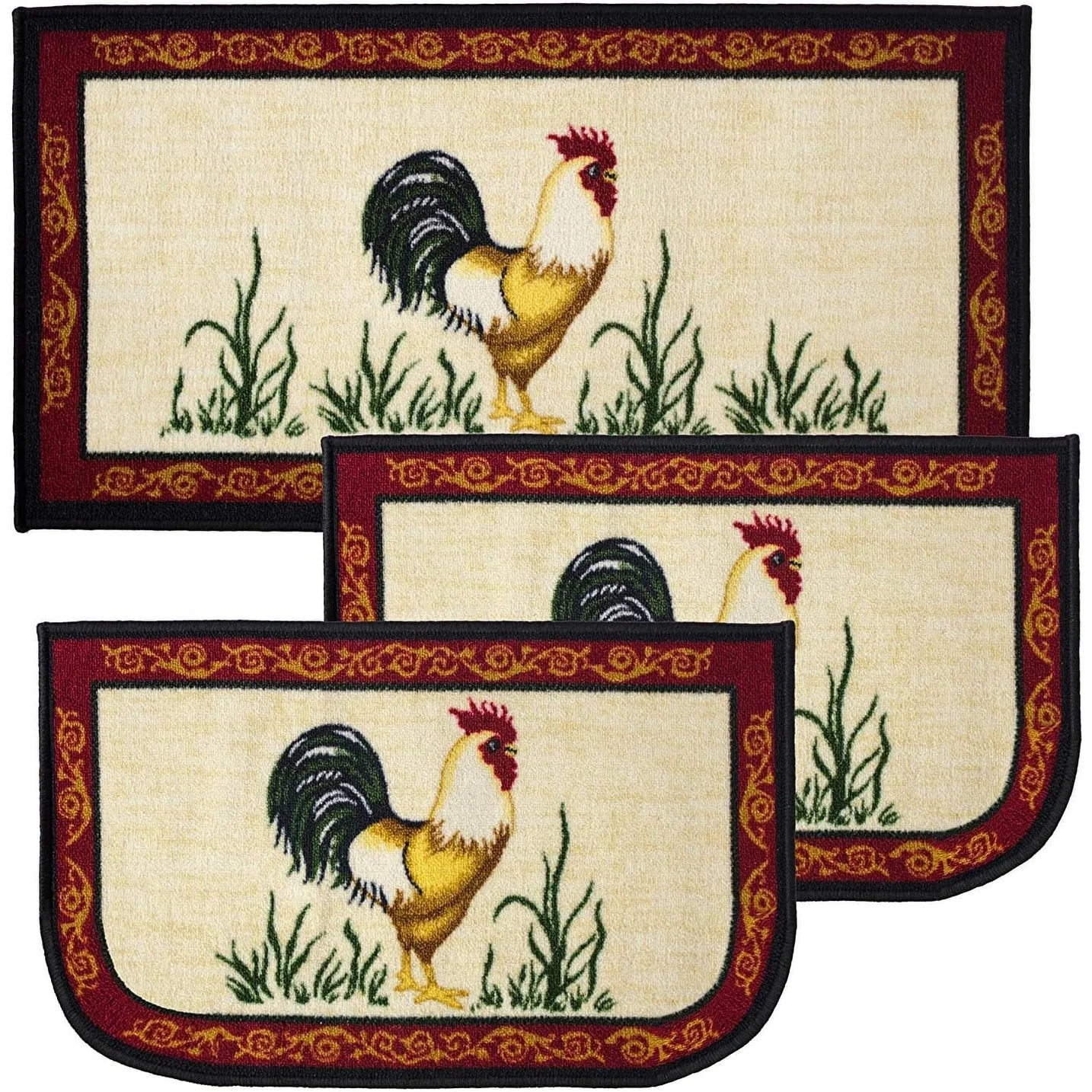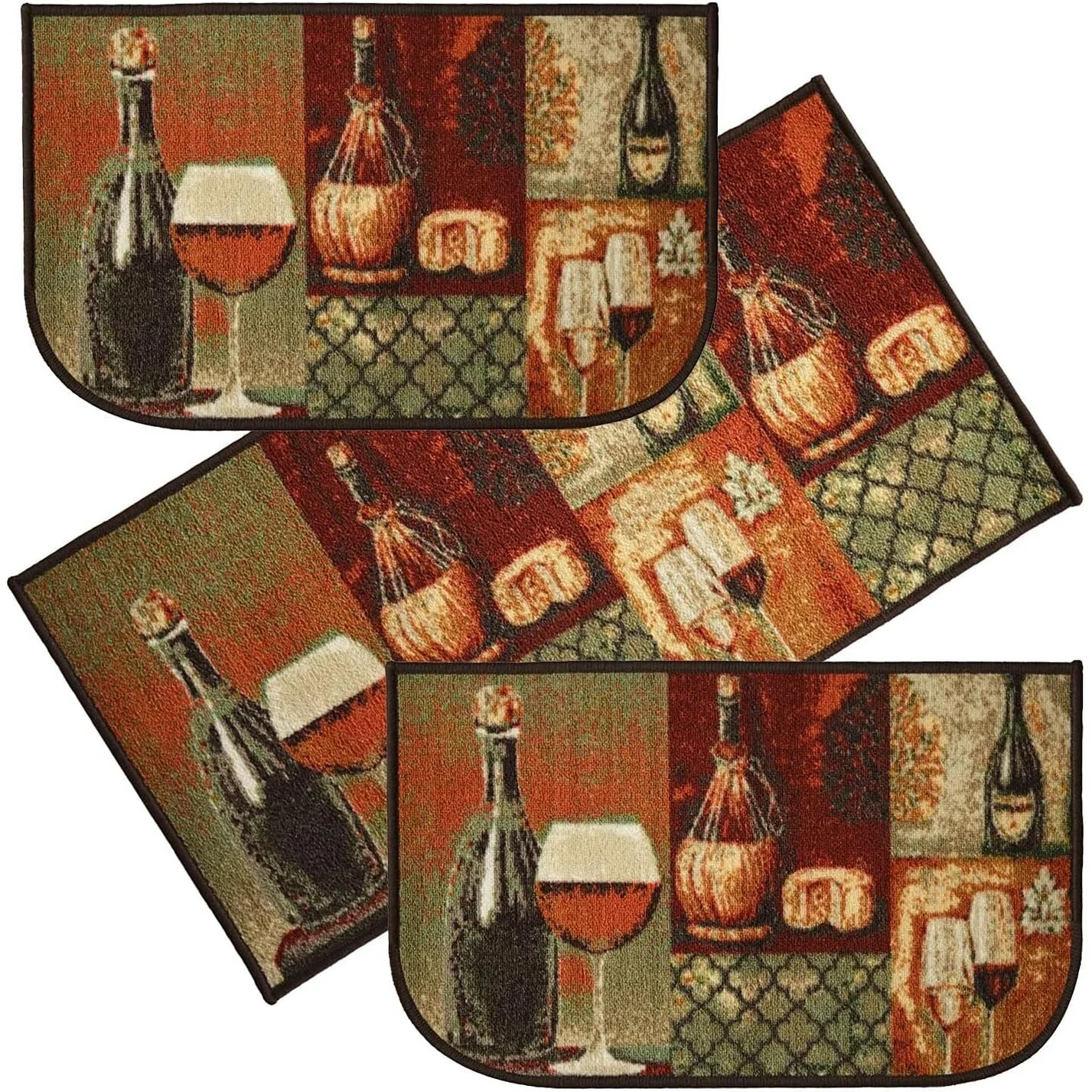 Add a new look to your kitchen with this decorative printed kitchen rug by Kashi Home and feel comfortable as you clean dishes, prepare vegetables, or while. Rugs feature built-in latex backing on the bottom of the kitchen rug that will help prevent it from slipping and sliding its way around the kitchen and keep you stationary. Available in a variety of beverage, food, fruit, vegetable, and farmhouse designs. Made with soft and durable polyester and built with a durable layer of latex on the bottom. To ensure a better grip on the floor it is recommended to use a rug pad with the kitchen rug. These printed rugs are decorative in addition to almost any kitchen decor, the collection of deep colors creates a wonderful image that adds a finishing touch to the kitchen look and feels. Great for Farmhouse, and country house decorations. Set includes: 3 Piece Set (2 18x30 D-Shape & 20x40 rectangle) Please note that packaging may. Hand wash, drip dry. Not recommended to machine wash.