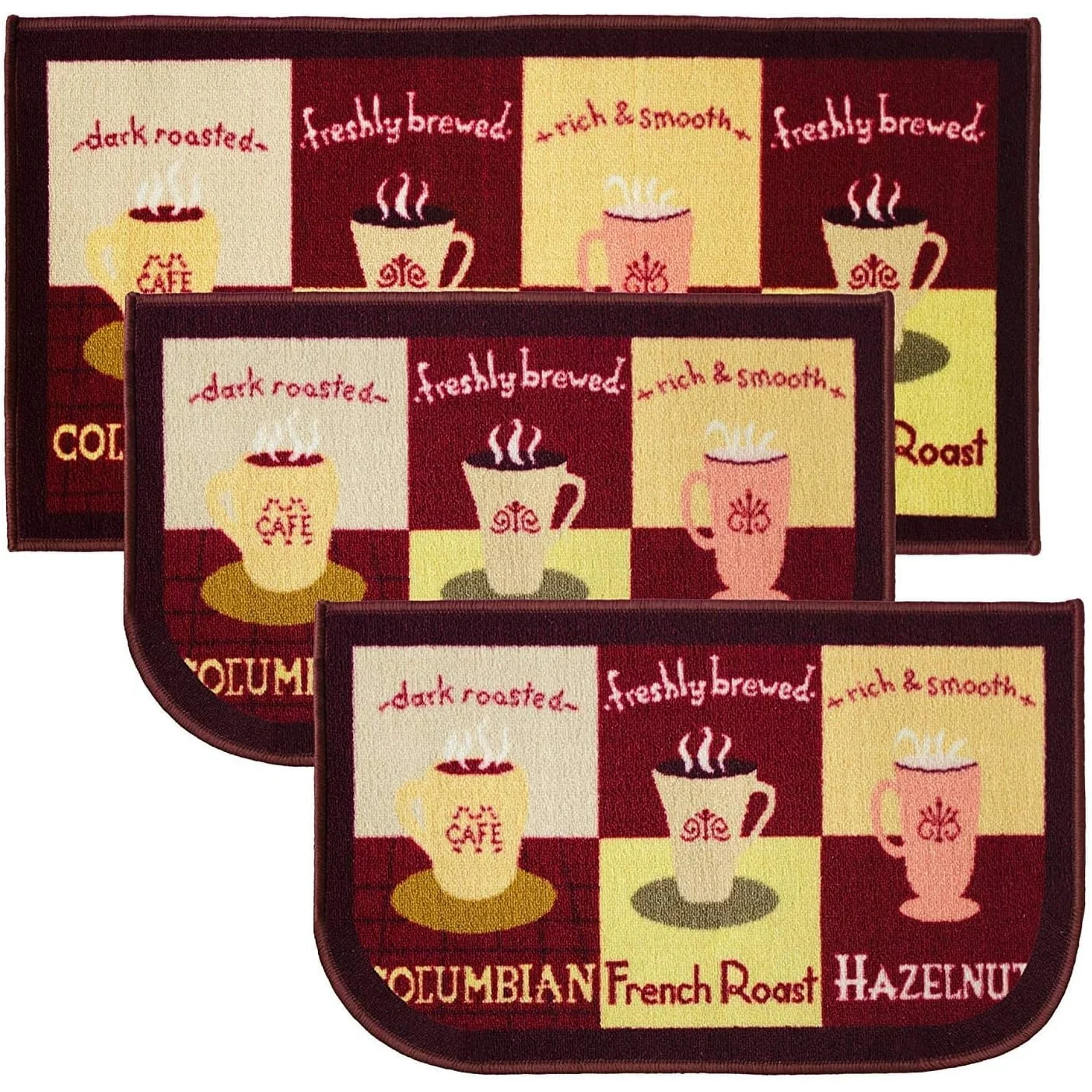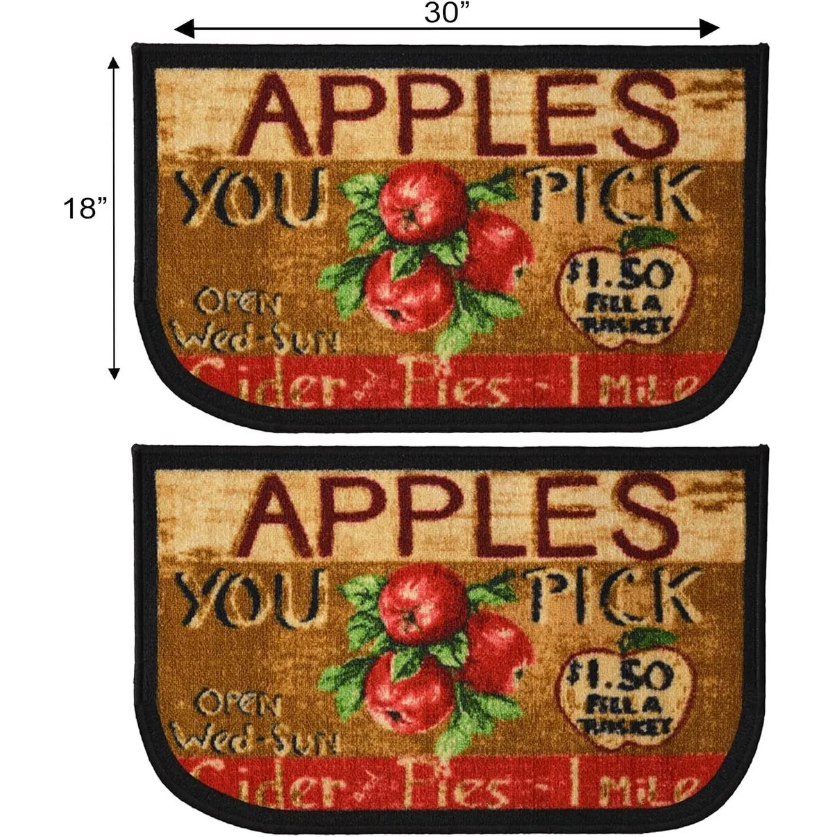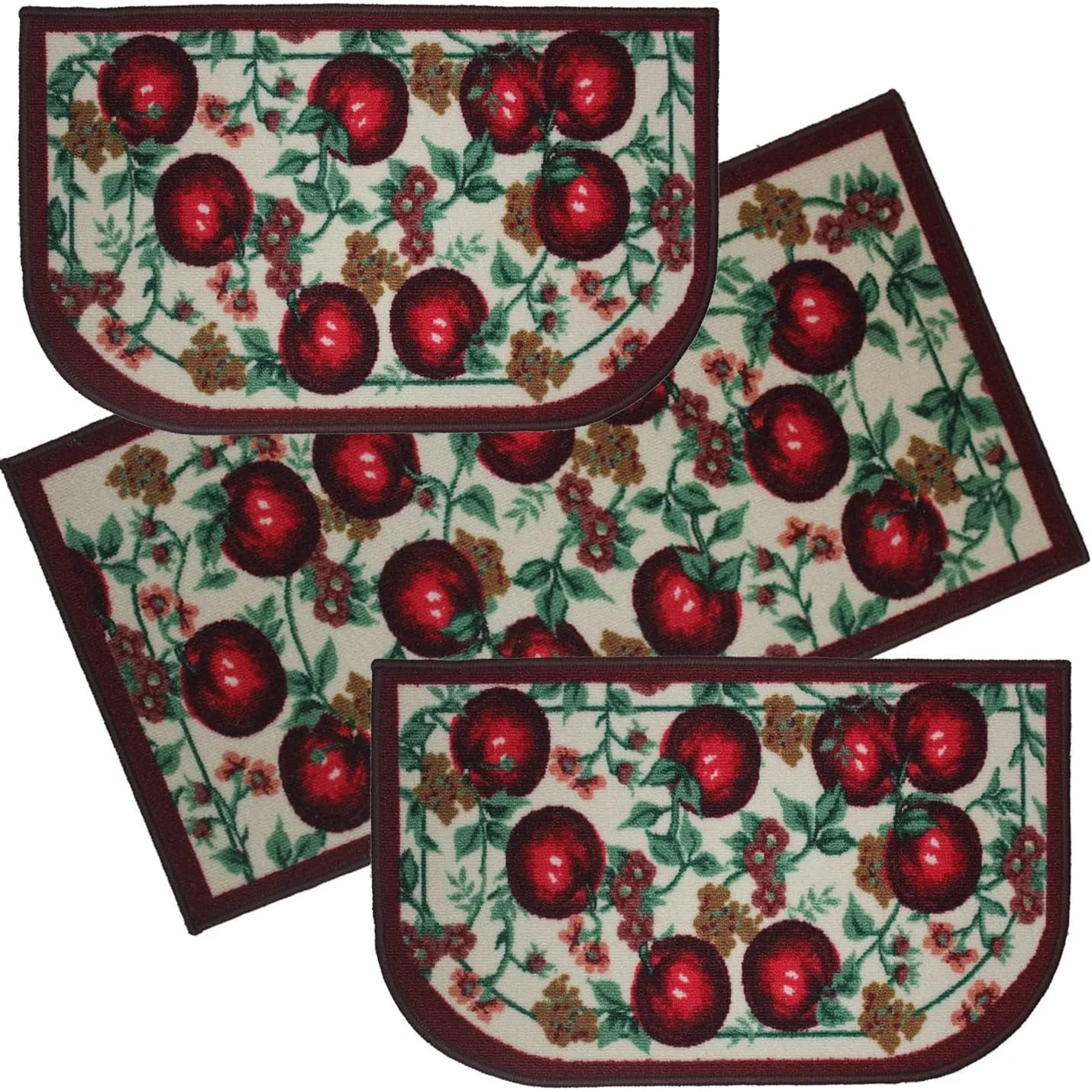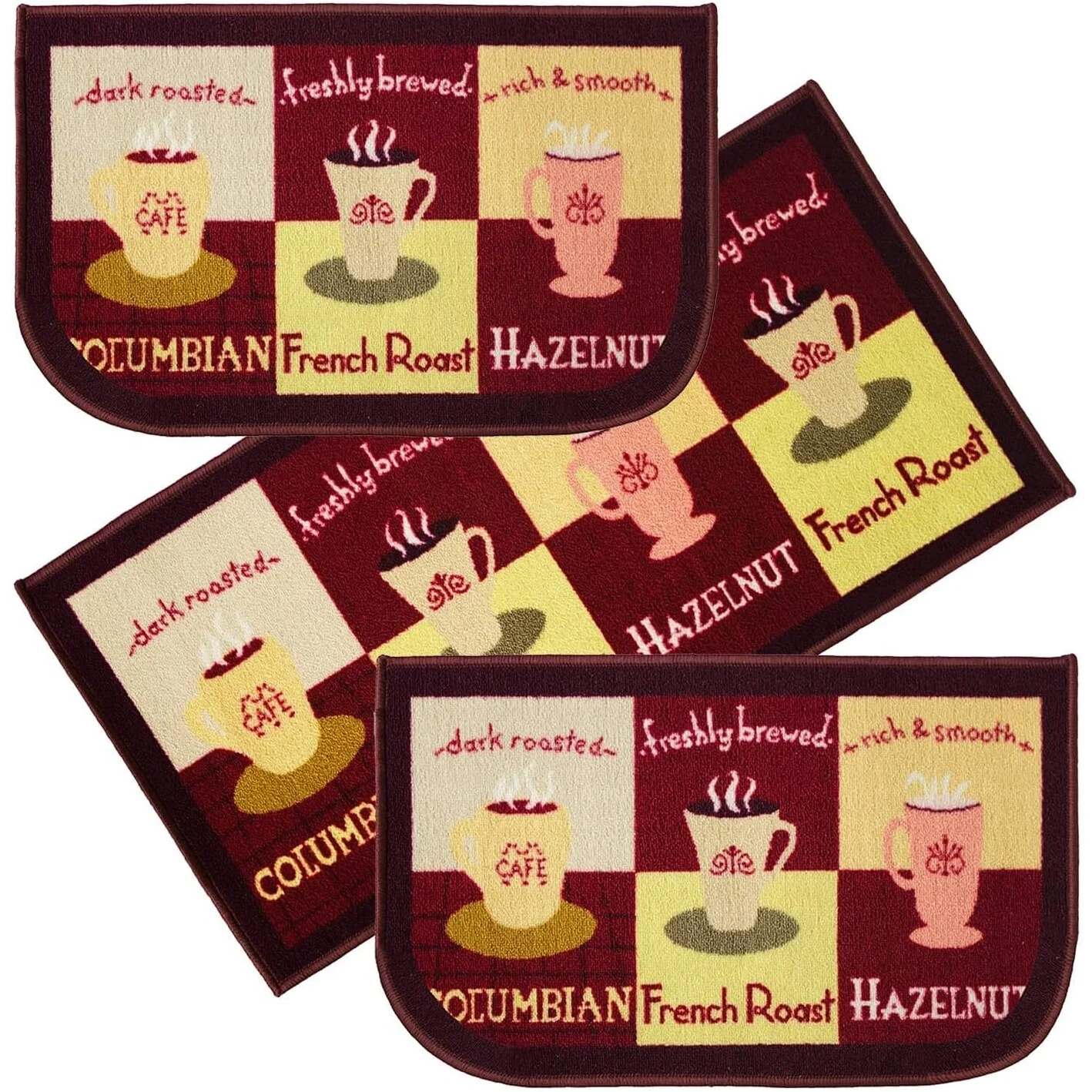 Add a new look to your kitchen with this decorative printed kitchen rug by Kashi Home and feel comfortable as you clean dishes, prepare vegetables, or while. Rugs feature built-in latex backing on the bottom of the kitchen rug that will help prevent it from slipping and sliding its way around the kitchen and keep you stationary. Available in a variety of beverage, food, fruit, vegetable, and farmhouse designs. Made with soft and durable polyester and built with a durable layer of latex on the bottom. To ensure a better grip on the floor it is recommended to use a rug pad with the kitchen rug. These printed rugs are decorative in addition to almost any kitchen decor, the collection of deep colors creates a wonderful image that adds a finishing touch to the kitchen look and feels. Great for Farmhouse, and country house decorations. Set includes: 3 Piece Set (2 18x30 D-Shape & 20x40 rectangle) Please note that packaging may. Hand wash, drip dry. Not recommended to machine wash.