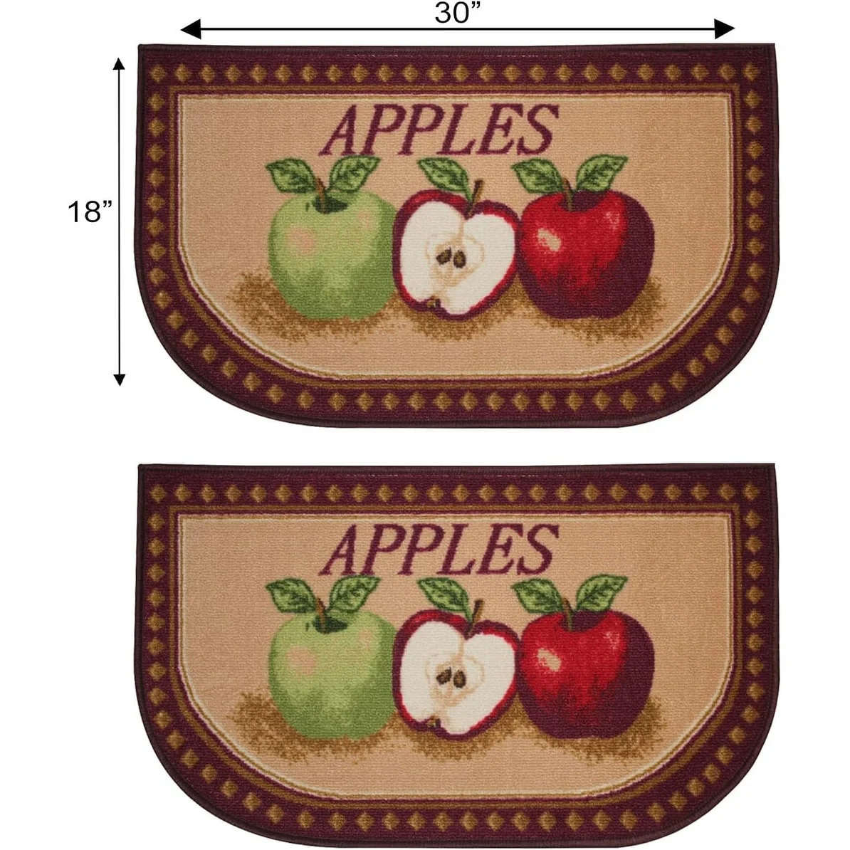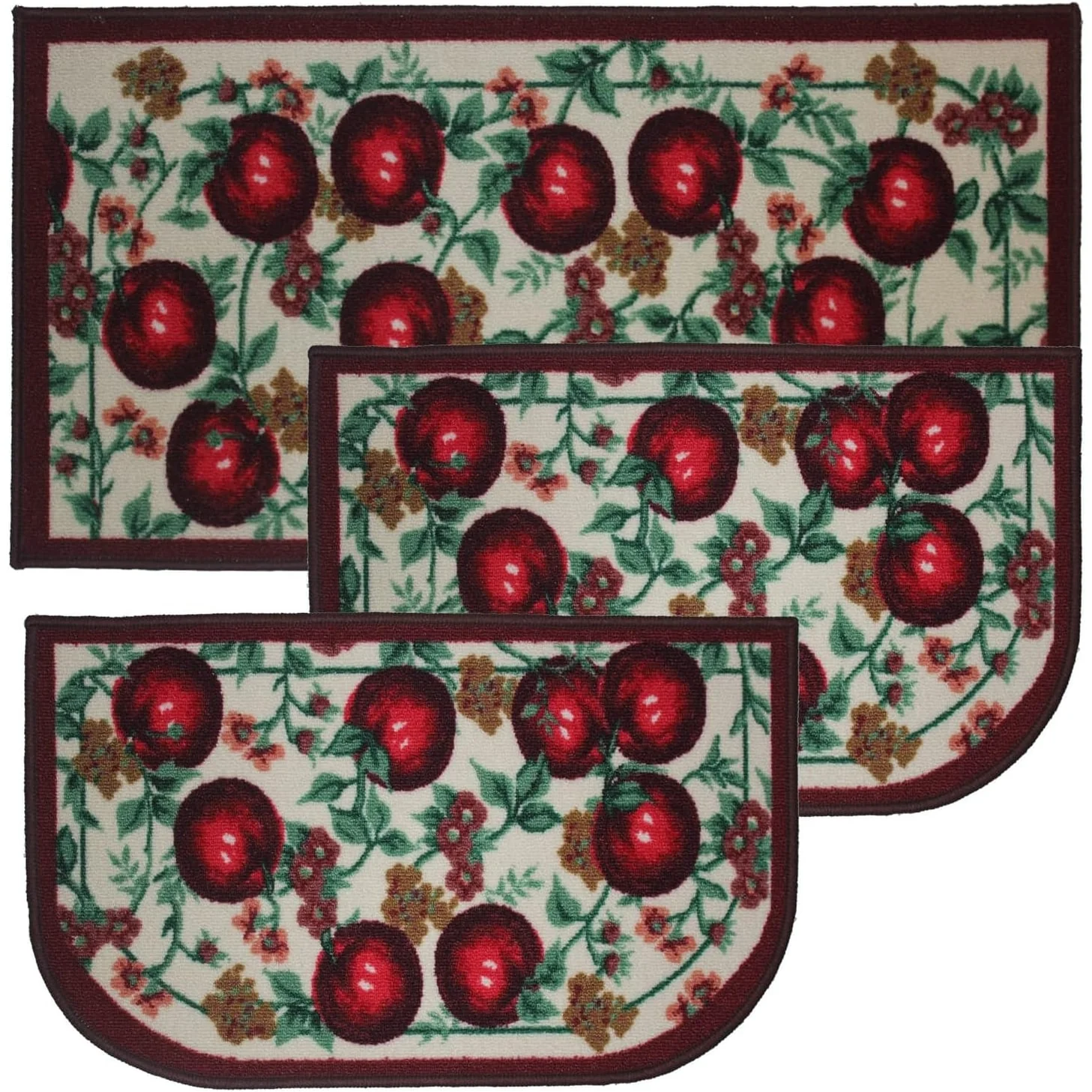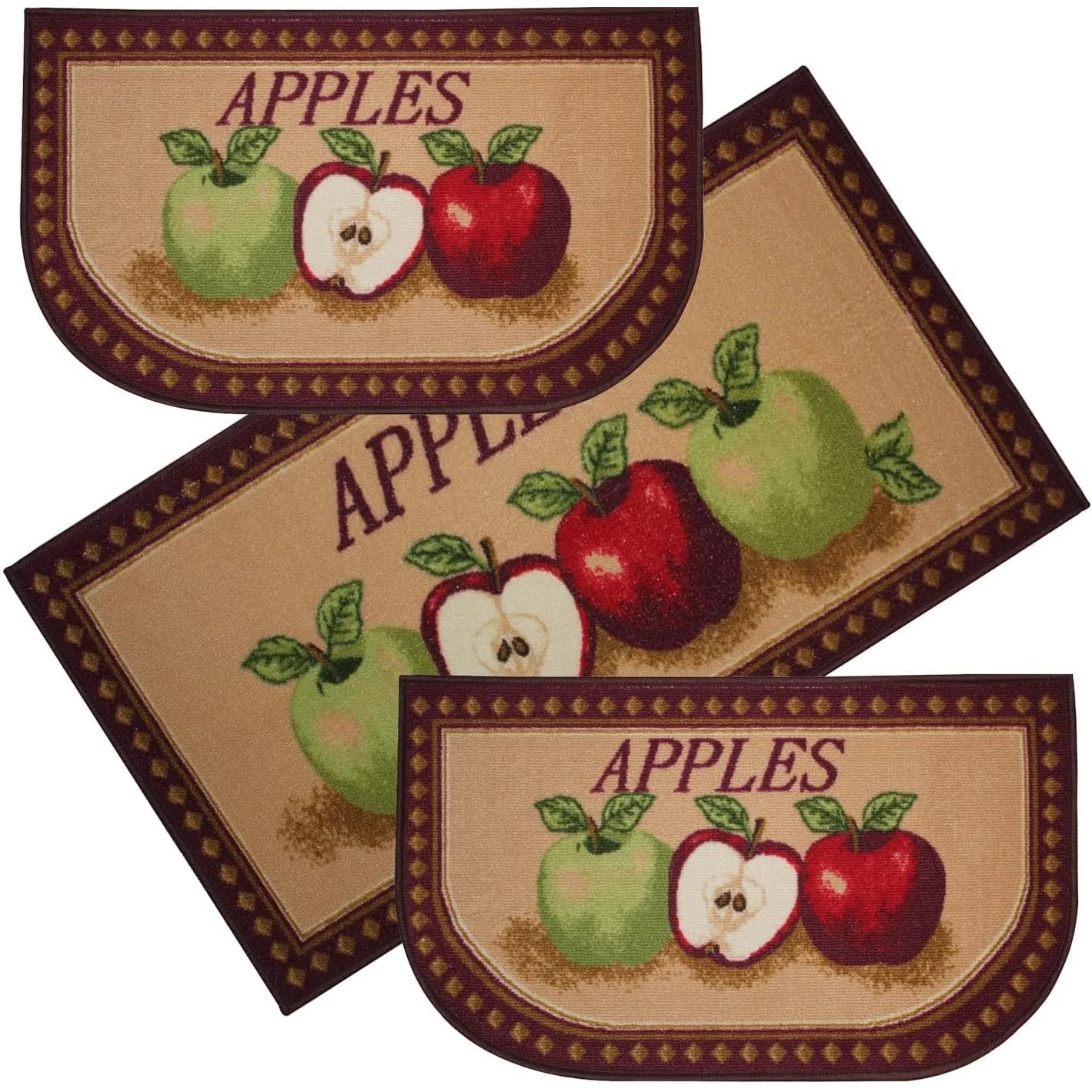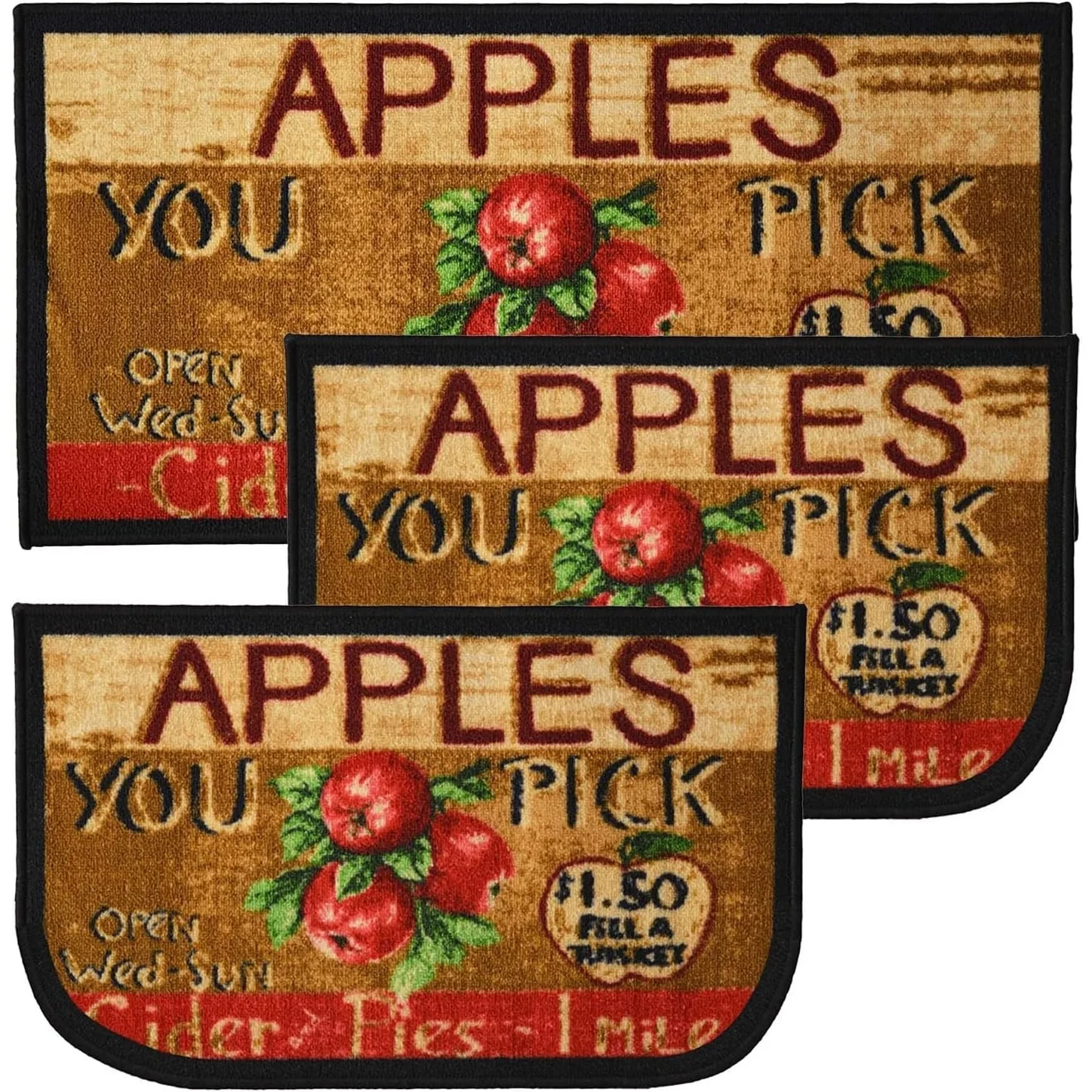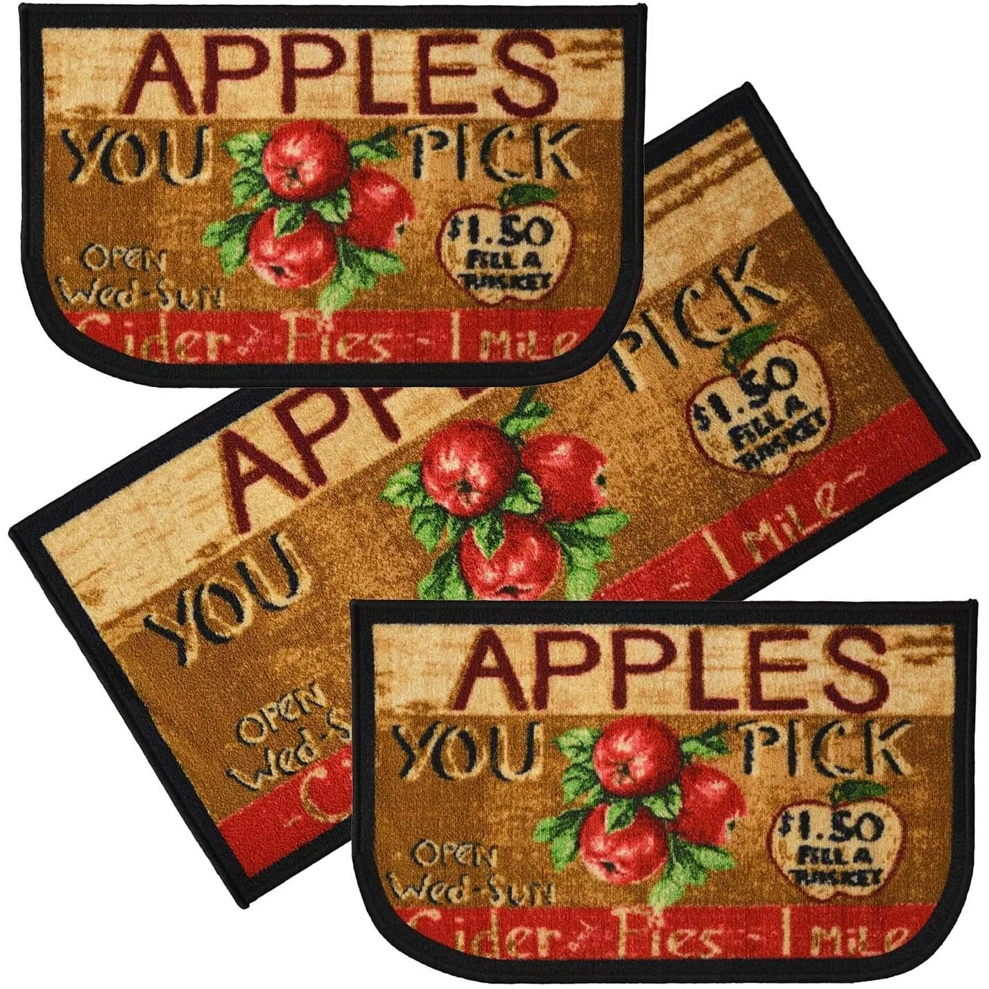 Add a new look to your kitchen with this decorative printed kitchen rug by Kashi Home and feel comfortable as you clean dishes, prepare vegetables, or while. Rugs feature built-in latex backing on the bottom of the kitchen rug that will help prevent it from slipping and sliding its way around the kitchen and keep you stationary. Available in a variety of beverage, food, fruit, vegetable, and farmhouse designs. Made with soft and durable polyester and built with a durable layer of latex on the bottom. To ensure a better grip on the floor it is recommended to use a rug pad with the kitchen rug. These printed rugs are decorative in addition to almost any kitchen decor, the collection of deep colors creates a wonderful image that adds a finishing touch to the kitchen look and feels. Great for Farmhouse, and country house decorations. Set includes: 3 Piece Set (2 18x30 D-Shape & 20x40 rectangle) Please note that packaging may. Hand wash, drip dry. Not recommended to machine wash.