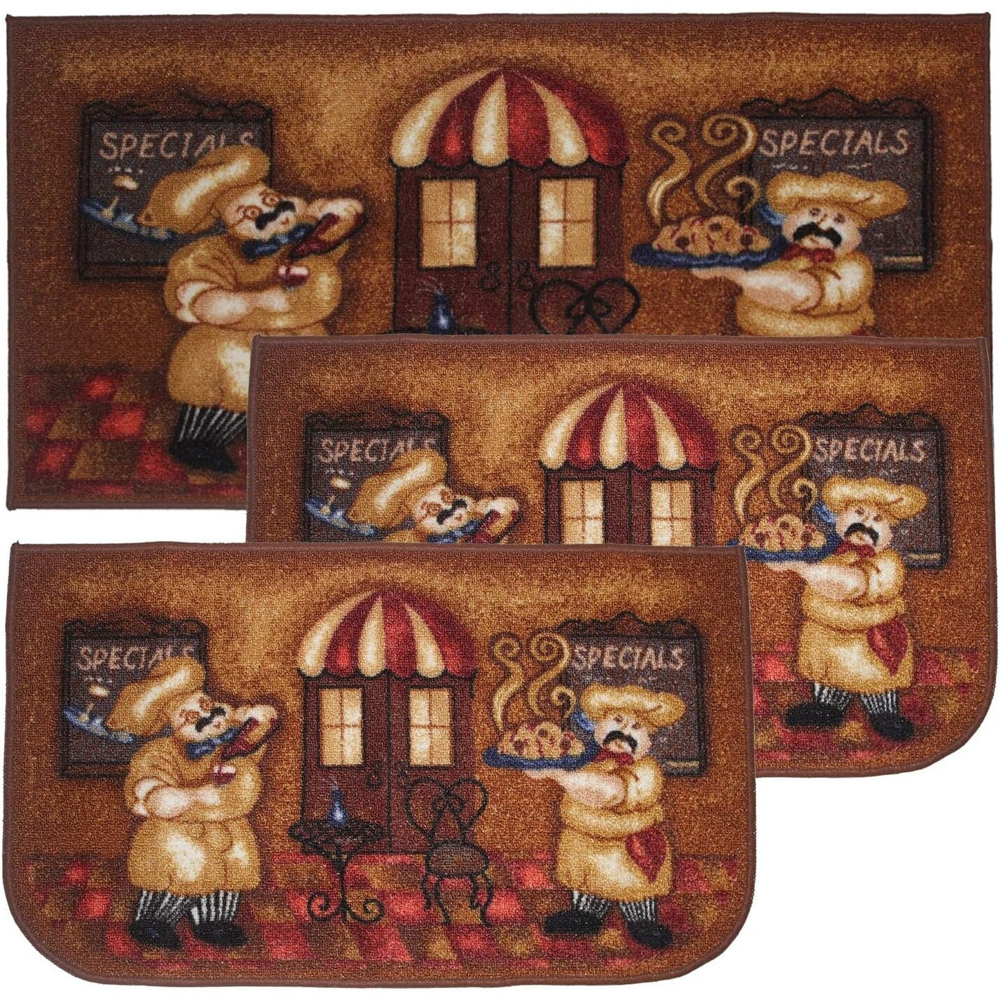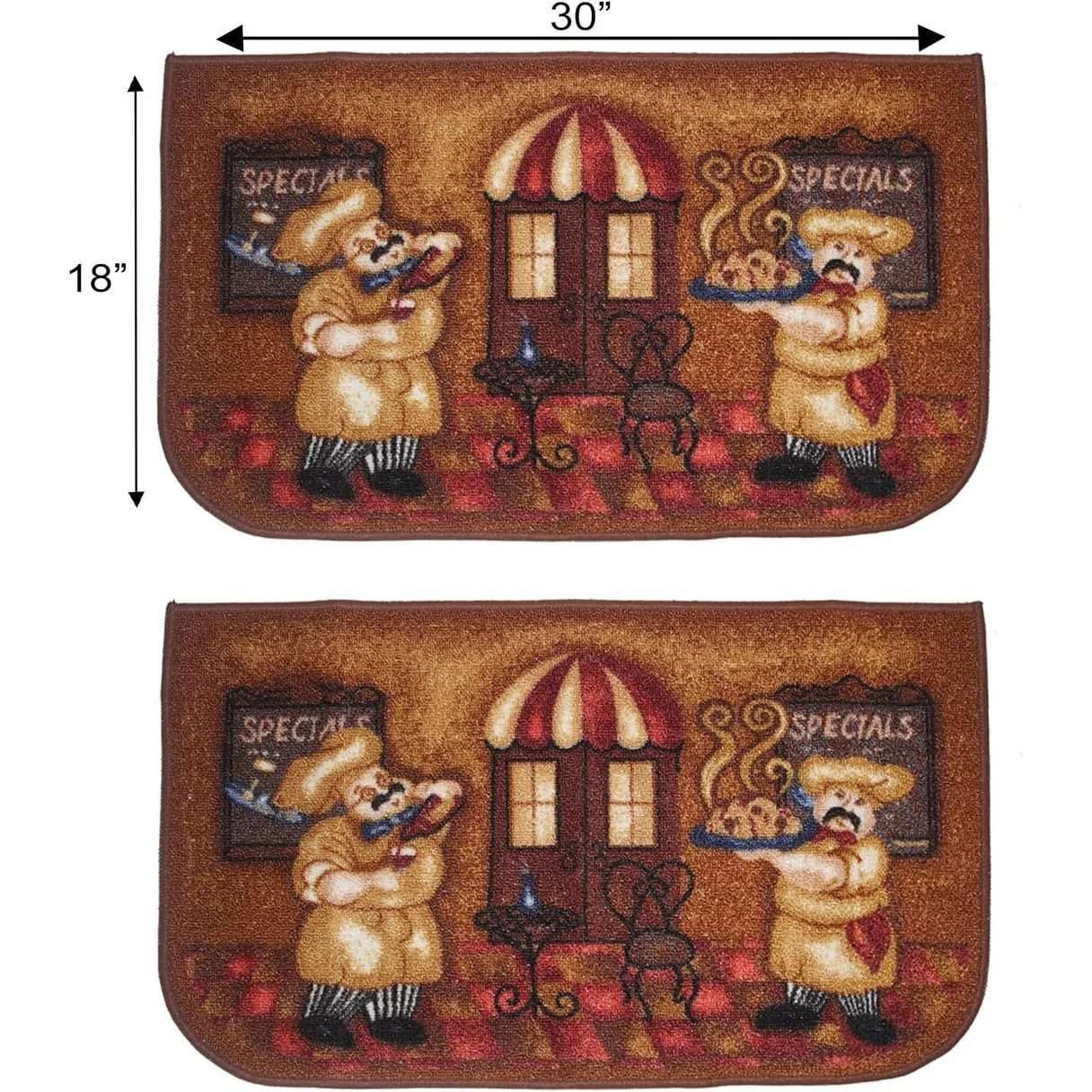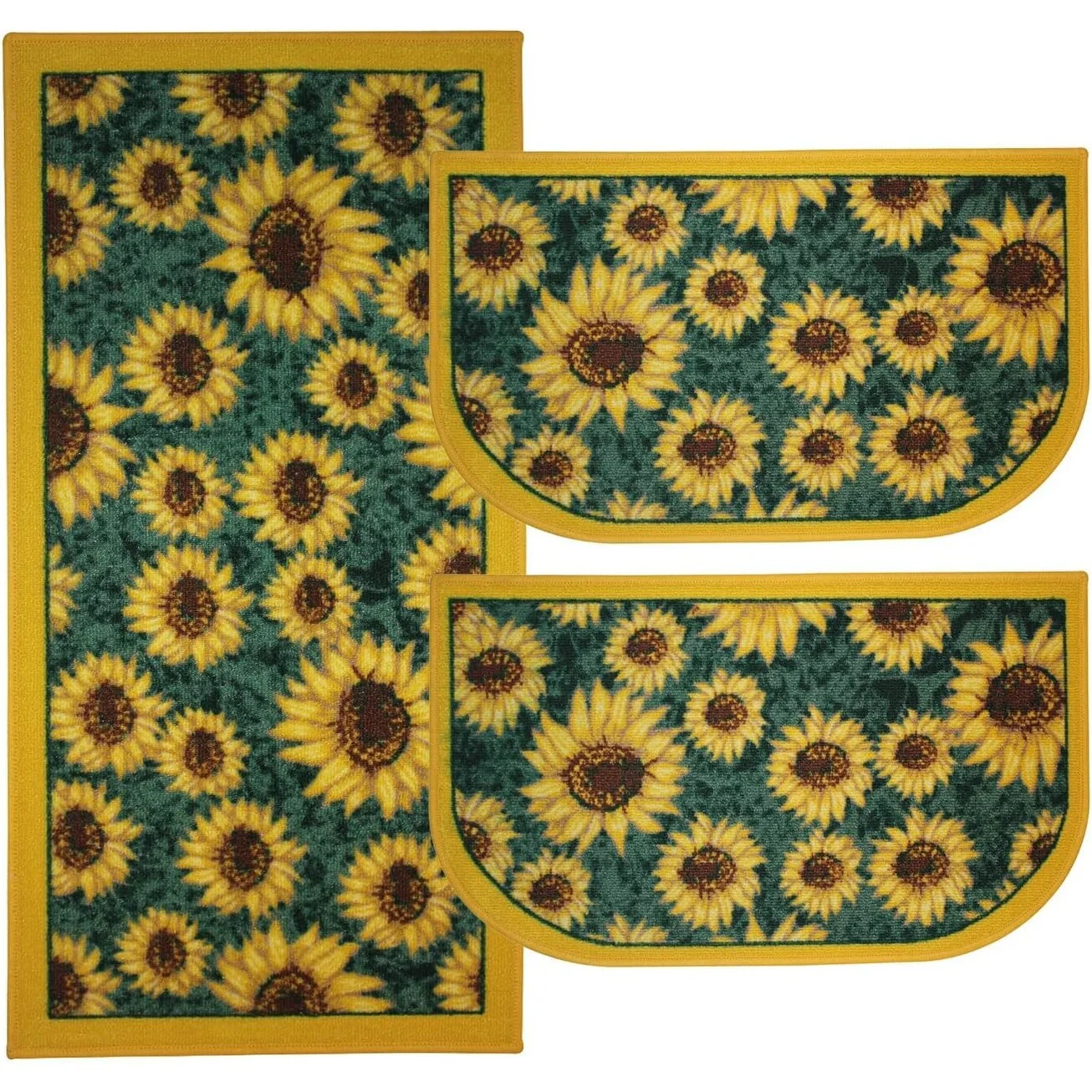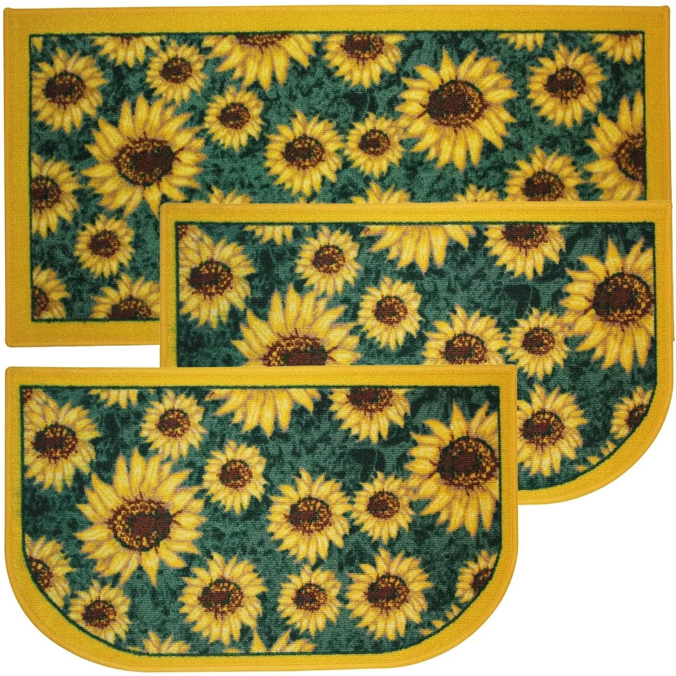 Add a new look to your kitchen with this decorative printed kitchen rug by Kashi Home and feel comfortable as you clean dishes, prepare vegetables, or while. Rugs feature built-in latex backing on the bottom of the kitchen rug that will help prevent it from slipping and sliding its way around the kitchen and keep you stationary. Available in a variety of beverage, food, fruit, vegetable, and farmhouse designs. Made with soft and durable polyester and built with a durable layer of latex on the bottom. To ensure a better grip on the floor it is recommended to use a rug pad with the kitchen rug. These printed rugs are decorative in addition to almost any kitchen decor, the collection of deep colors creates a wonderful image that adds a finishing touch to the kitchen look and feels. Great for Farmhouse, and country house decorations. Set includes: 3 Piece Set (2 18x30 D-Shape & 20x40 rectangle) Please note that packaging may. Hand wash, drip dry. Not recommended to machine wash.
