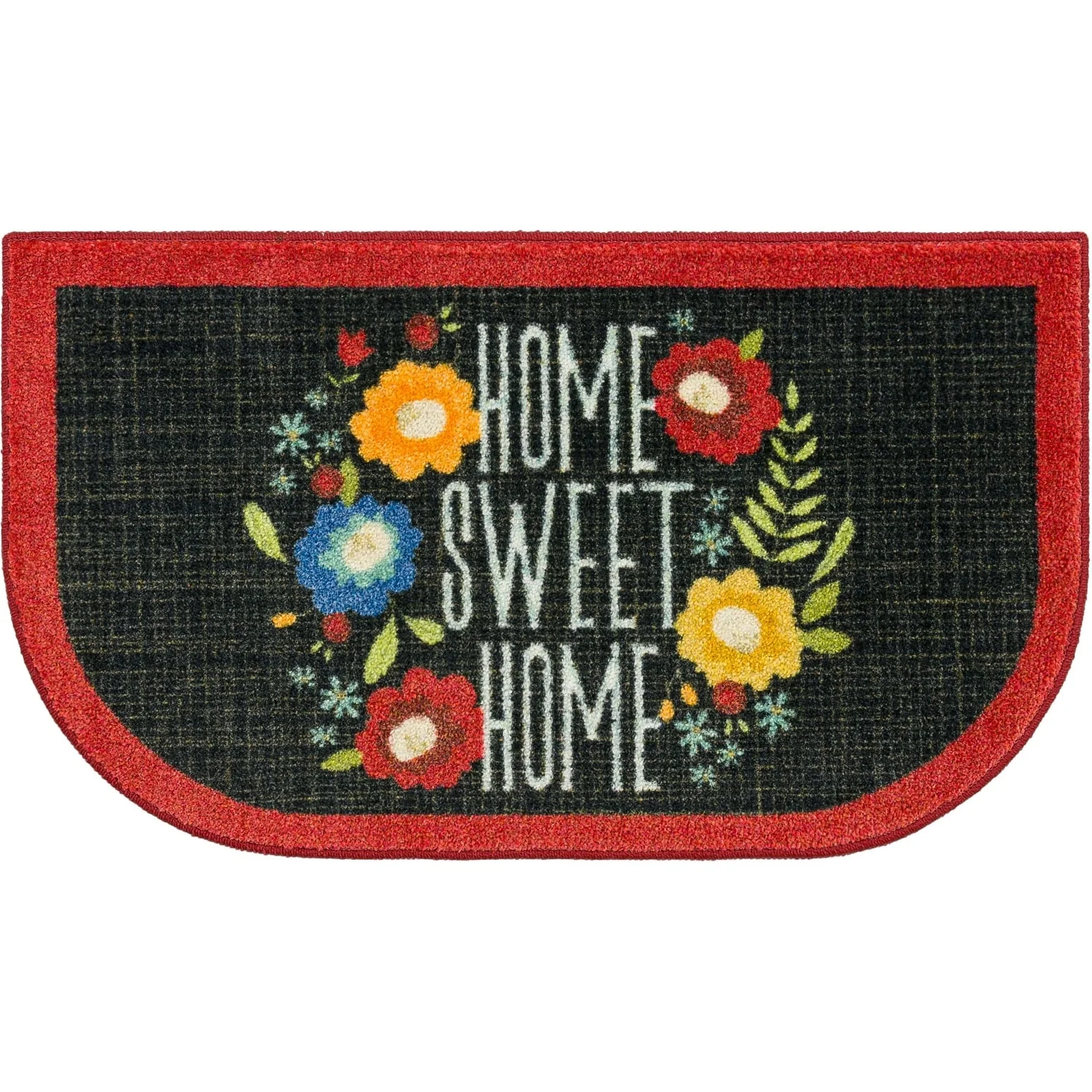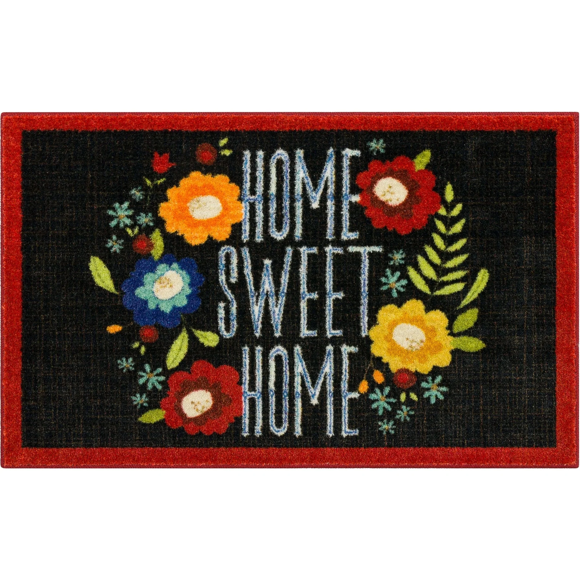 A rich black background with brown crosshatching gives rise to a stunning colorful garden of bright red, orange green, and blue flowers in the beautiful Mohawk Home Sweet Flowers Accent Area Rug. Made with exclusive EverStrand, a premium polyester yarn created from post-consumer recycled plastic bottles, this eco-friendly rug offers sumptuous softness and rich colors with the dependable durability needed for busy households. Available in a variety of scatter sizes, this accent rug is a great choice for adding style to a variety of spaces in your home.