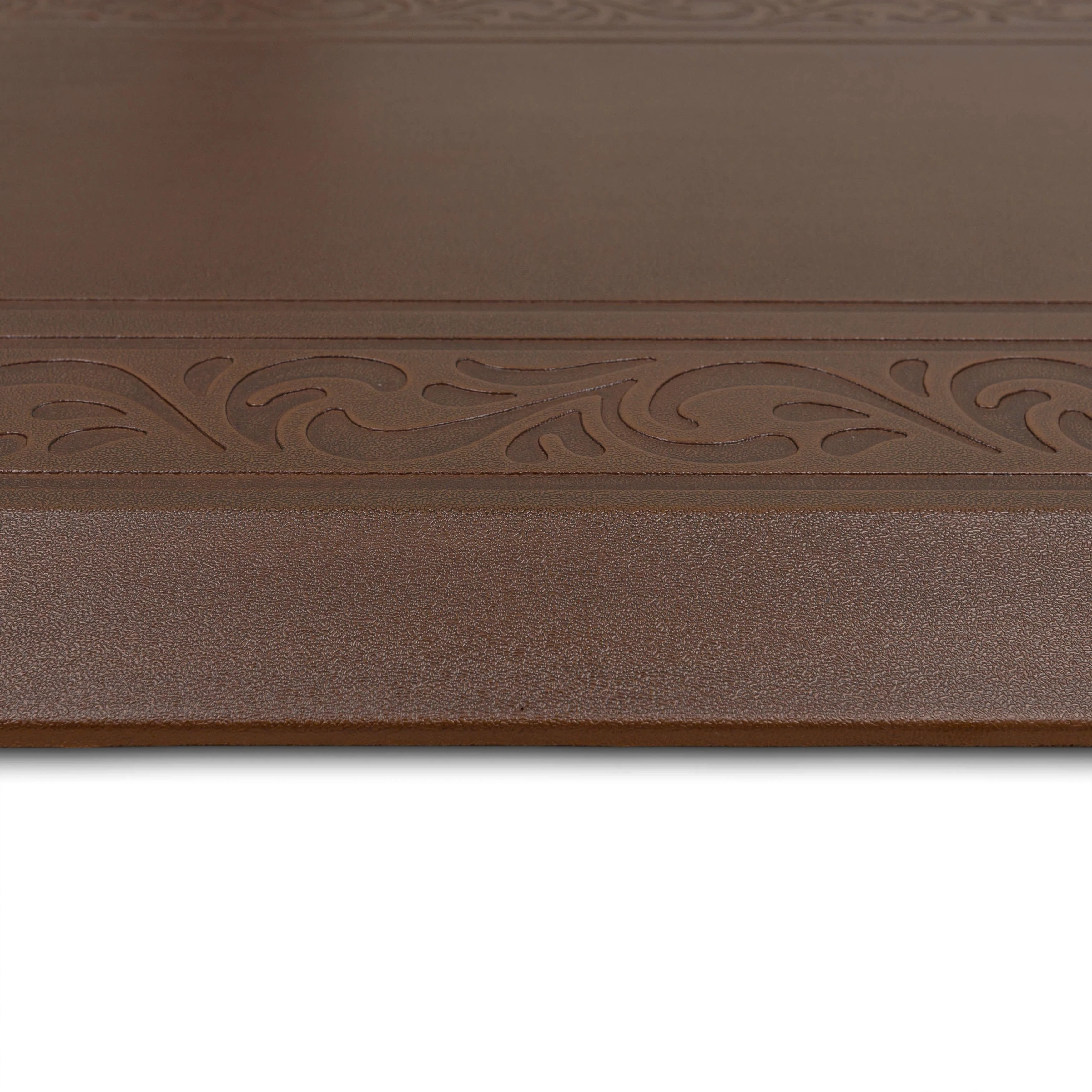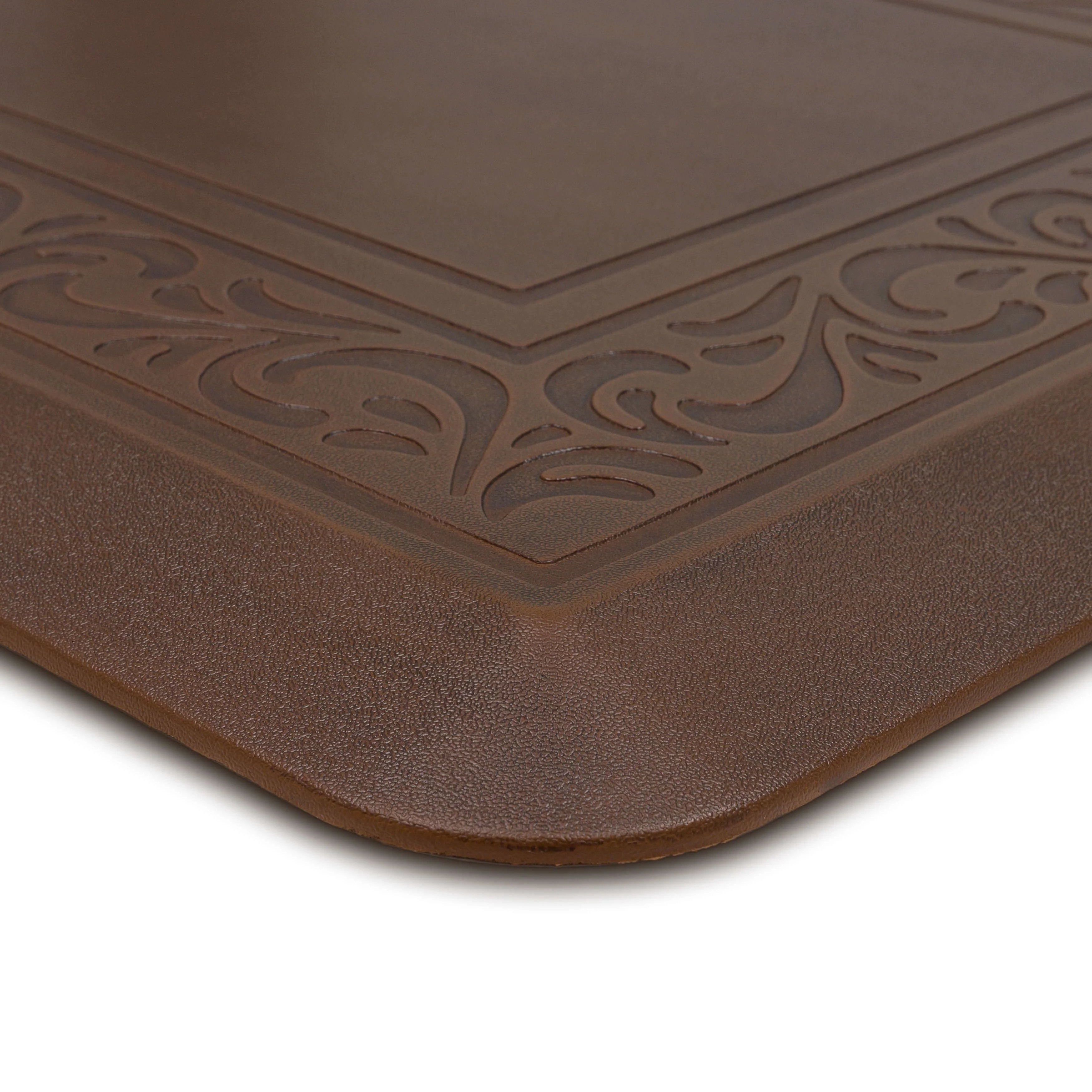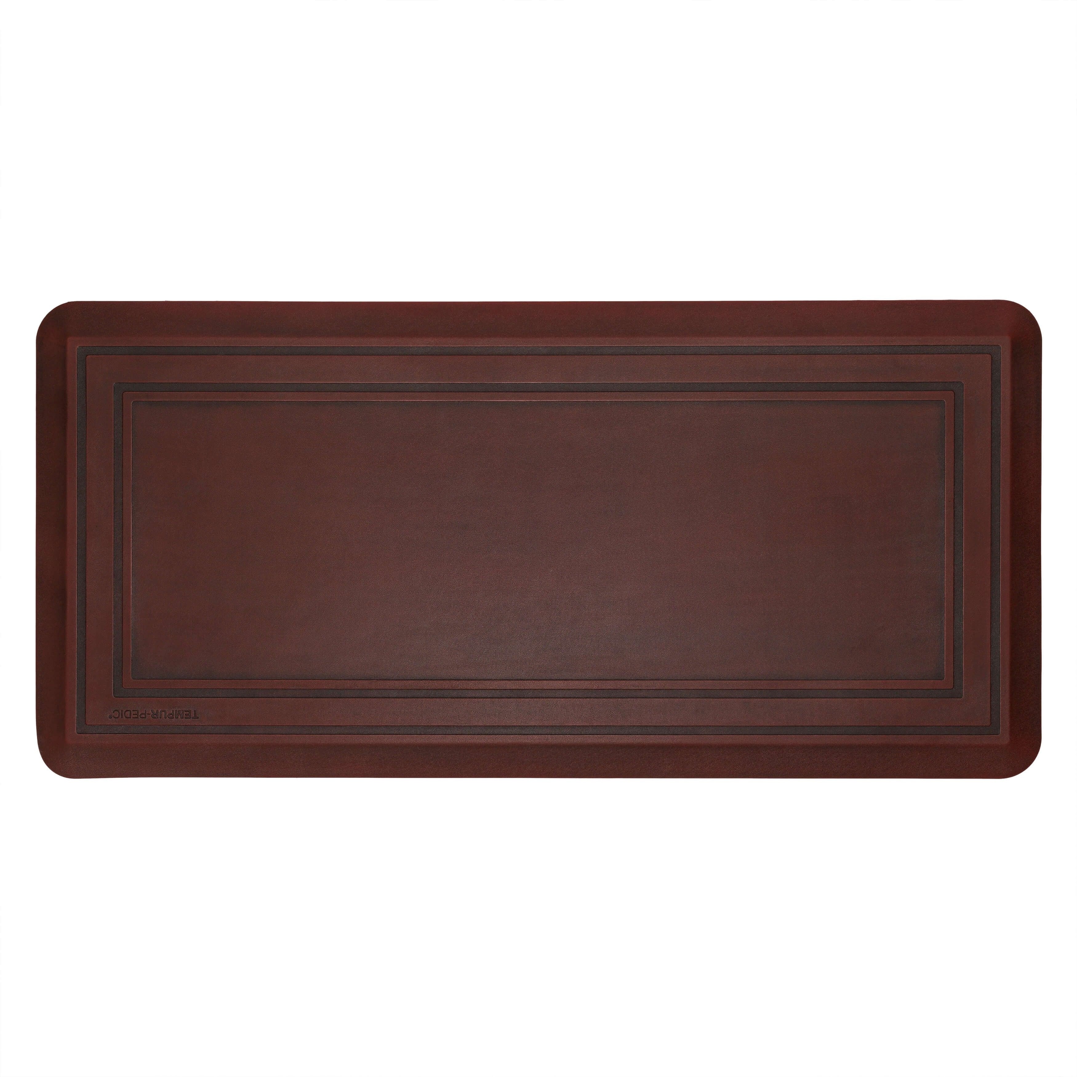 Elevate any area in your home with a Tempur-Pedic Ultra Comfort Anti-Fatigue Mat by Mohawk Home featuring classic bordered designs in a variety of rich colors with the dependable durability needed for busy spaces. The thick cushioned core features anti-fatigue technology that offers relief from back, leg, and foot discomfort when standing on hard surfaces for long periods of time. These mats are perfect for bringing cushioned comfort underfoot to any room such as the kitchen, laundry room, offices with standing desks, workshops, commercial spaces, and more! Made from Tempur-Pedic approved molded polyurethane foam with an ultra-resilient polyester surface fiber, offering long lasting durability plus superior stain and fade resistance that is ideal for high traffic areas.