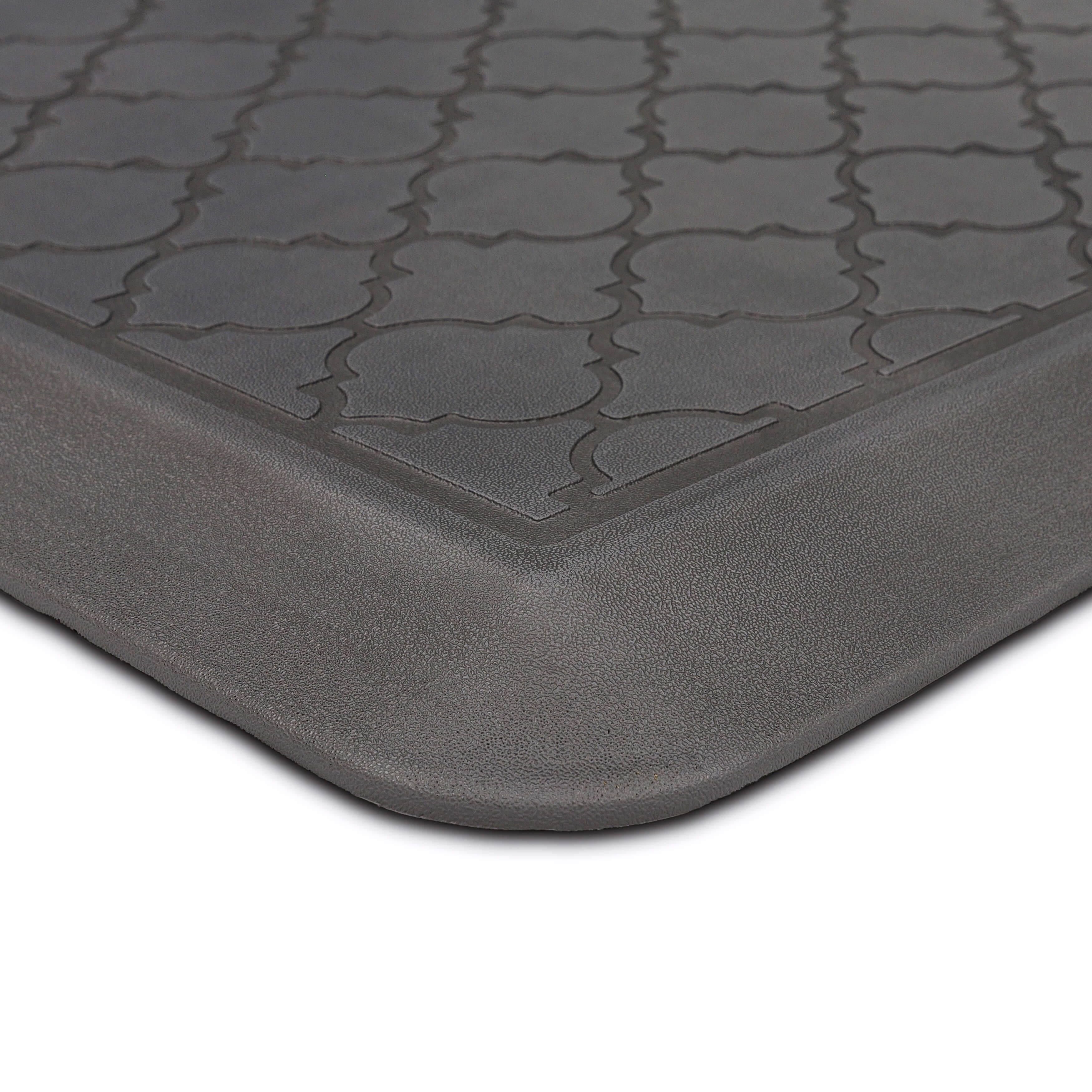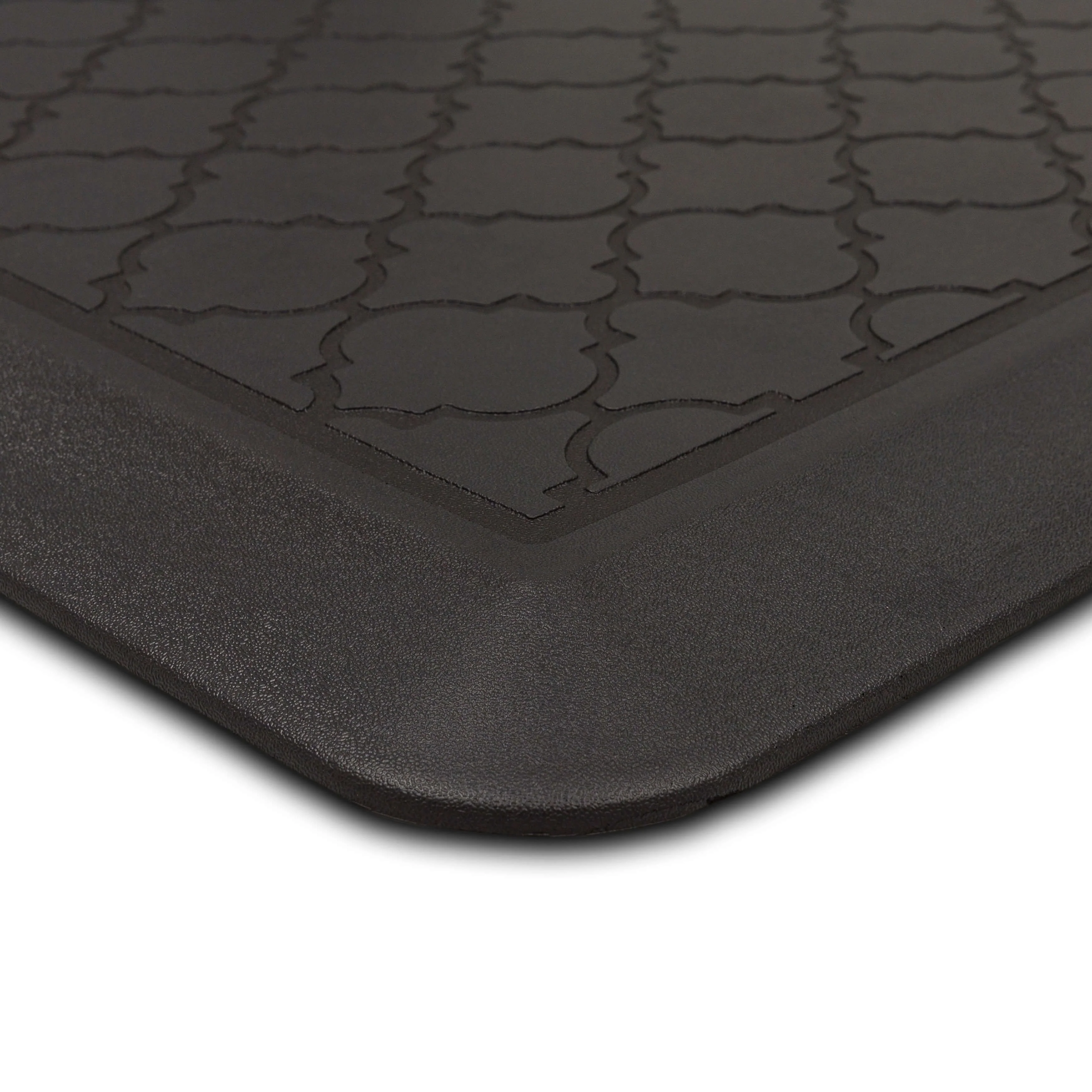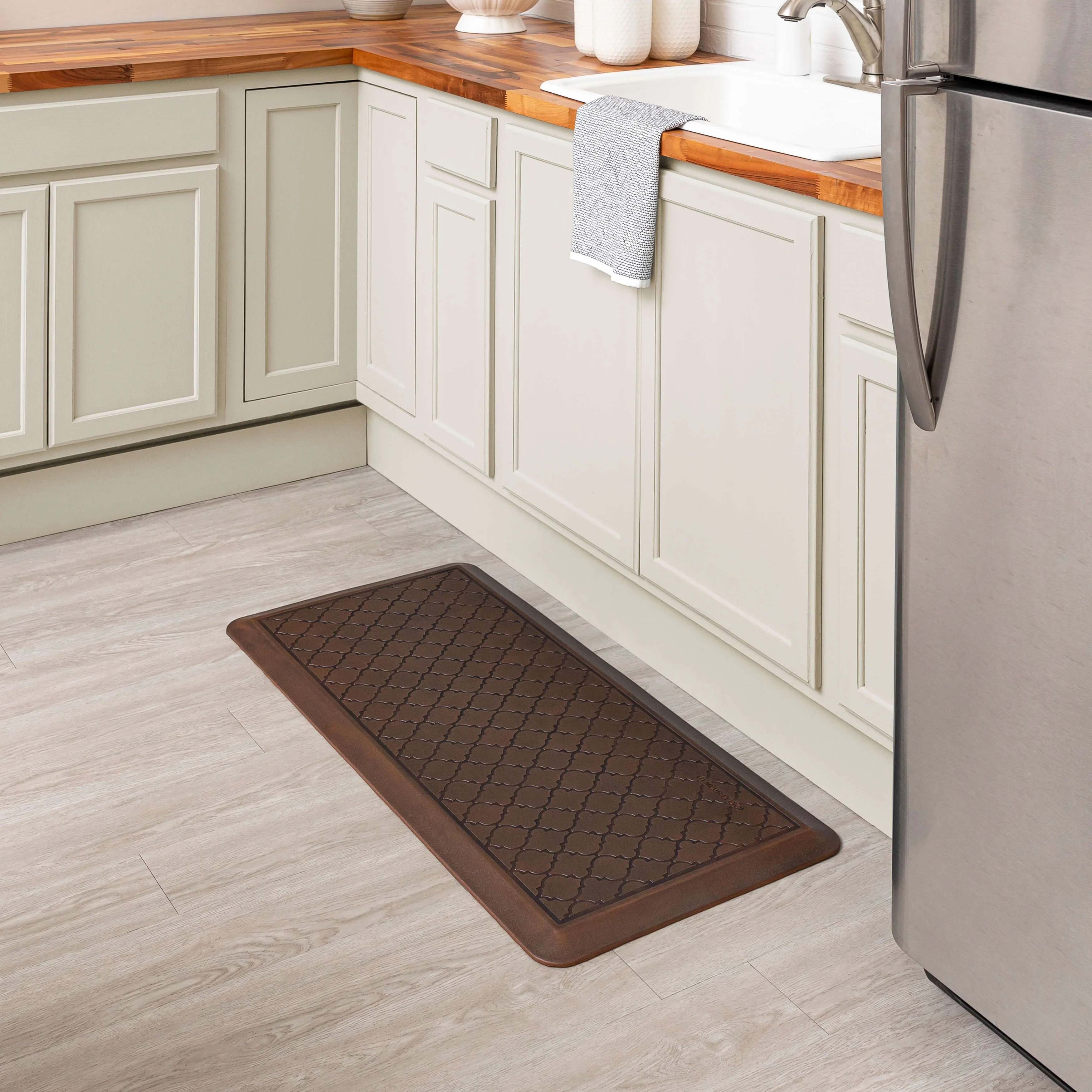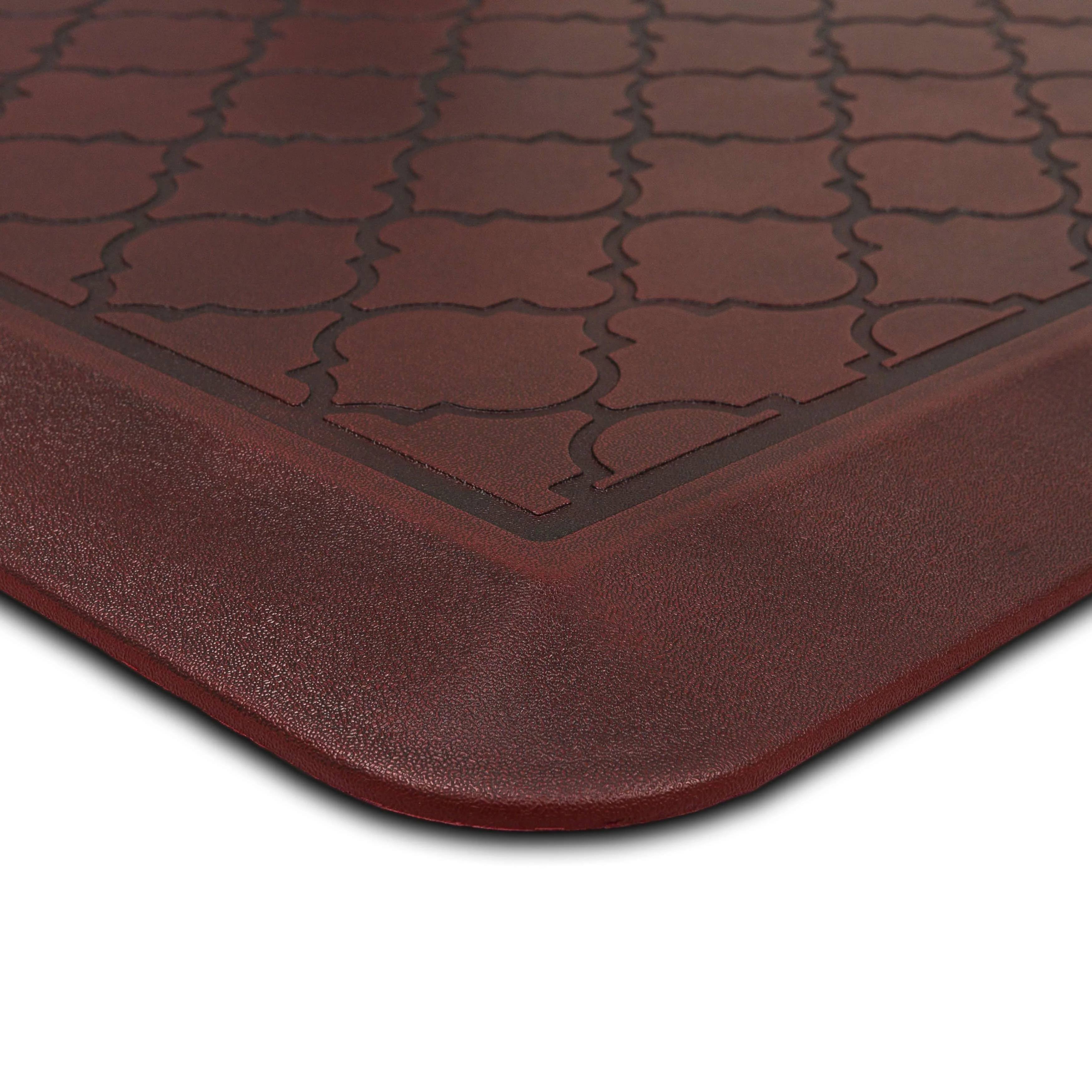Elevate any area in your home with a Tempur-Pedic Ultra Comfort Anti-Fatigue Mat by Mohawk Home featuring classic bordered designs in a variety of rich colors with the dependable durability needed for busy spaces. The thick cushioned core features anti-fatigue technology that offers relief from back, leg, and foot discomfort when standing on hard surfaces for long periods of time. These mats are perfect for bringing cushioned comfort underfoot to any room such as the kitchen, laundry room, offices with standing desks, workshops, commercial spaces, and more! Made from Tempur-Pedic approved molded polyurethane foam with an ultra-resilient polyester surface fiber, offering long lasting durability plus superior stain and fade resistance that is ideal for high traffic areas.