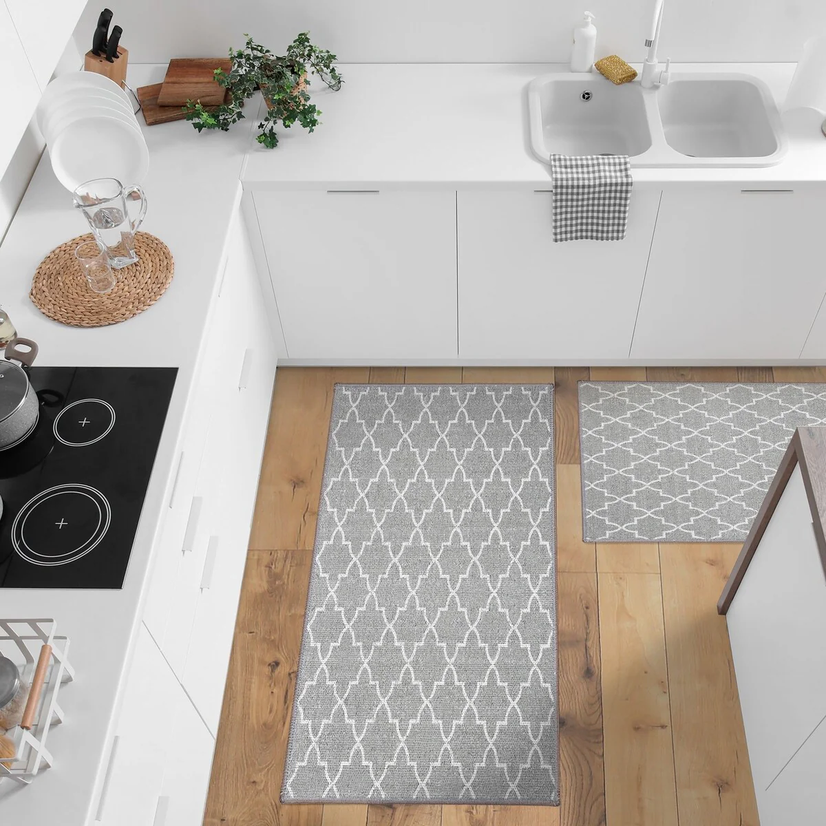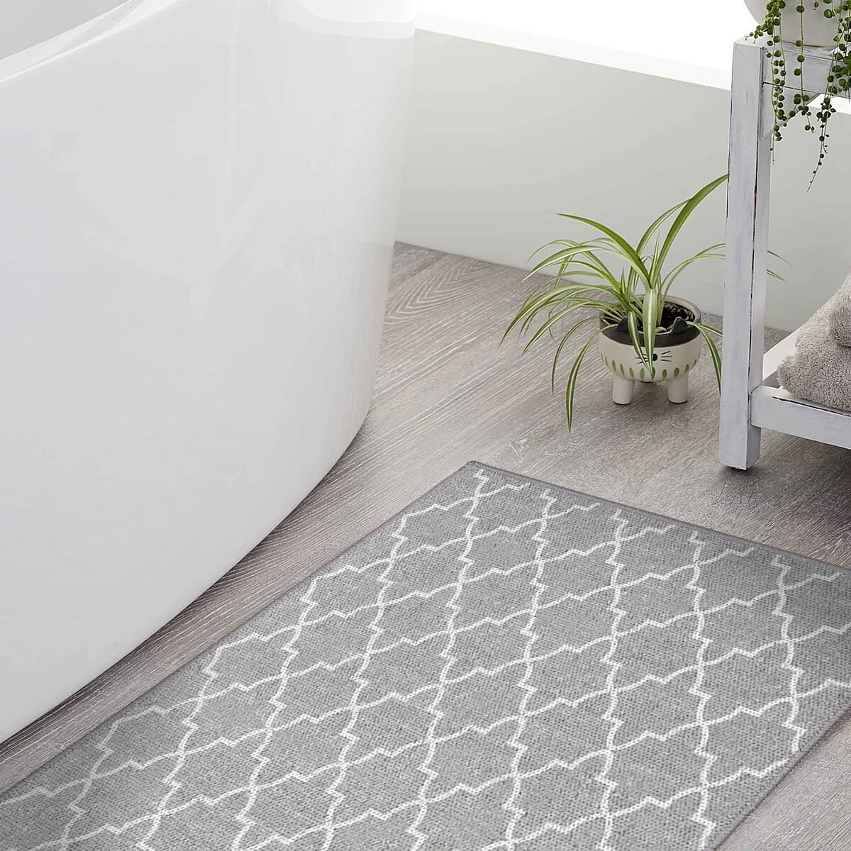 These protective non-slip backed flooring mats are made of lightweight, soft, and durable 100% polyester material which is anti-static anti-bacterial, preventing slipping on all floor types. Our rugs for home are ideal as indoor door entry rugs, laundry mats for laundry room, and kitchen floor mats for in front of sinks.