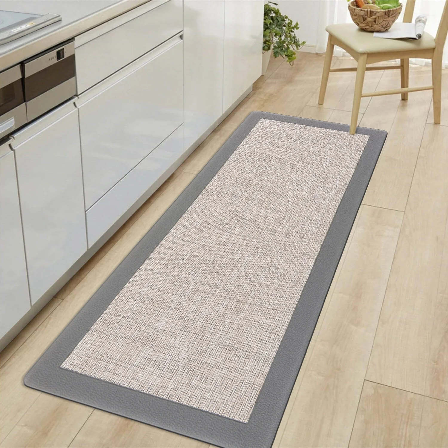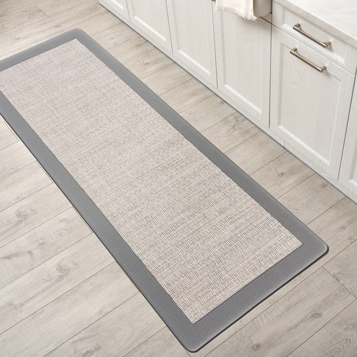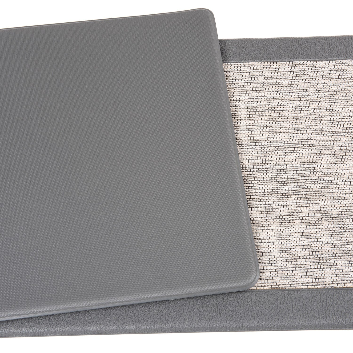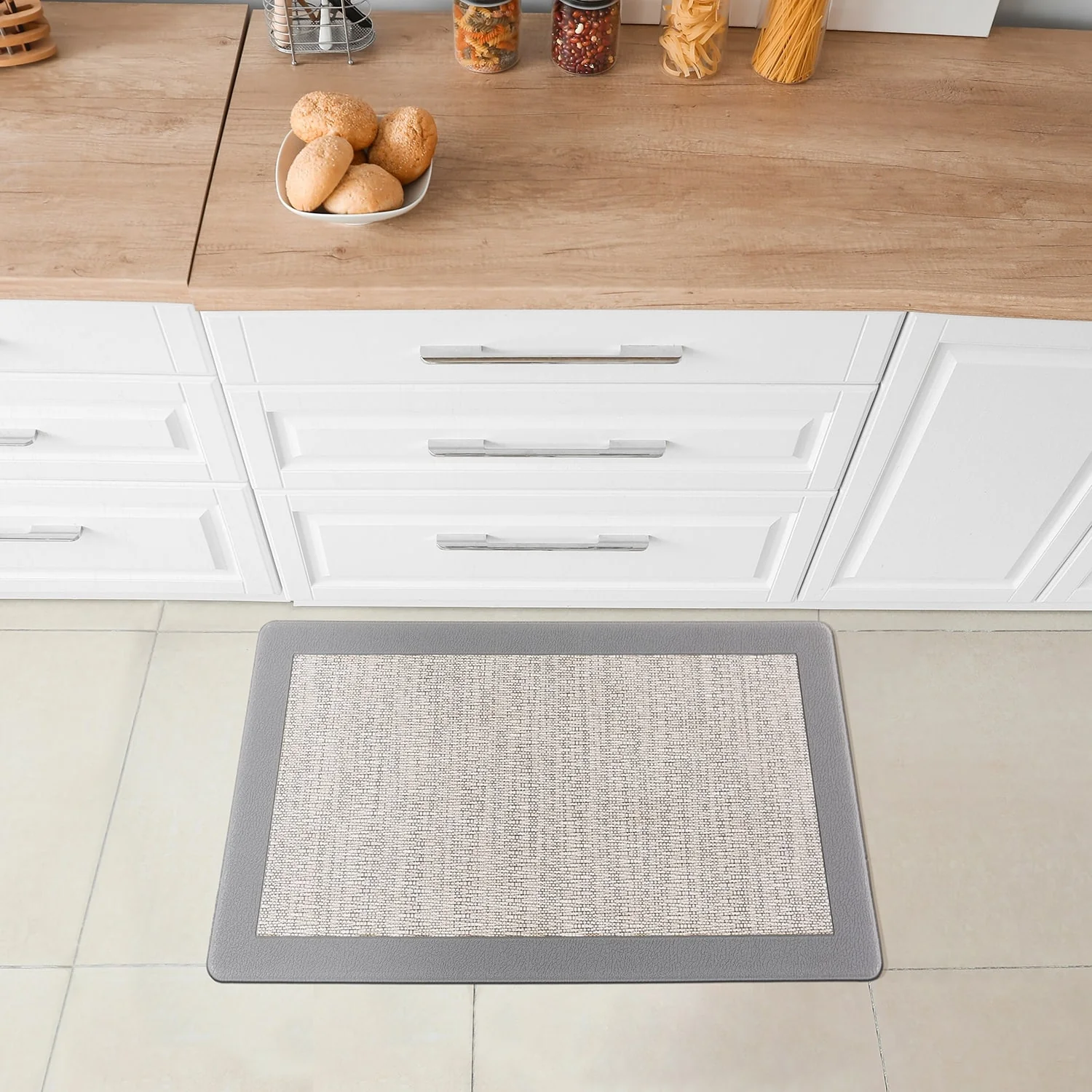 Experience ultimate comfort and style with the World Rug Gallery Frame Textline Anti-Fatigue Standing Mat. Perfect for high-traffic areas, this mat boasts a neutral design that complements any room in your home. The anti-fatigue feature provides ample support for your feet and knees, making it ideal for long periods of standing. It's also water repellent, slip resistant, and stain/oil resistant, ensuring easy maintenance. Plus, the nonskid backing keeps it securely in place for added safety.