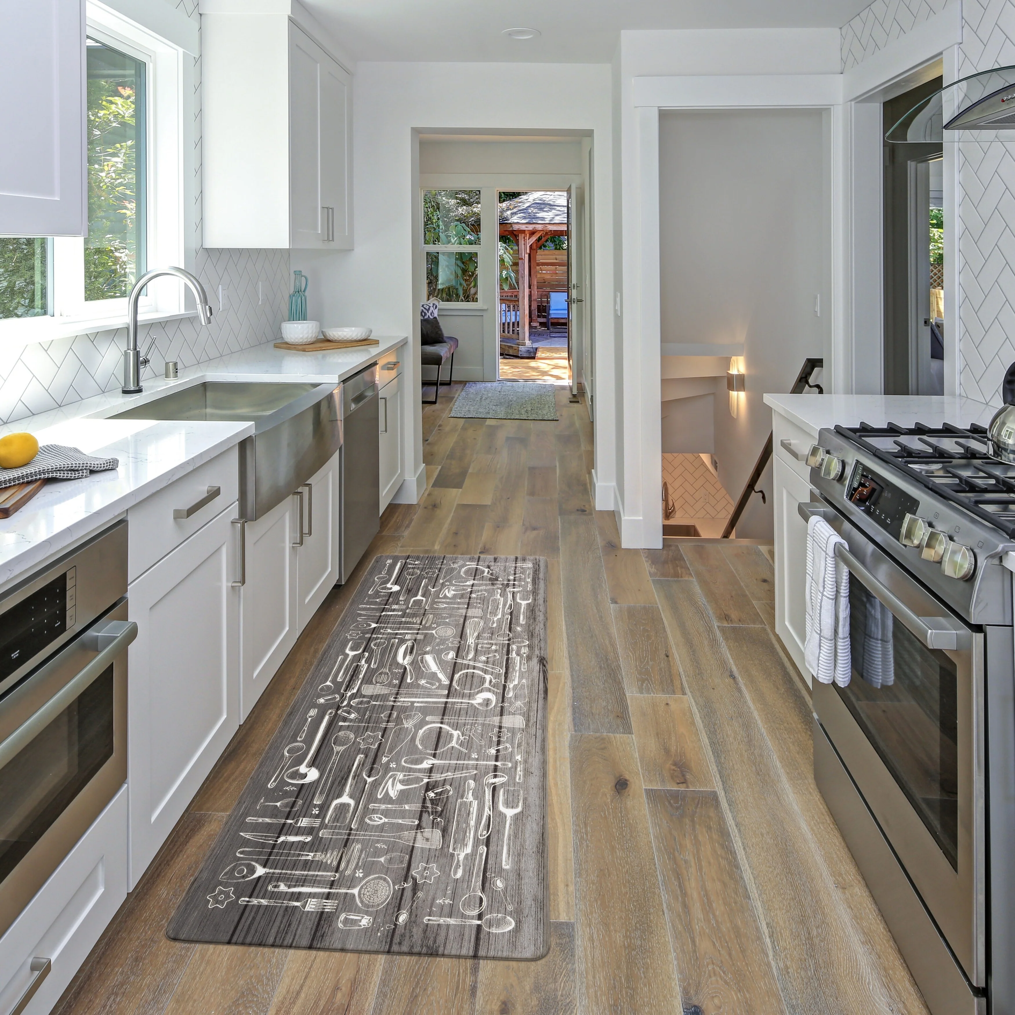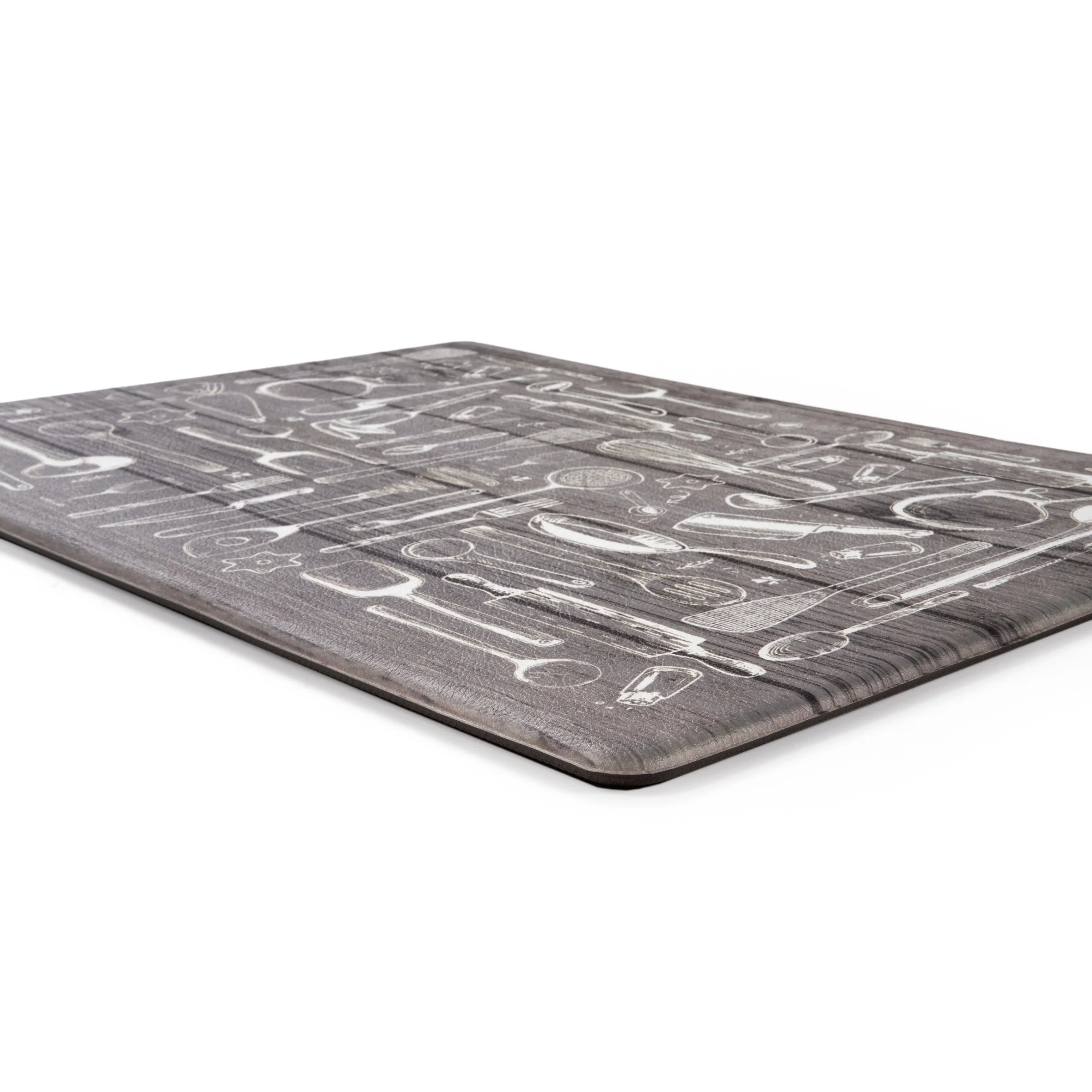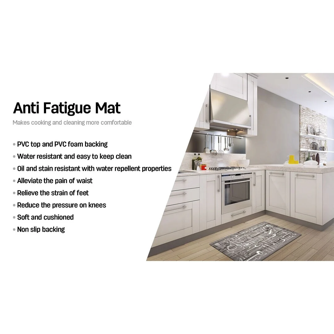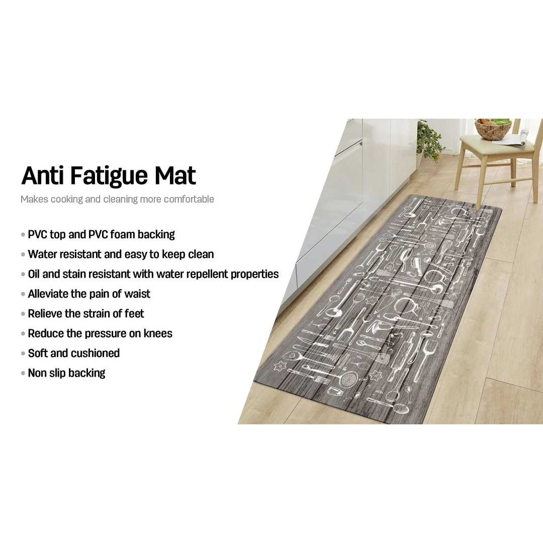 Make your time in the kitchen more comfortable with the World Rug Gallery Kitchen Chef Anti Fatigue Standing Mat. Its anti-fatigue feature provides ample support for your feet and knees, making it ideal for high traffic areas such as in front of the stove or sink. Designed to be water repellent, slip-resistant, and stain/oil-resistant, this all-purpose mat offers superior comfort and durability. Its nonskid backing holds the mat in place for extra safety, making it perfect for use in the kitchen, standing desk, workbench, laundry room, and more. This mat is easy to clean with a damp cloth and mild detergent and is pet-friendly.