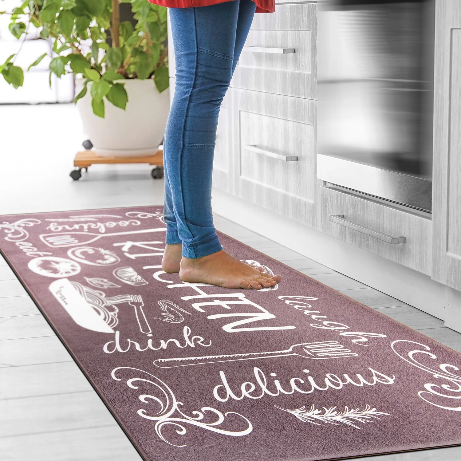 -Multi-purpose:Kitchen mats widely used for home decor,indoor front welcome mat,kitchen rug,laundry room,standing desk,back doors,garage,office. Nonskid backing holds the mat in place for extra safety.