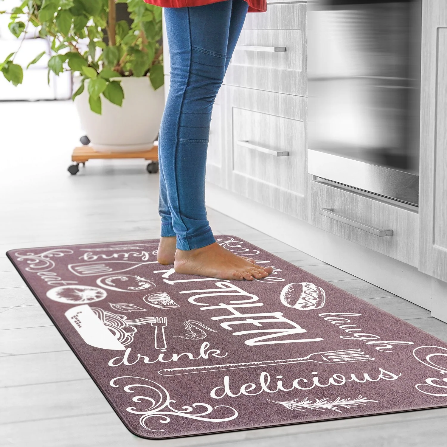 -Enjoy the comfort of this kitchen style mat at your feet. The anti-fatigue feature enables for high traffic areas such as in front of the stove or sink to feel less tiresome on the joints and feet.