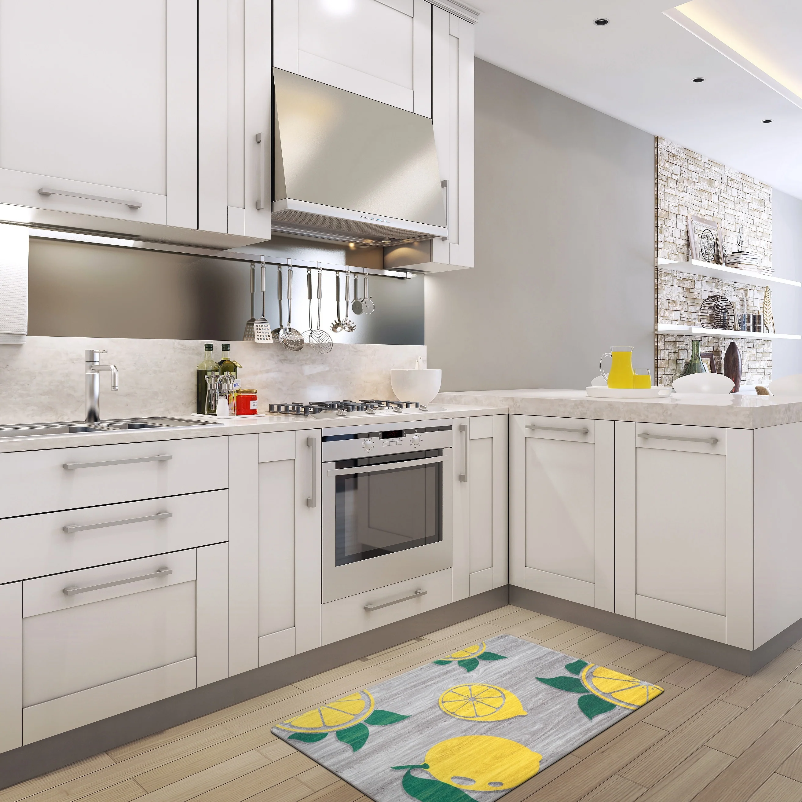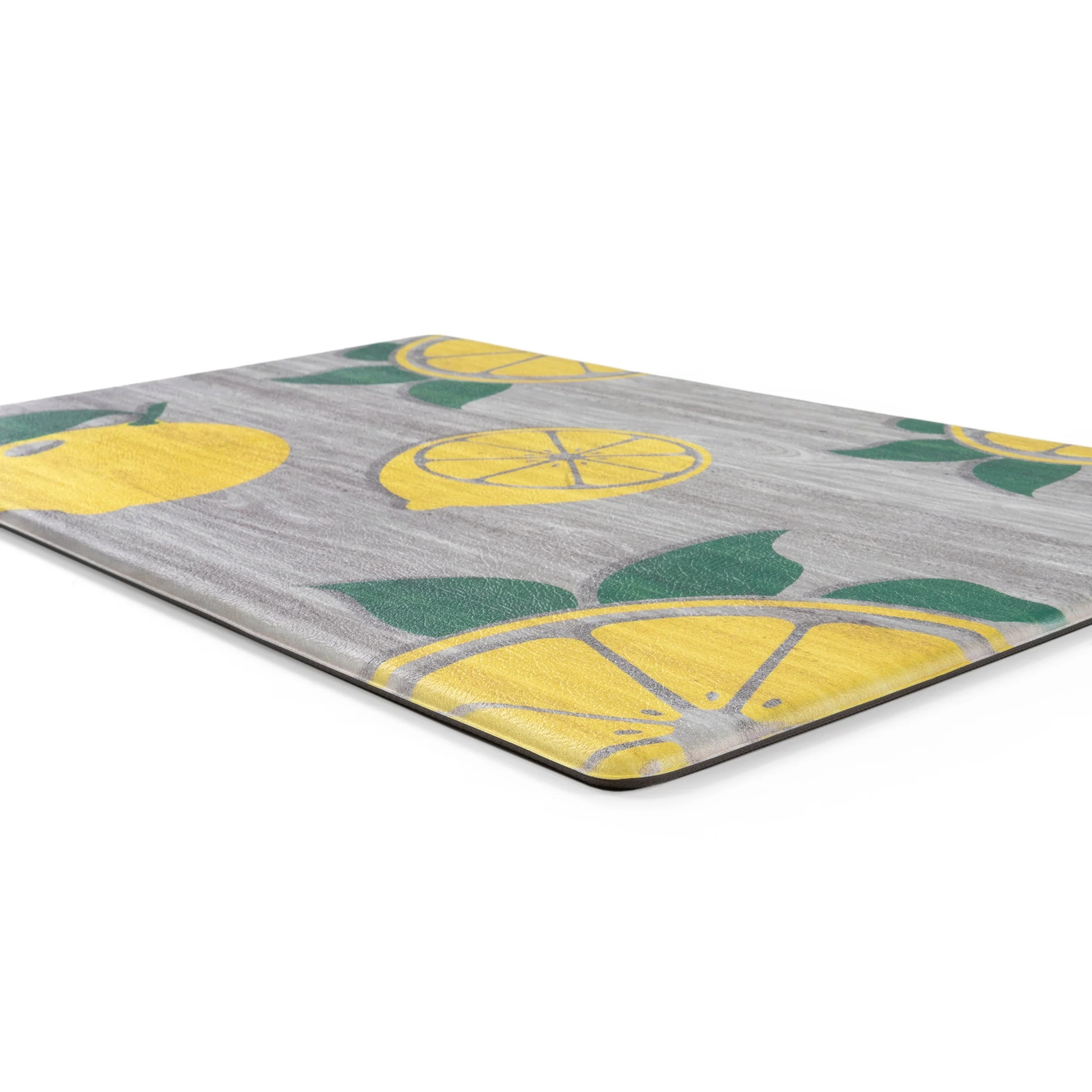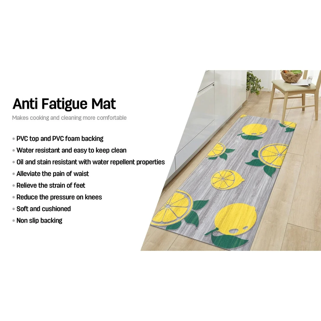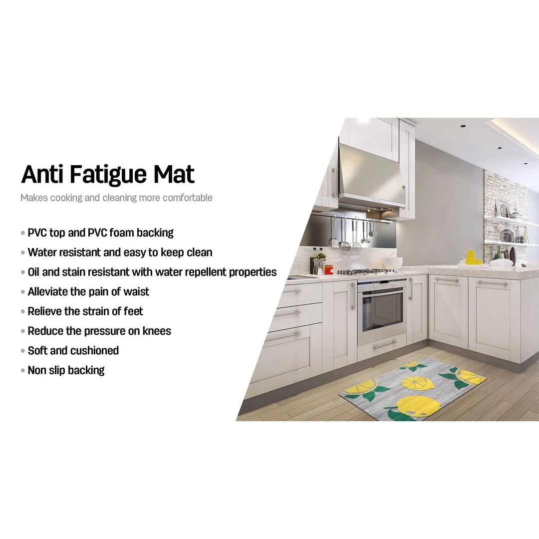 Add a splash of color and comfort to your kitchen with the World Rug Gallery Lemon Pattern Anti Fatigue Standing Mat. This mat is designed to relieve pressure on your feet and joints while you cook, clean or work. The water repellent, stain and oil-resistant surface makes it ideal for high-traffic areas. The nonskid backing provides extra safety, while the cushioned support keeps you comfortable for long periods of time. Use it in your kitchen, laundry room or standing desk. This versatile mat is easy to clean and pet-friendly.