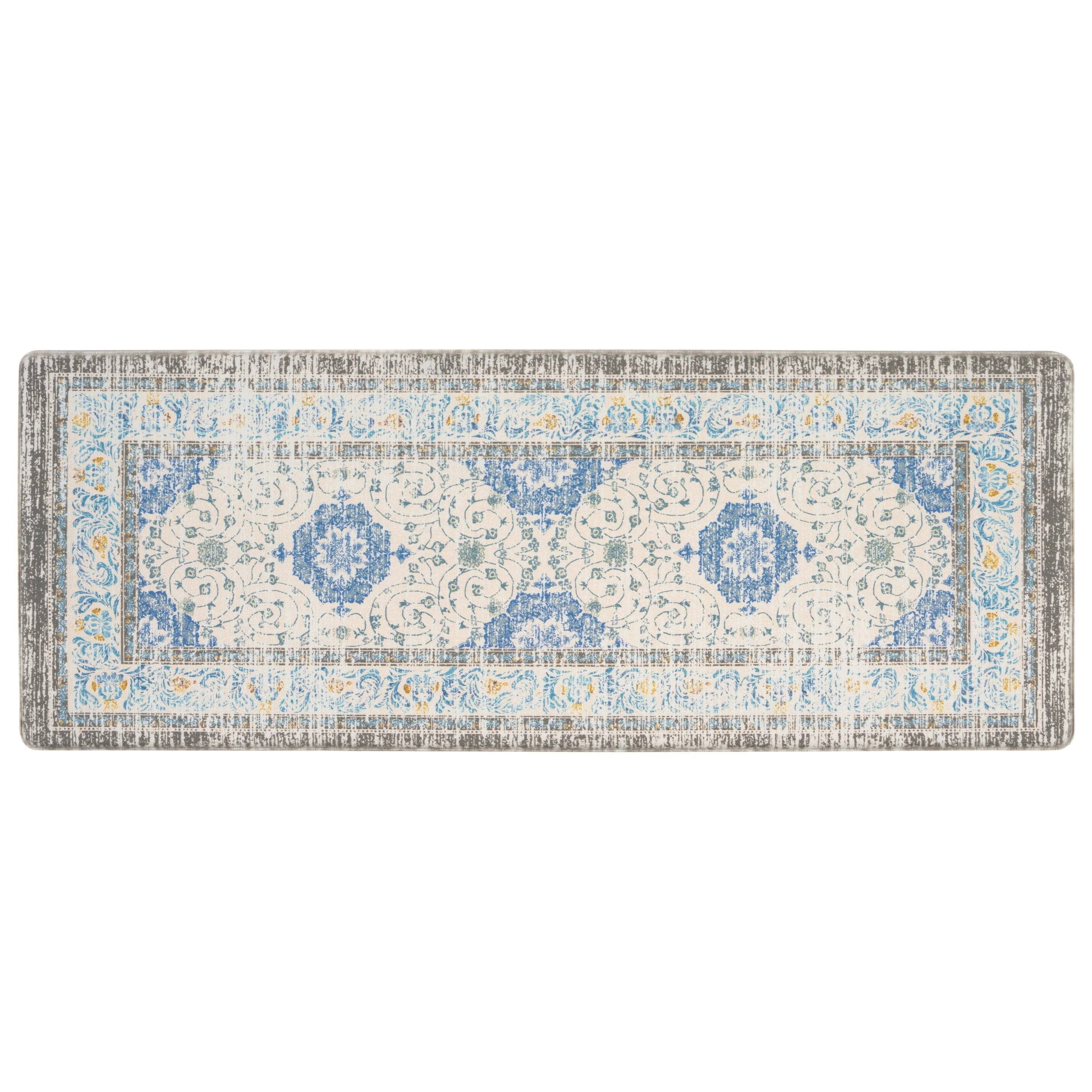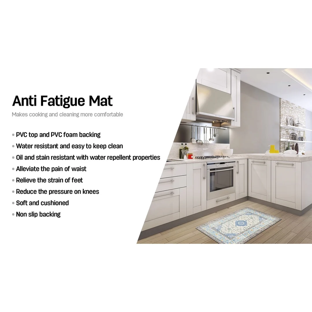Add a touch of elegance to any room of your home with this Persian Traditional Anti-Fatigue Mat by World Rug Gallery. Perfect for high-traffic areas, this mat offers ample cushioning and support for your feet and knees over long periods of standing. Its rubber backing keeps it firmly in place for added safety, while its water-repellent, slip-resistant, stain and oil-resistant features make cleaning a breeze. Whether used in the kitchen, laundry room, or at a standing desk, this all-purpose mat provides superior comfort and durability. Plus, it's pet-friendly and easy to clean with just a damp cloth and mild detergent.