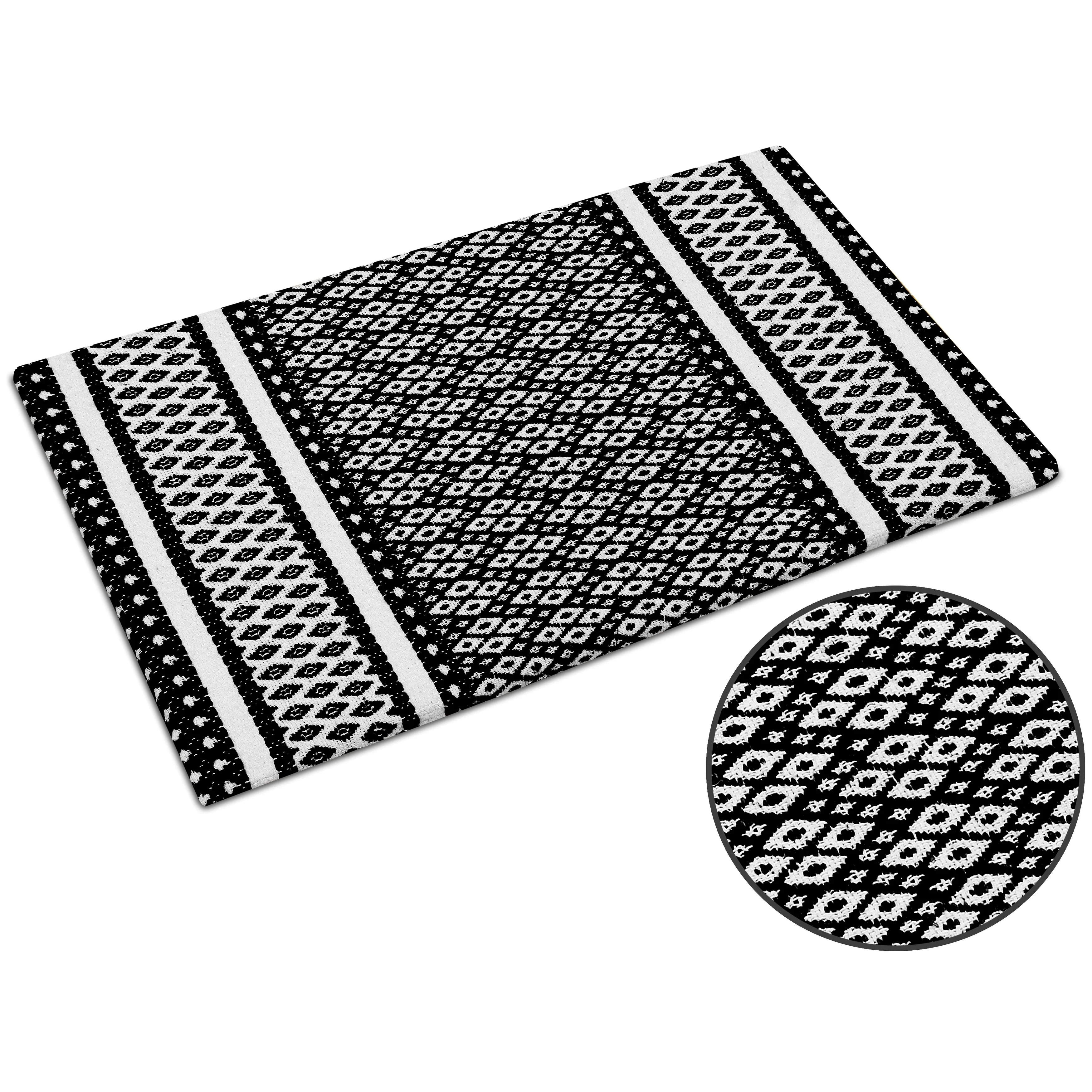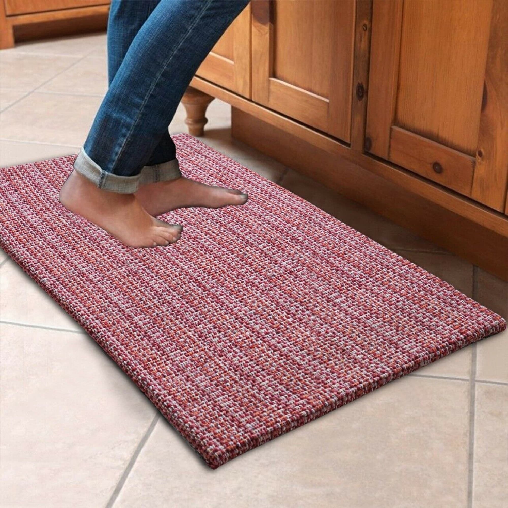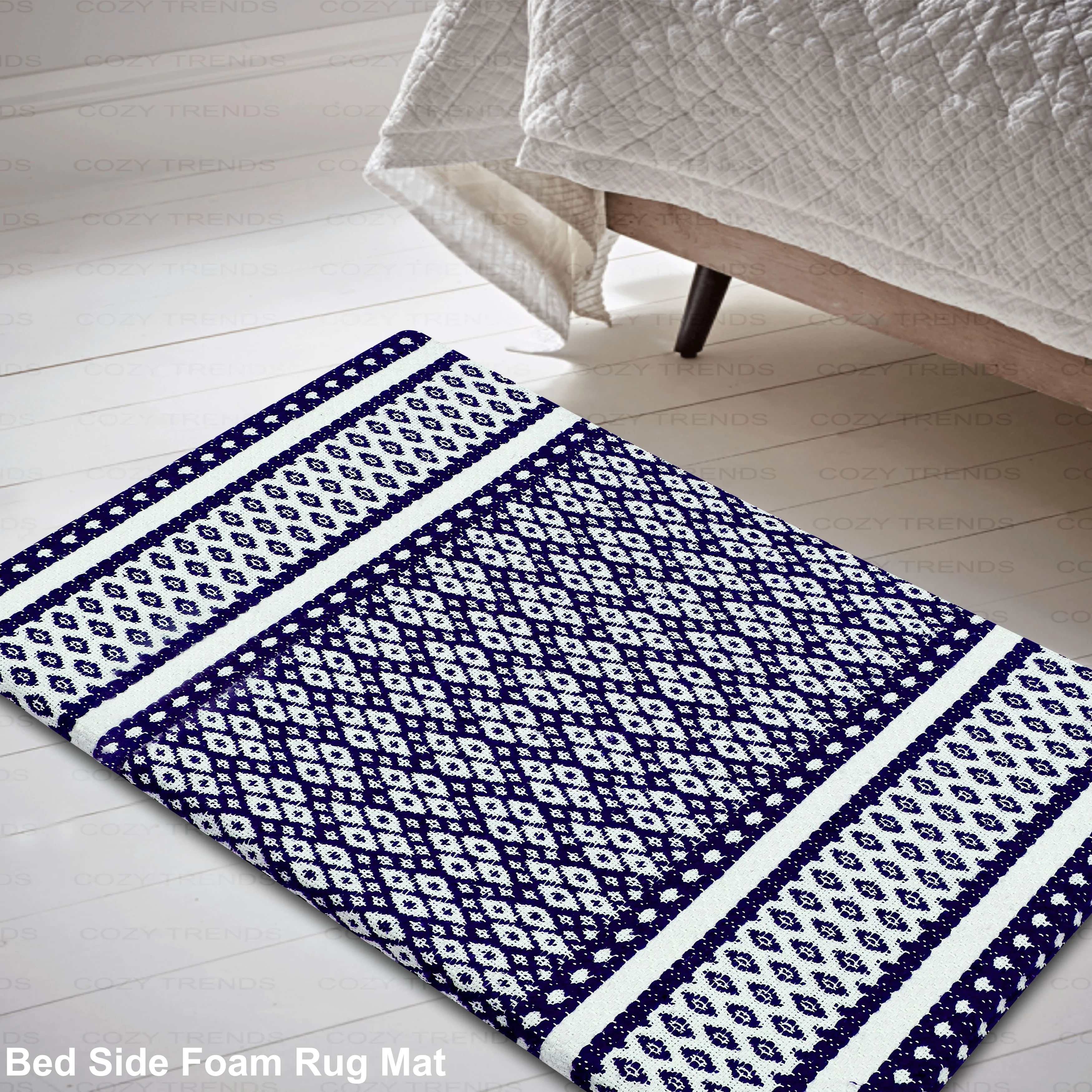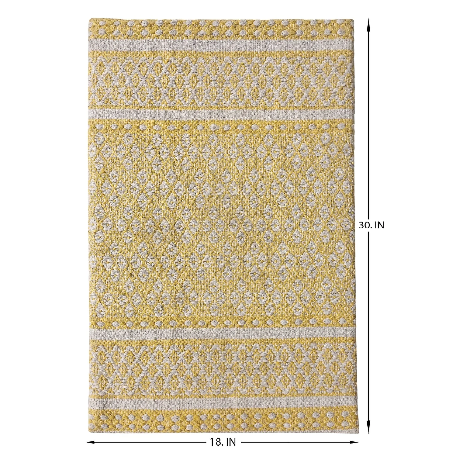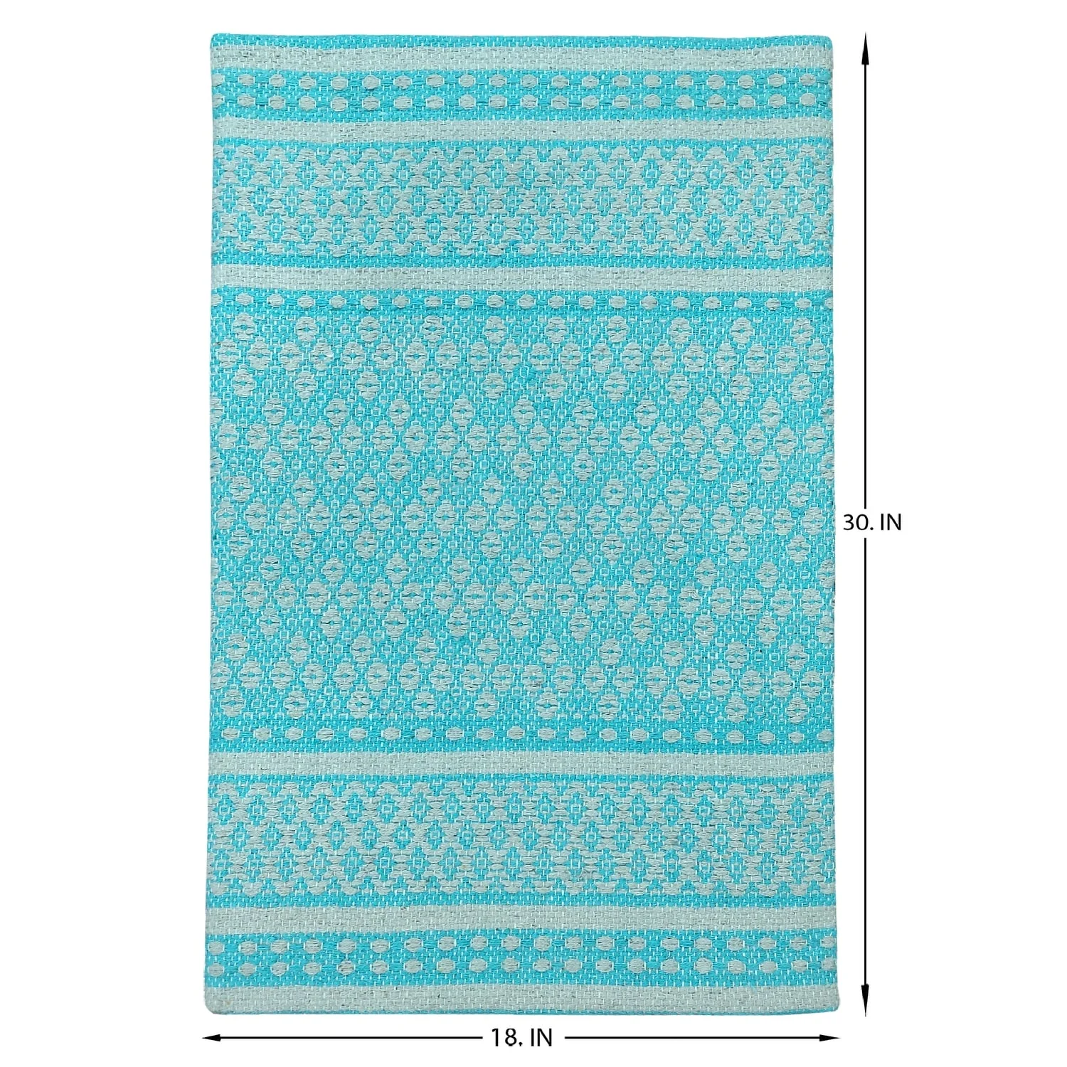 Experience comfort and quality with this Hand Woven Kitchen/Doormat/Bathroom 100% Cotton Mat. Measuring 18' x 30' and featuring a foam backing, this mat is perfect for your kitchen, bathroom, or laundry room. Made from super 100% woven cotton, this mat is highly absorbent and provides skid resistance. Its hand-woven design is not only durable but also eco-friendly. Enjoy the soothing comfort and support this mat provides while standing for long periods of time.